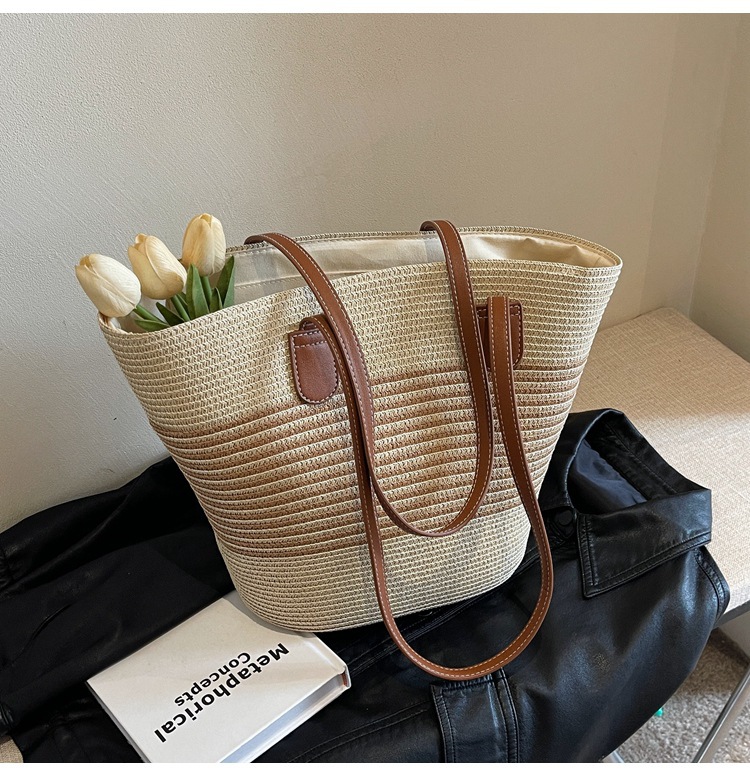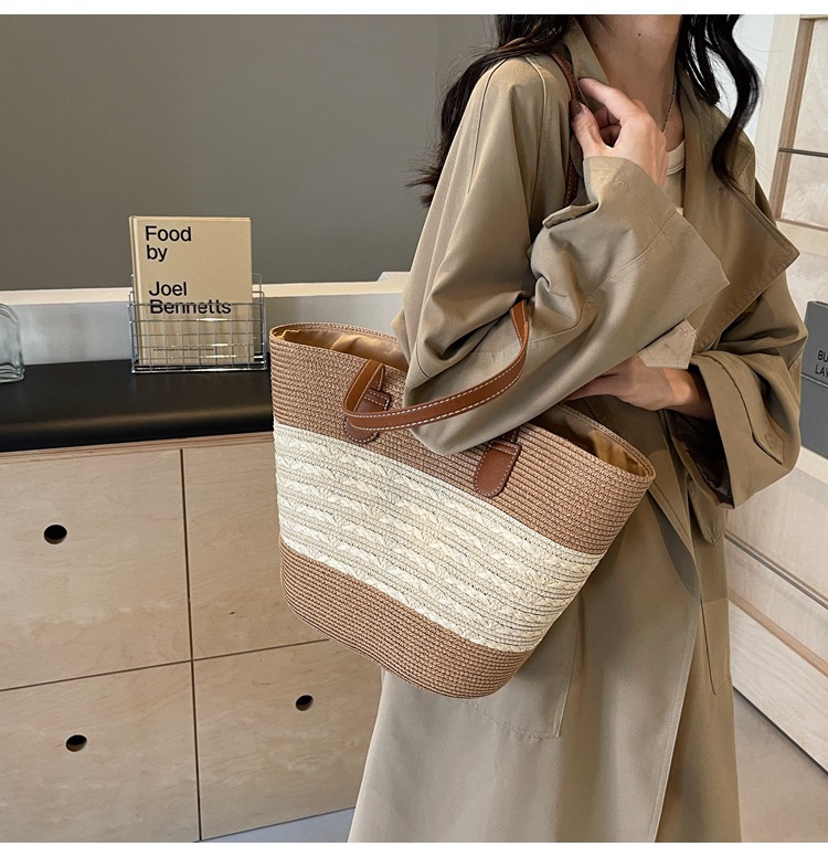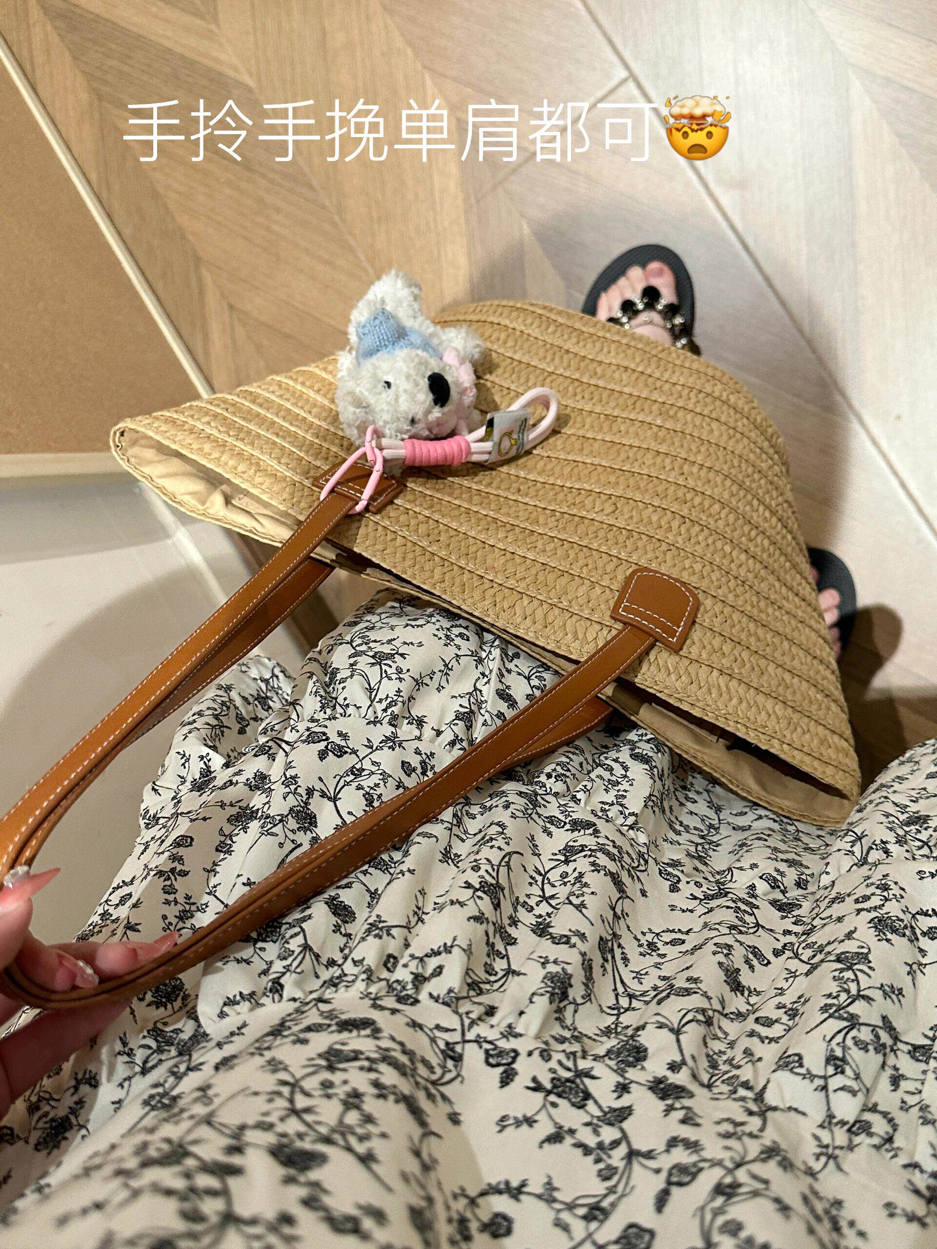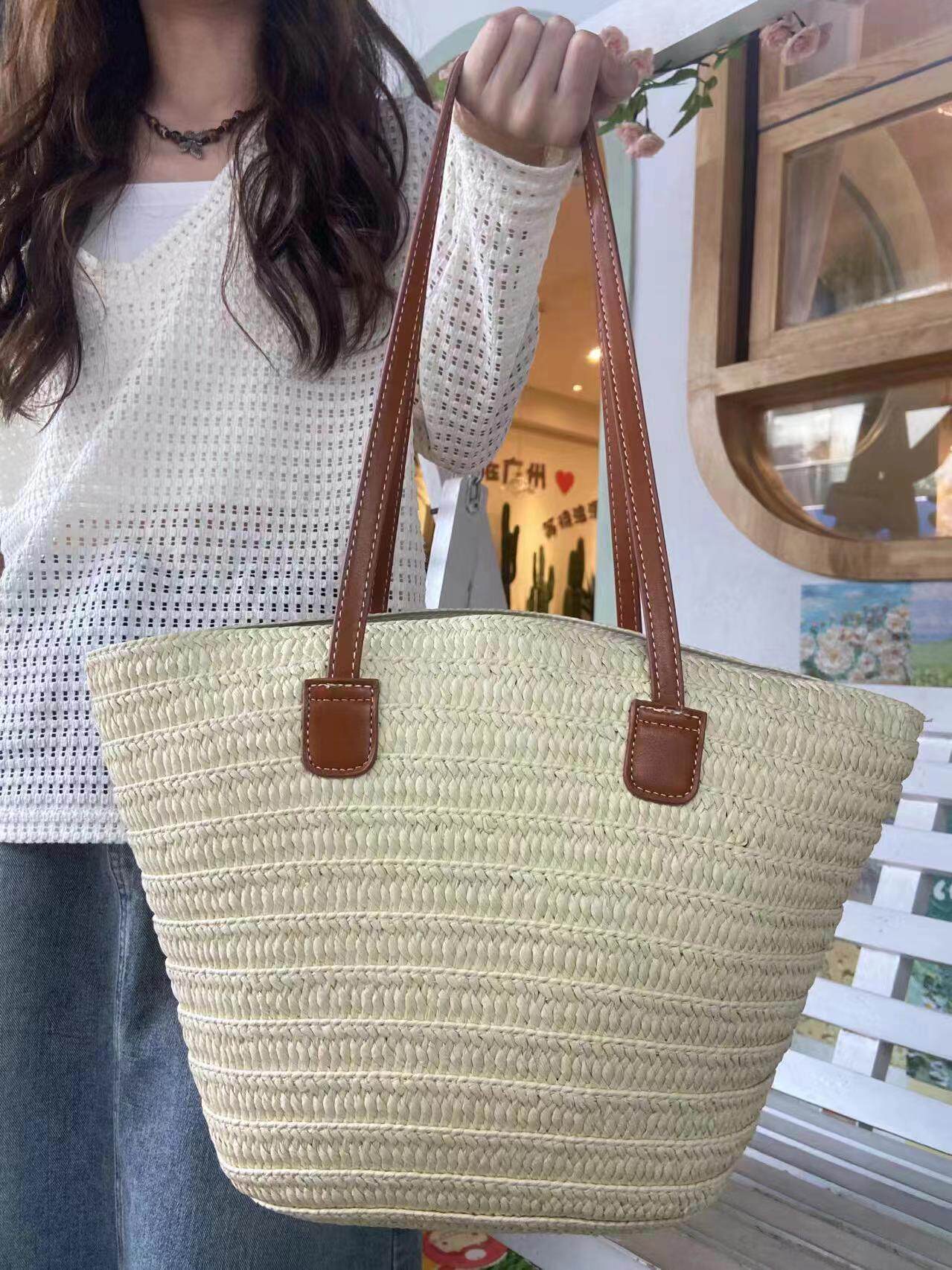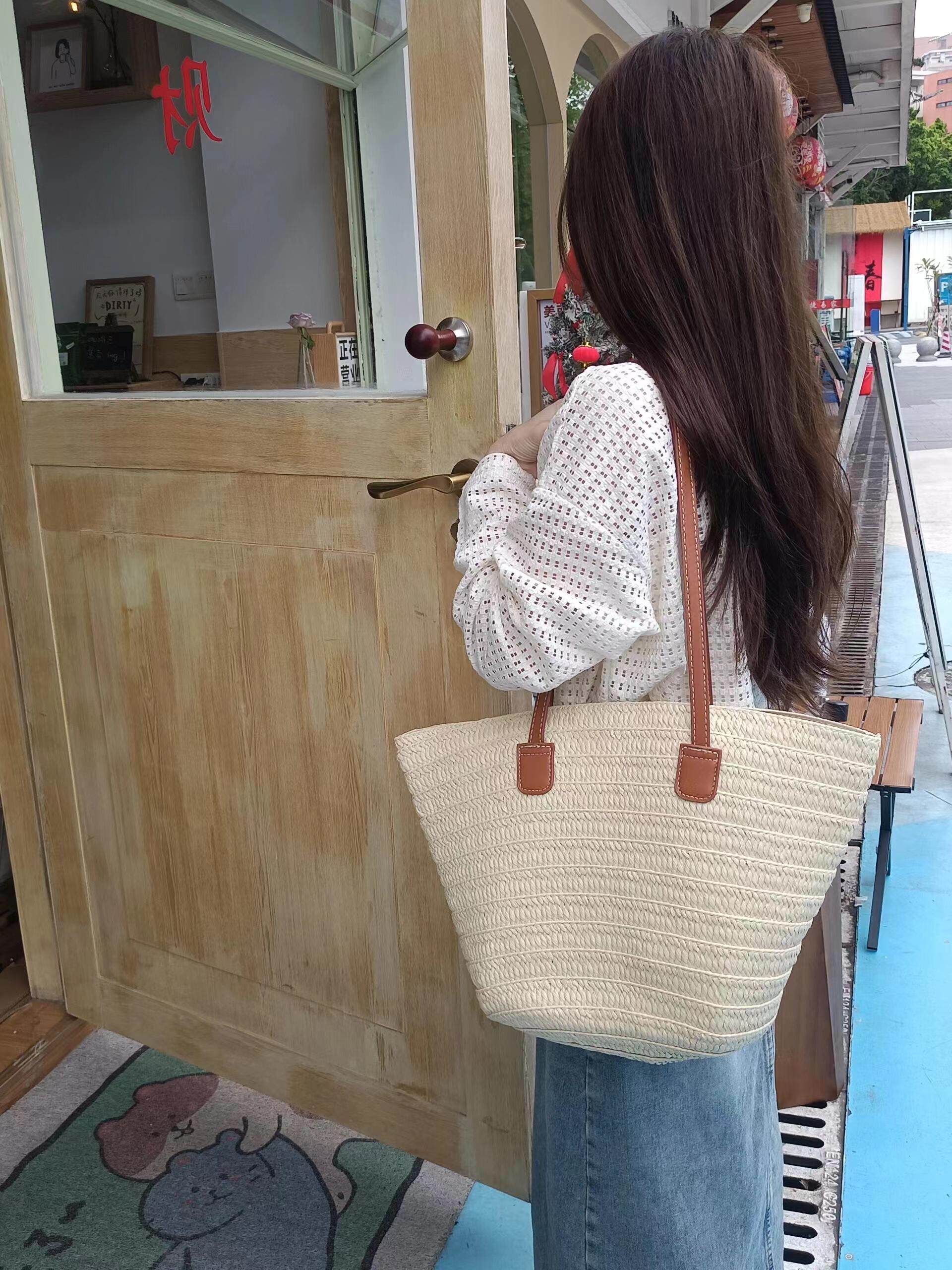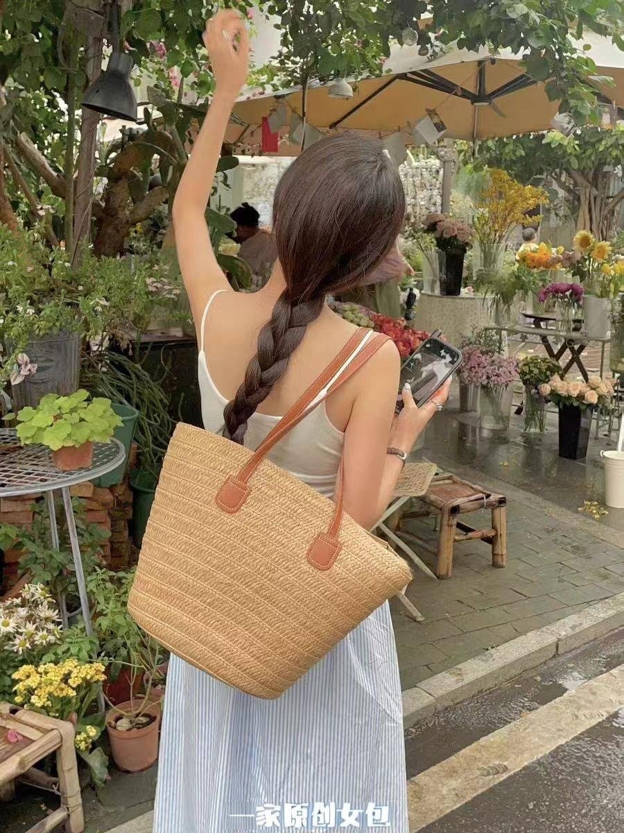 여름 여행 대용량 짠 가방 2025 새로운 캐주얼 휴가 스타일 비치 가방 통근 다용도 밀짚 가방스토어 가기