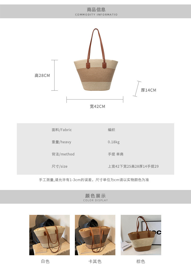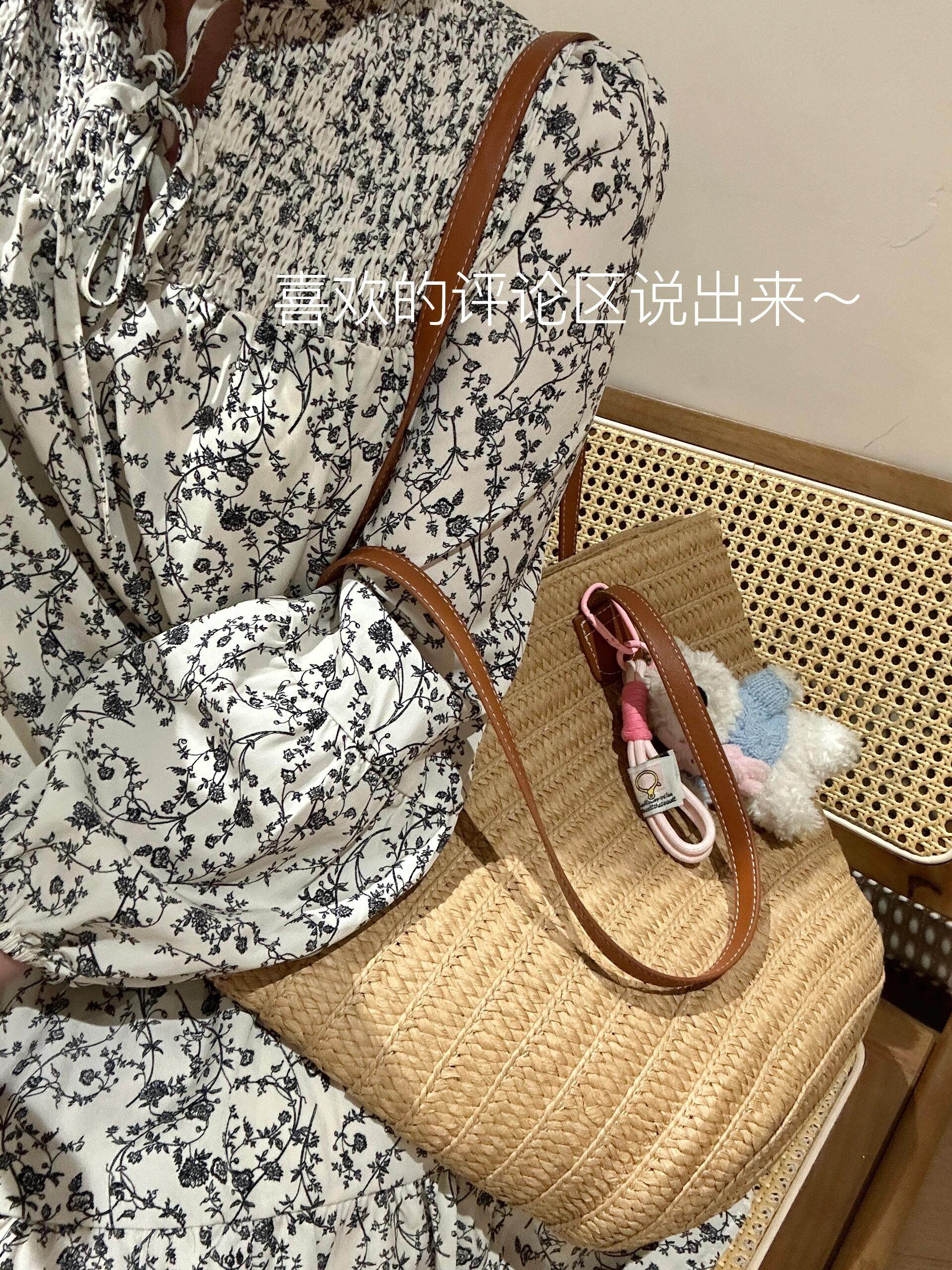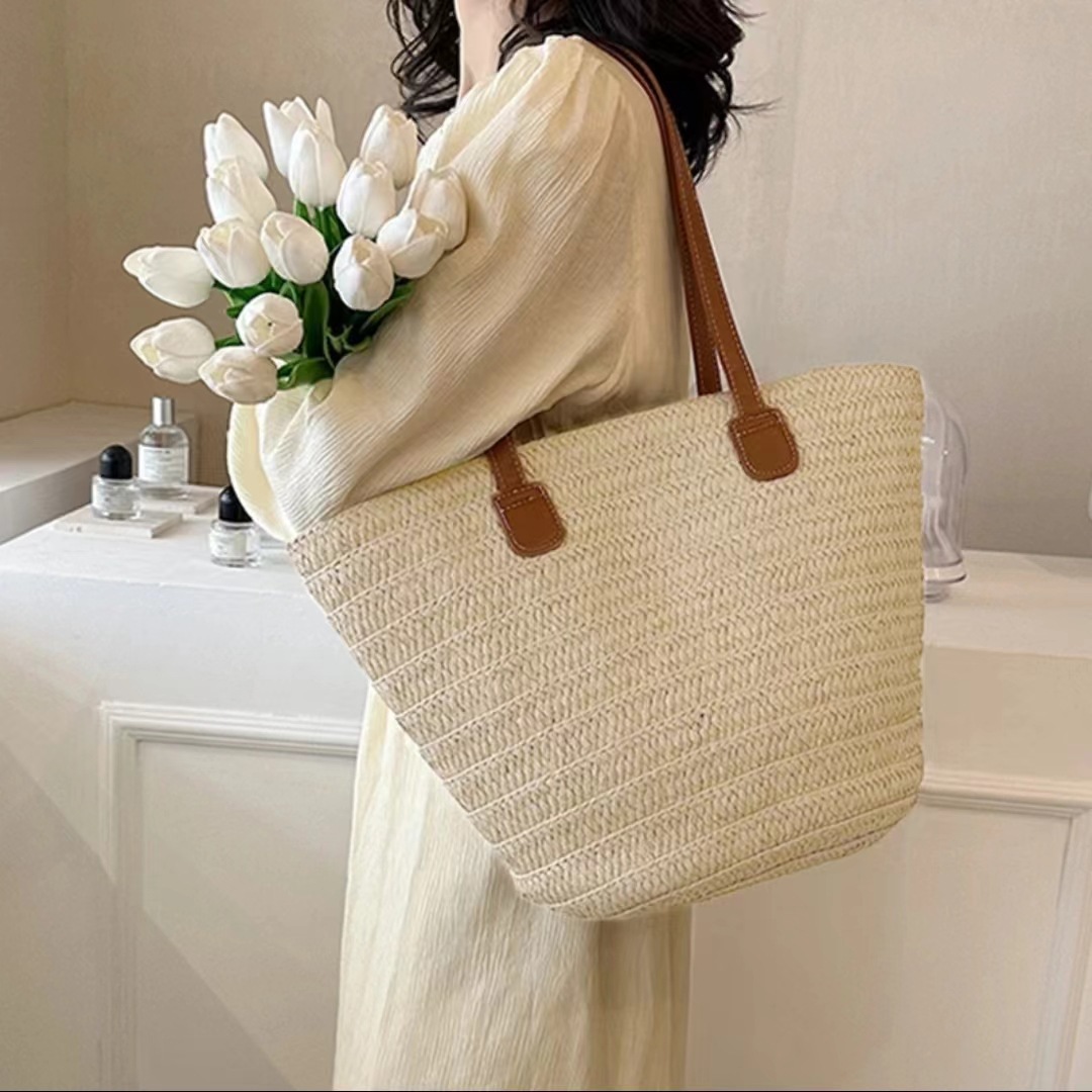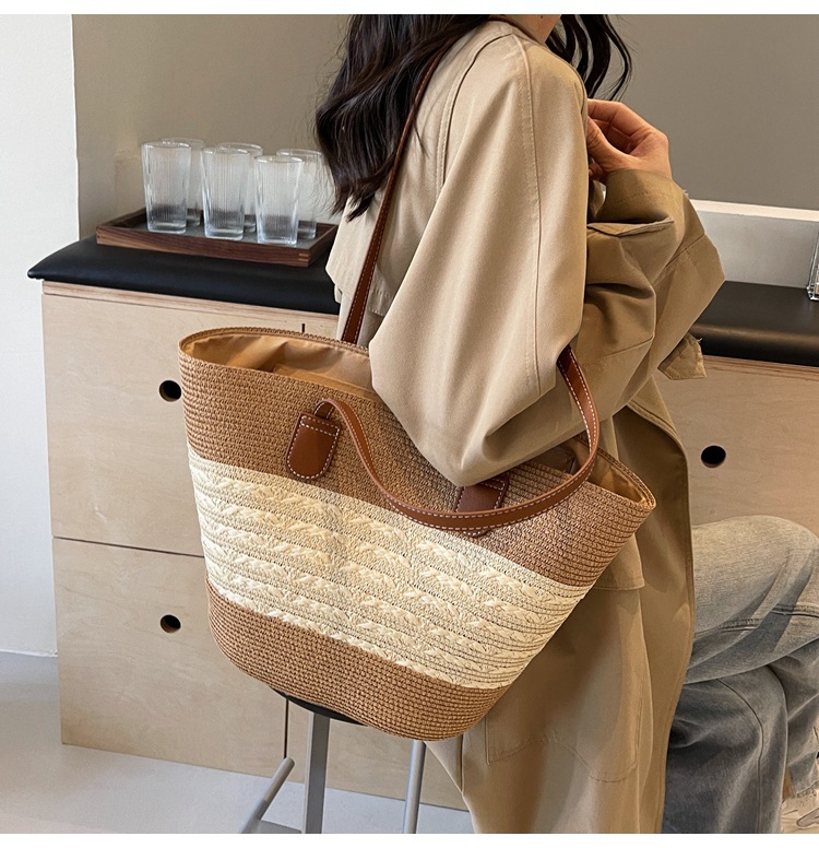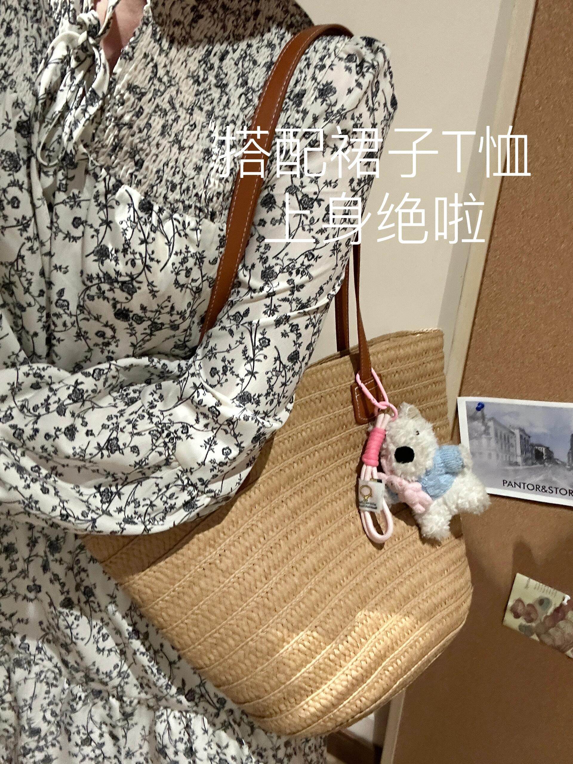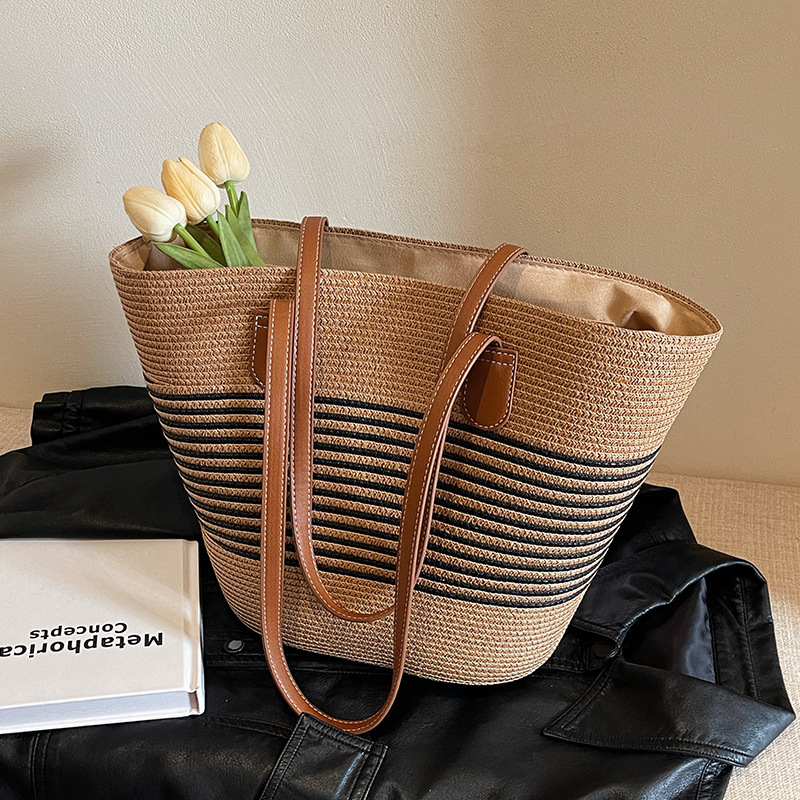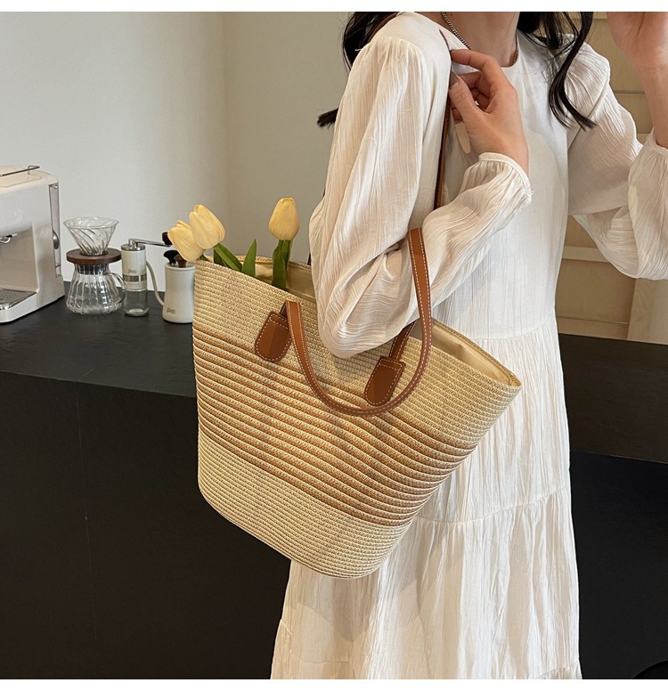 여름 여행 대용량 짠 가방 2025 새로운 캐주얼 휴가 스타일 비치 가방 통근 다용도 밀짚 가방스토어 가기