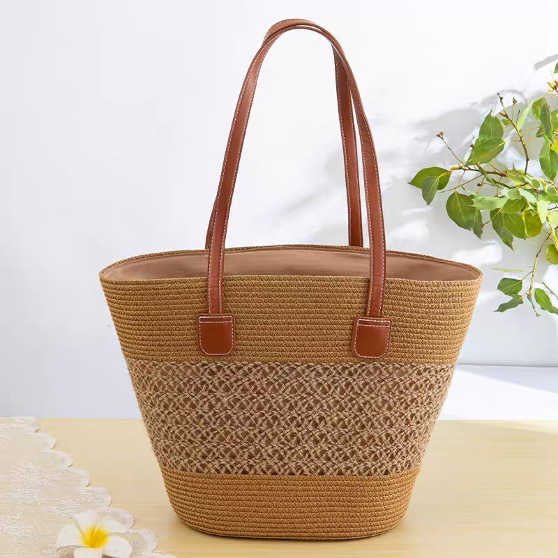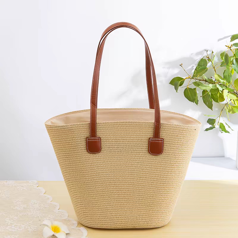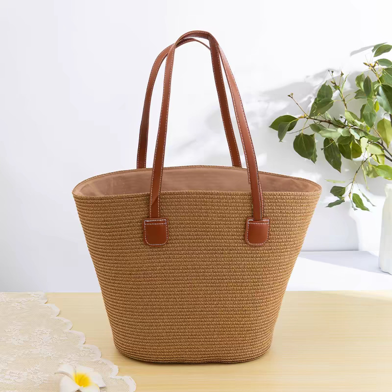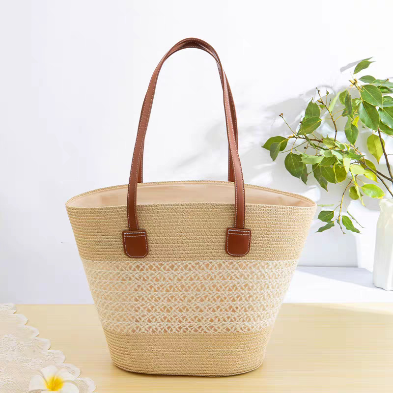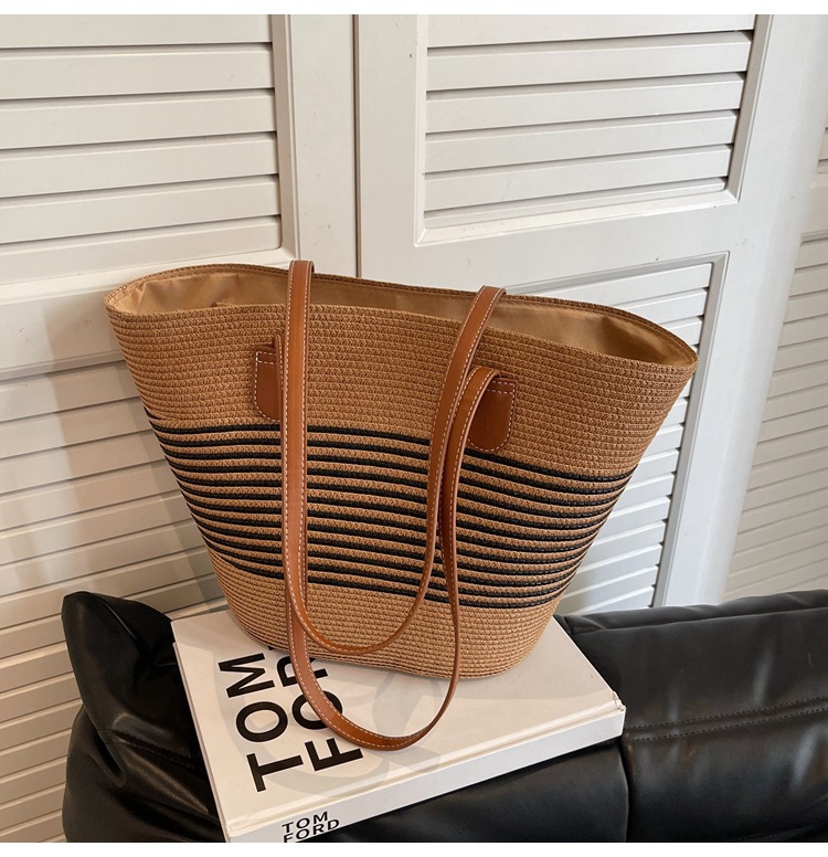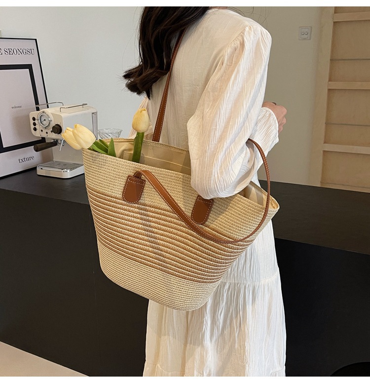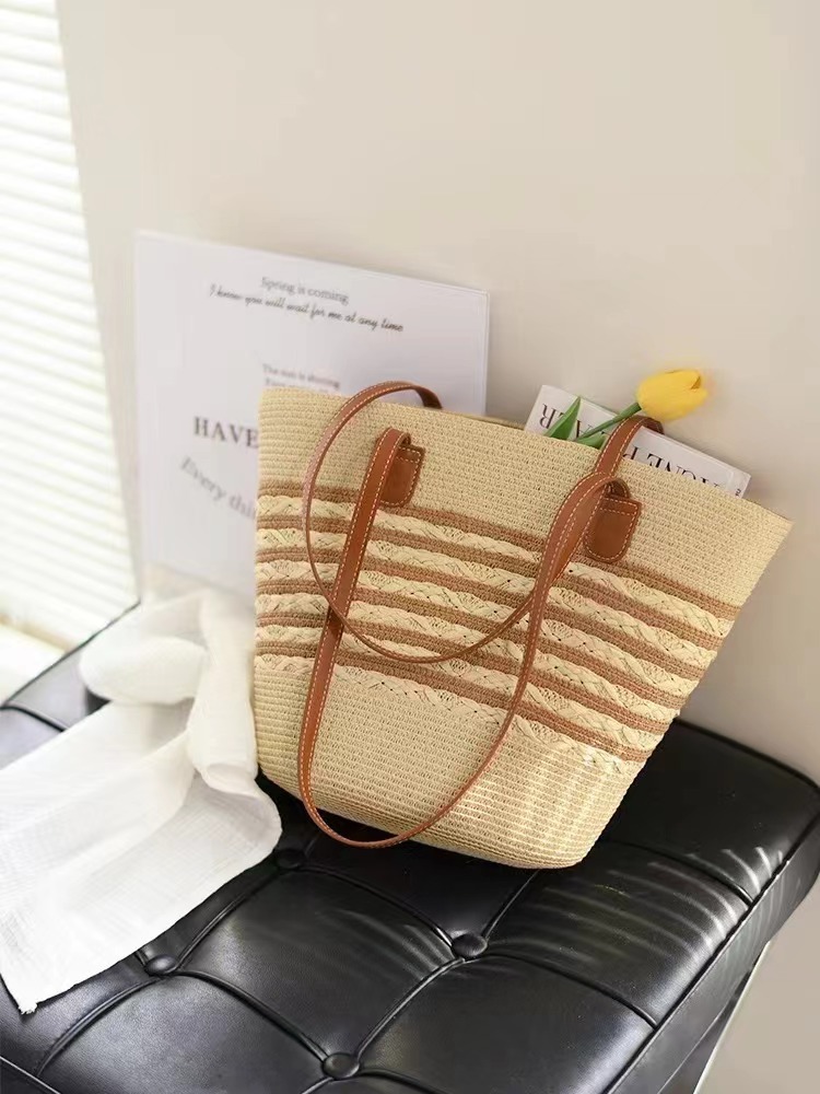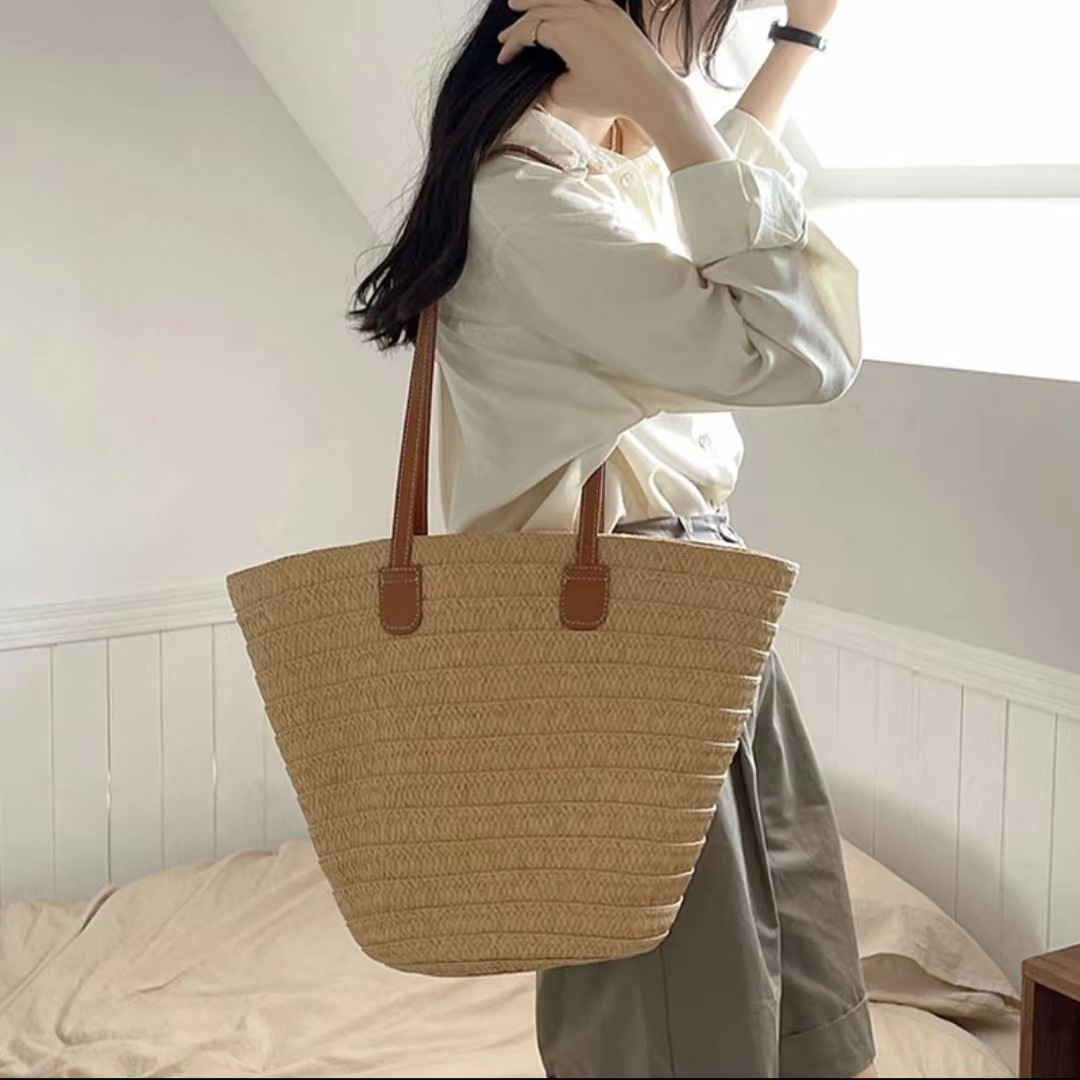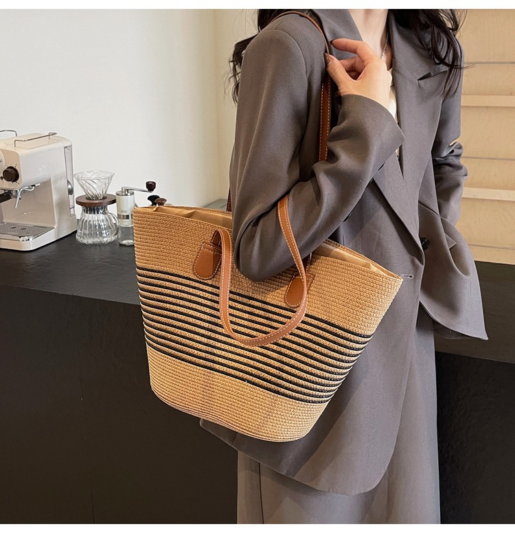 여름 여행 대용량 짠 가방 2025 새로운 캐주얼 휴가 스타일 비치 가방 통근 다용도 밀짚 가방스토어 가기