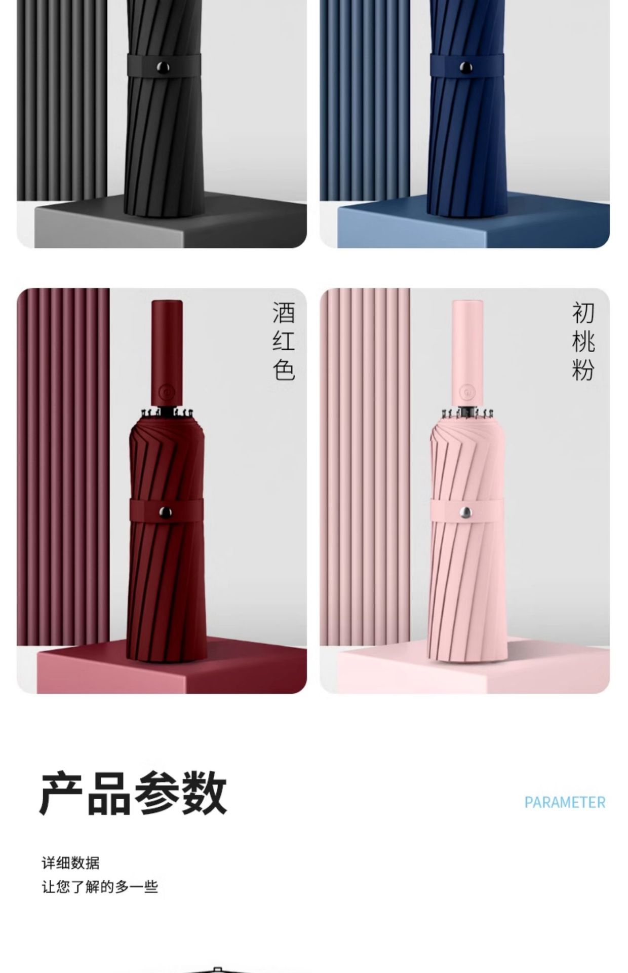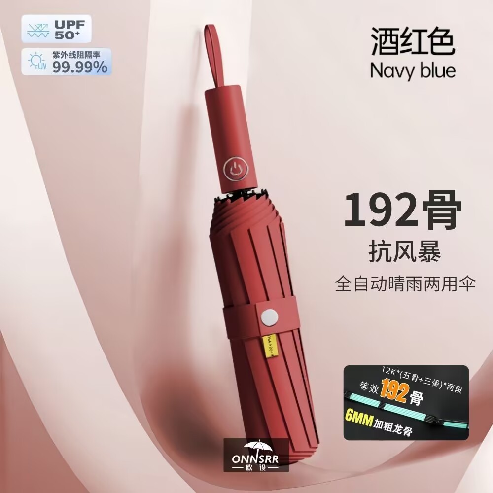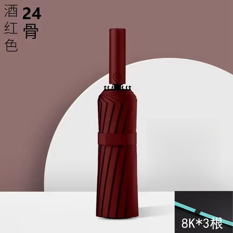 • 버건디 - 특대형 24본 [강풍에 강한 전자동 검정색 플라스틱 우산]