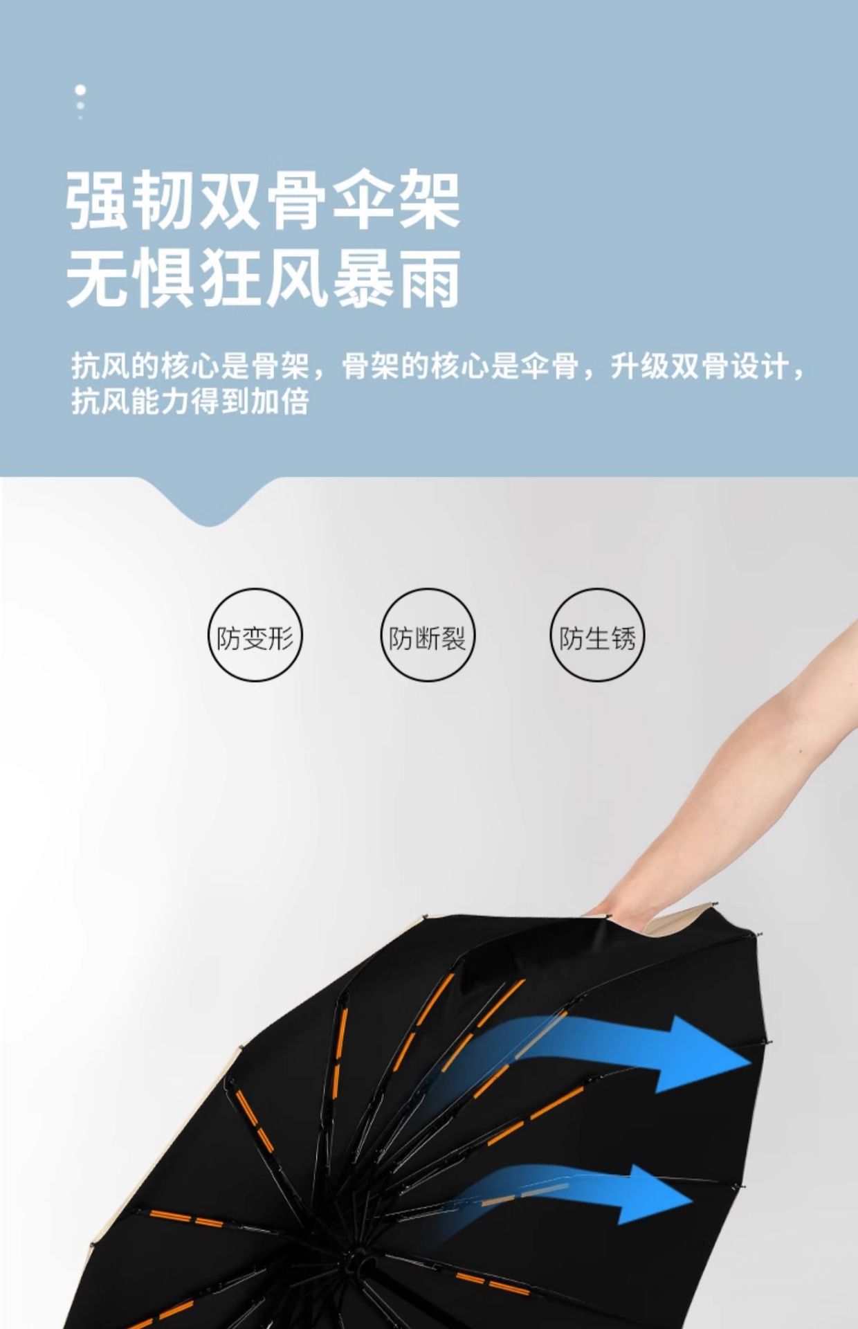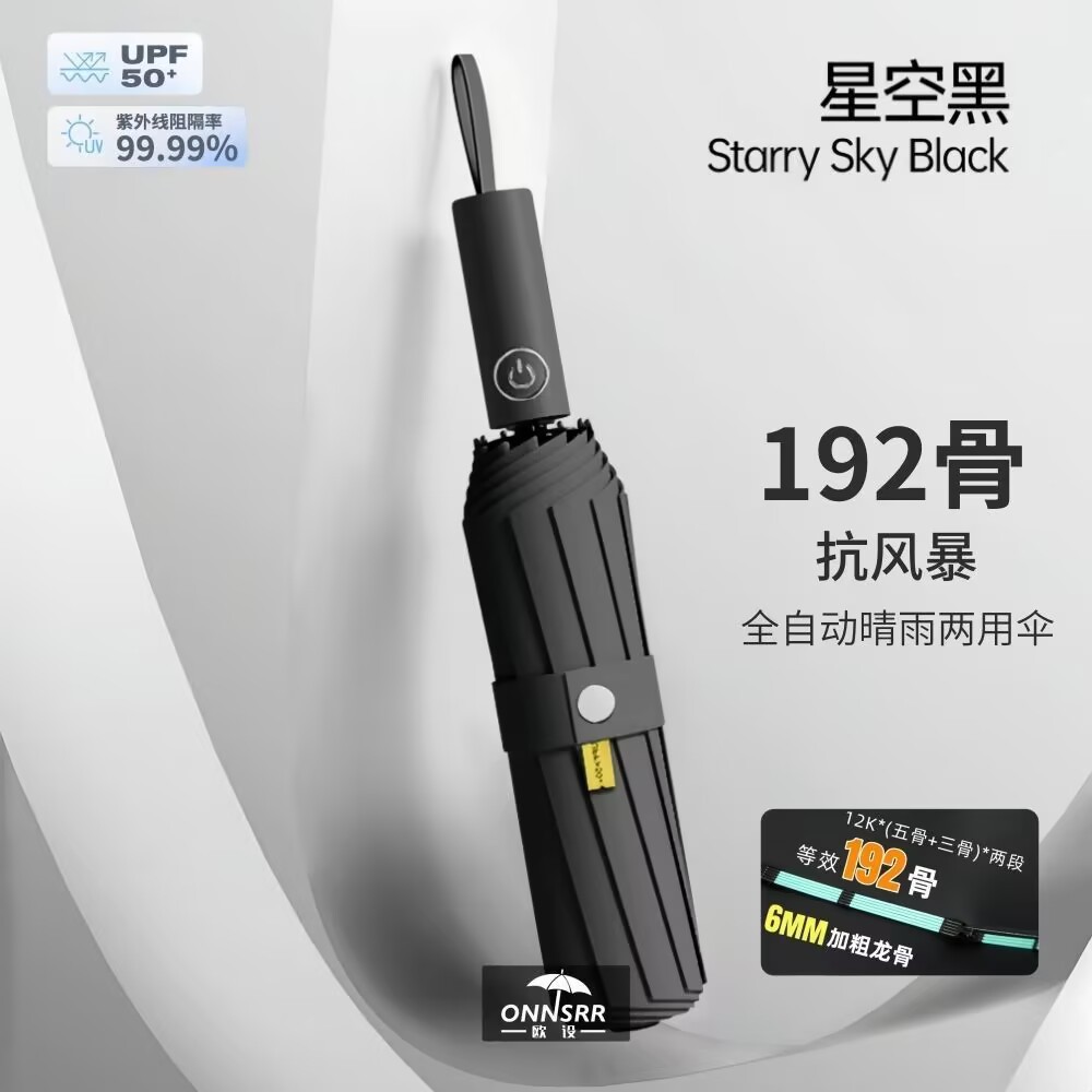 • 오통쌀 - 특대형 24본 [강풍에 강한 전자동 검정색 플라스틱 우산]