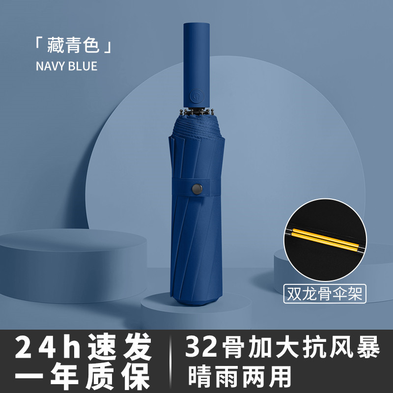 • 네이비 블루 - 특대형 32 리브 [강풍에 강한 전자동 우산]