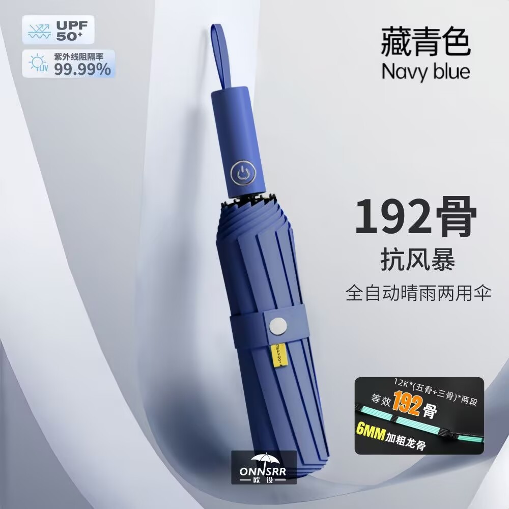 • 네이비 블루 - 특대형 24 리브 [강풍에 강한 전자동 검정색 플라스틱 우산]