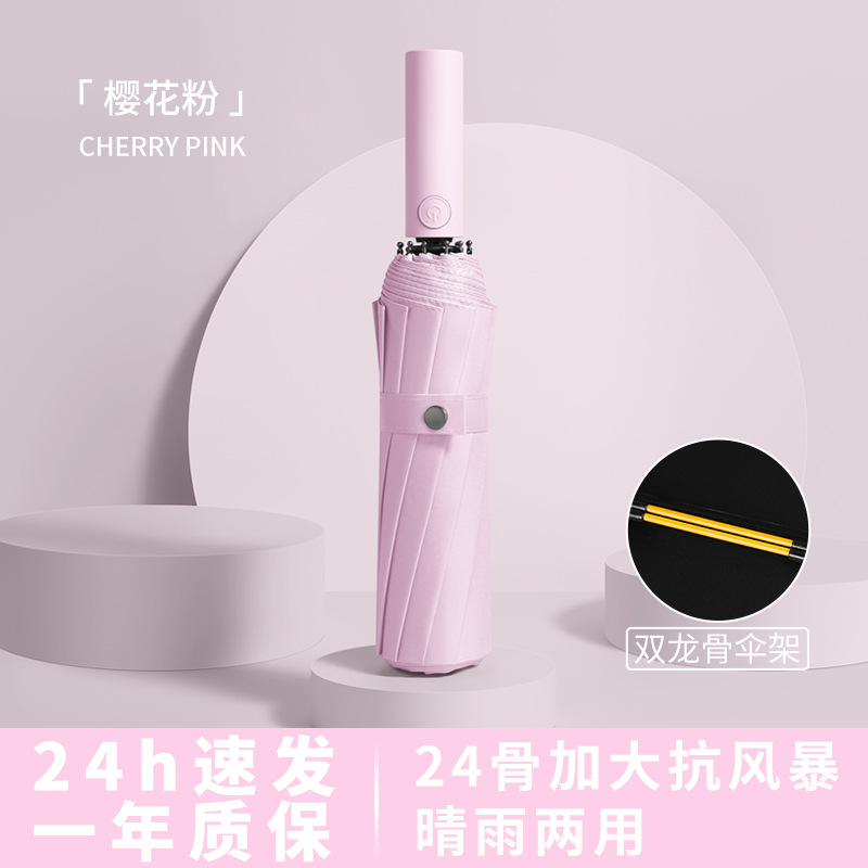 • 핑크 - 특대형 24리브 [강풍에 강한 전자동 검정색 플라스틱 우산]