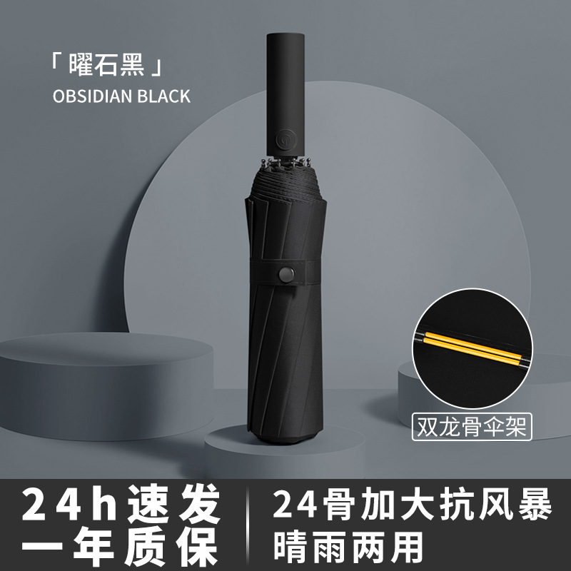 • 블랙 - 특대형 24립 [강풍에 강한 전자동 검정색 플라스틱 우산]