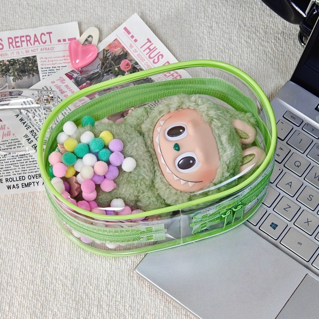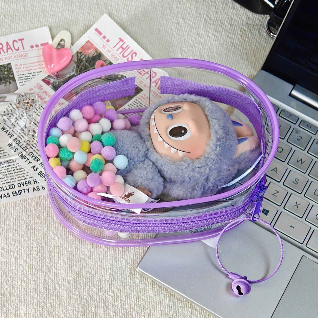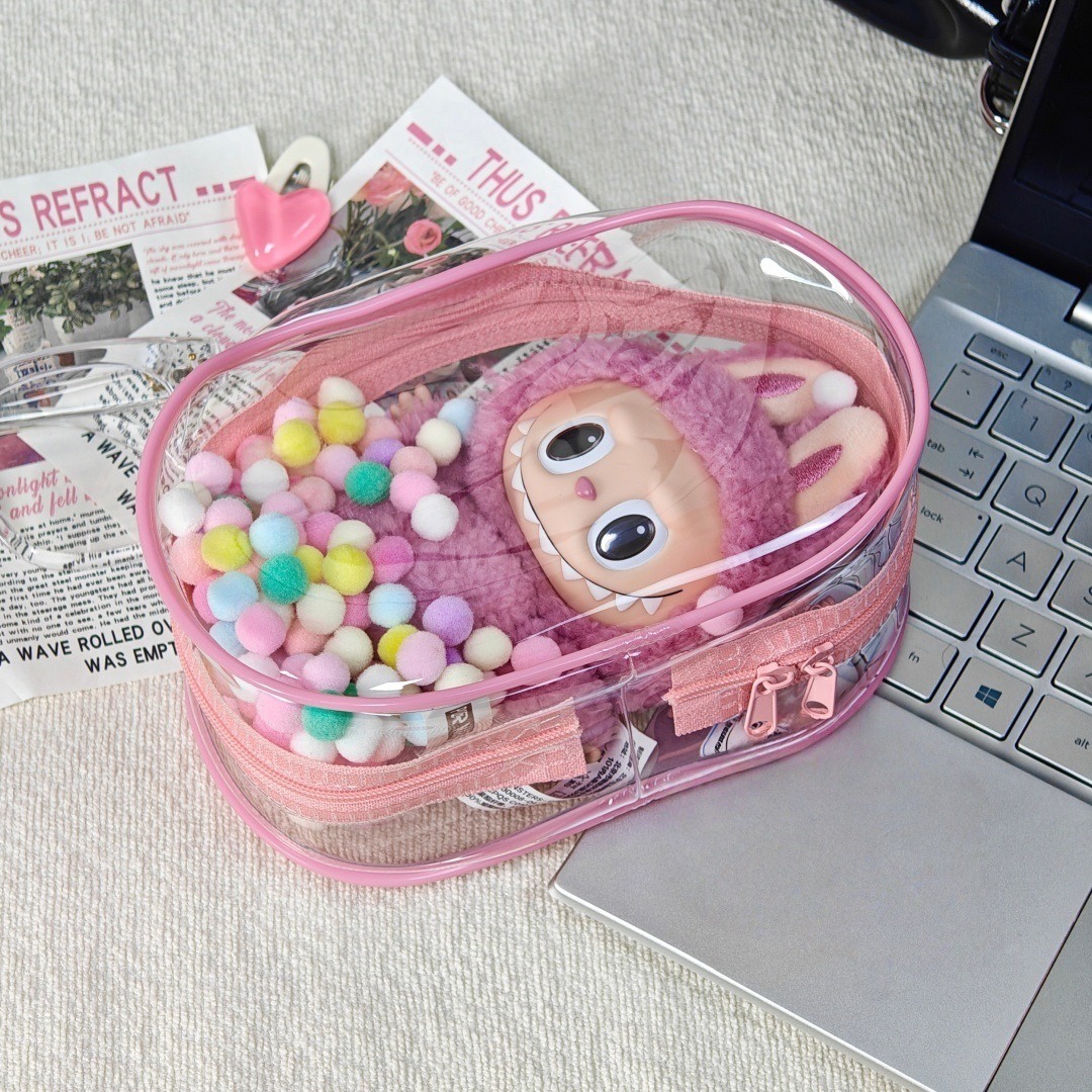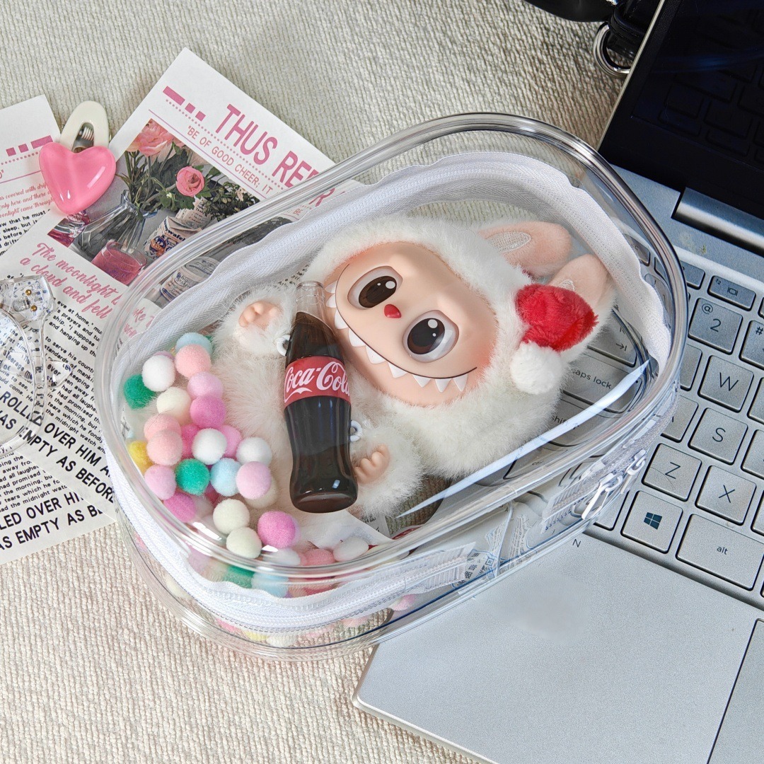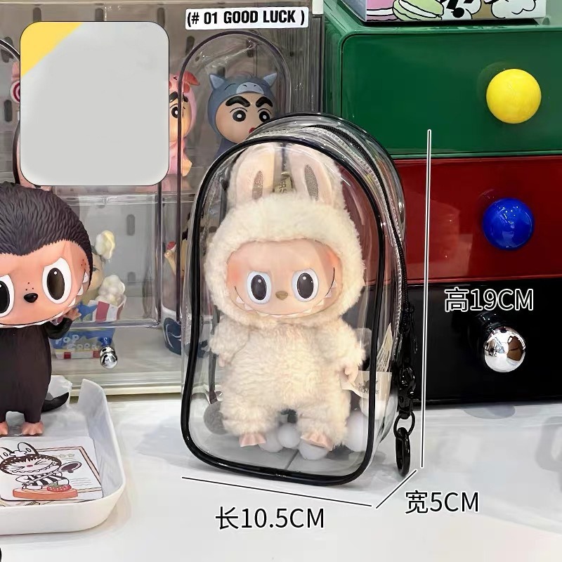 Labubu 보호 쉘 Labubu 투명 아기 산책 가방 해피 커버 귀여운 파티 코튼 인형 보관 가방 두꺼운