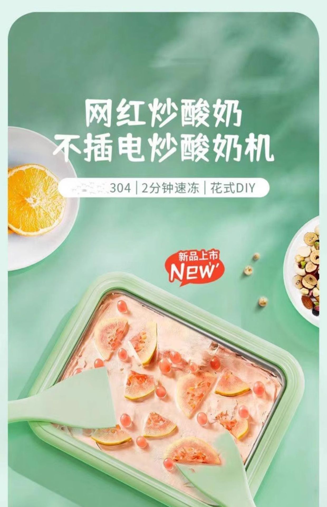 • [식품 등급 304 스테인레스 스틸] 녹색 얼음 튀김 기계 - 무료 얼음 삽*2