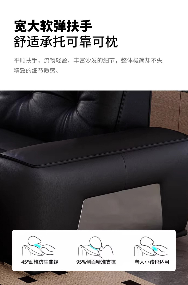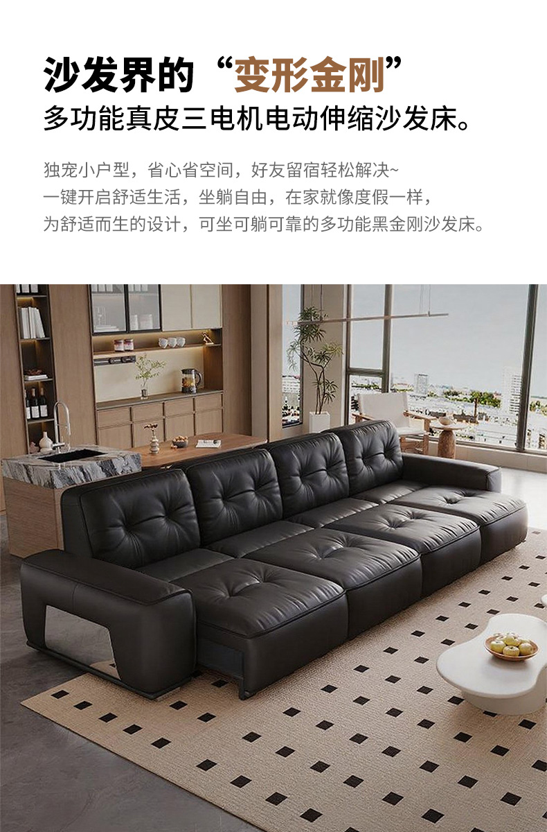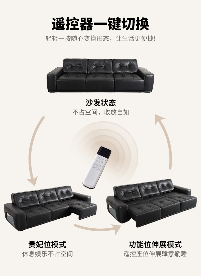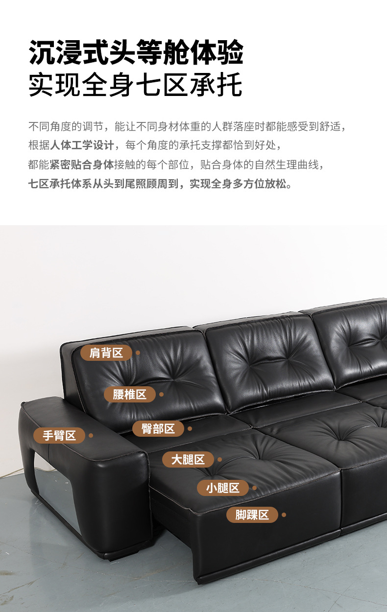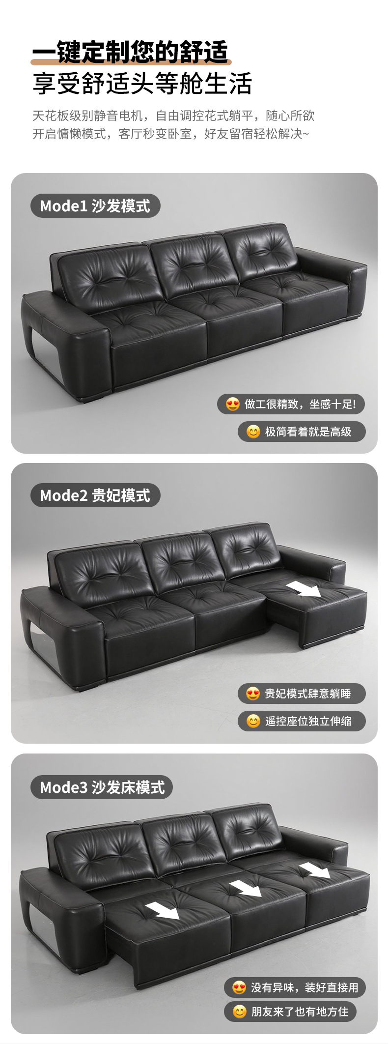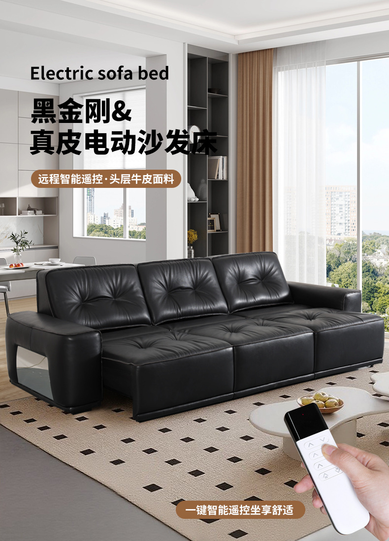 이탈리아 스타일의 고급 가죽 소파베드, 블랙 다이아몬드 대형 가죽 소파베드, 전동 기능이 있는 가죽 소파베드