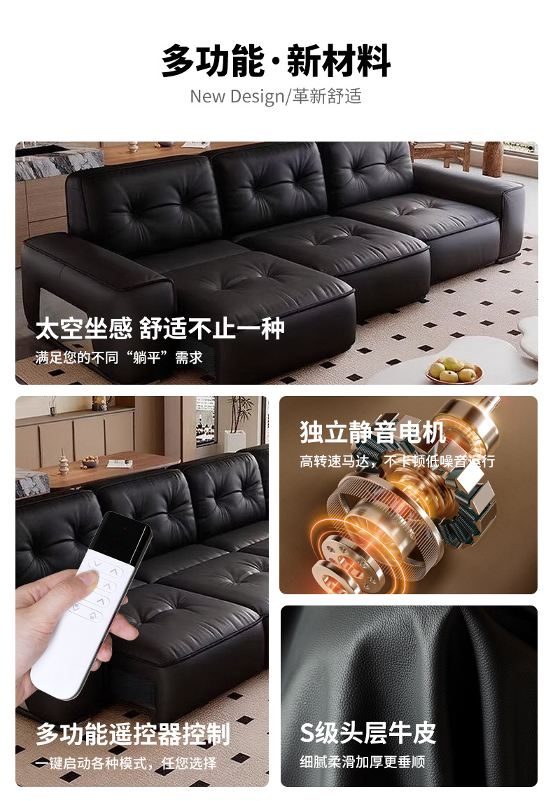 이탈리아 스타일의 고급 가죽 소파베드, 블랙 다이아몬드 대형 가죽 소파베드, 전동 기능이 있는 가죽 소파베드스토어 가기