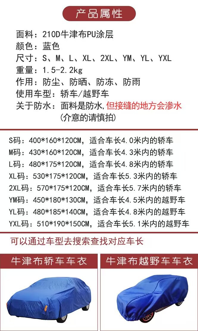 옥스포드 천 폴리에스터 태피터 자동차 커버, 자외선 차단, 비 방지 및 동결 방지, 사계절 범용 자동차 커버, 자동차 코트, 파라솔 및 비 방지 커버