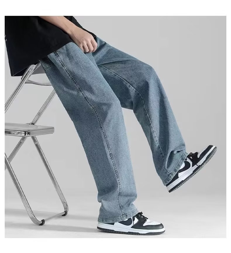 남성용 스트레이트 청바지 2025 여름 얇은 트렌디 브랜드 루즈한 와이드 레그 드레이프 바닥 길이 바지 캐주얼 바지스토어 가기