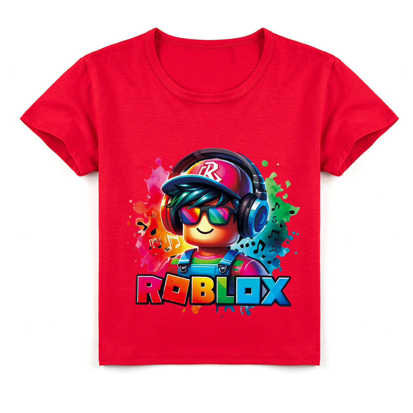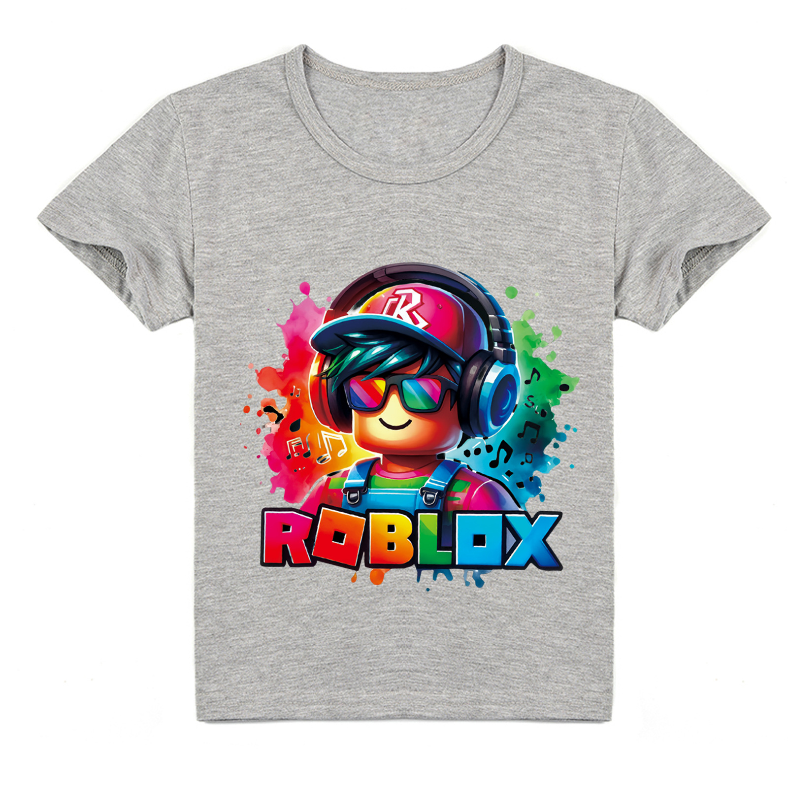 ROBLOX 아동용 반팔 티셔츠 2024 여름 옷 소년 소녀 면화 만화 프린트 탑 트렌디 브랜드 다용도