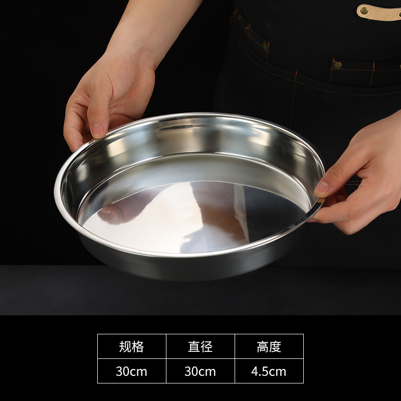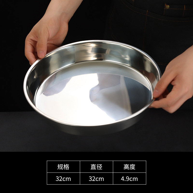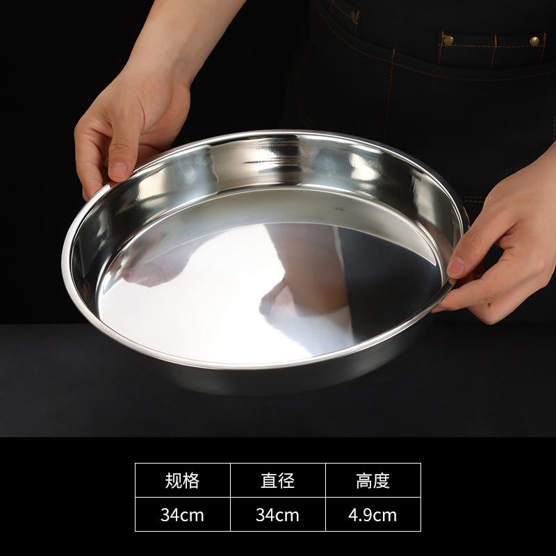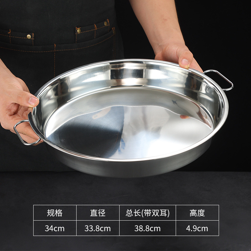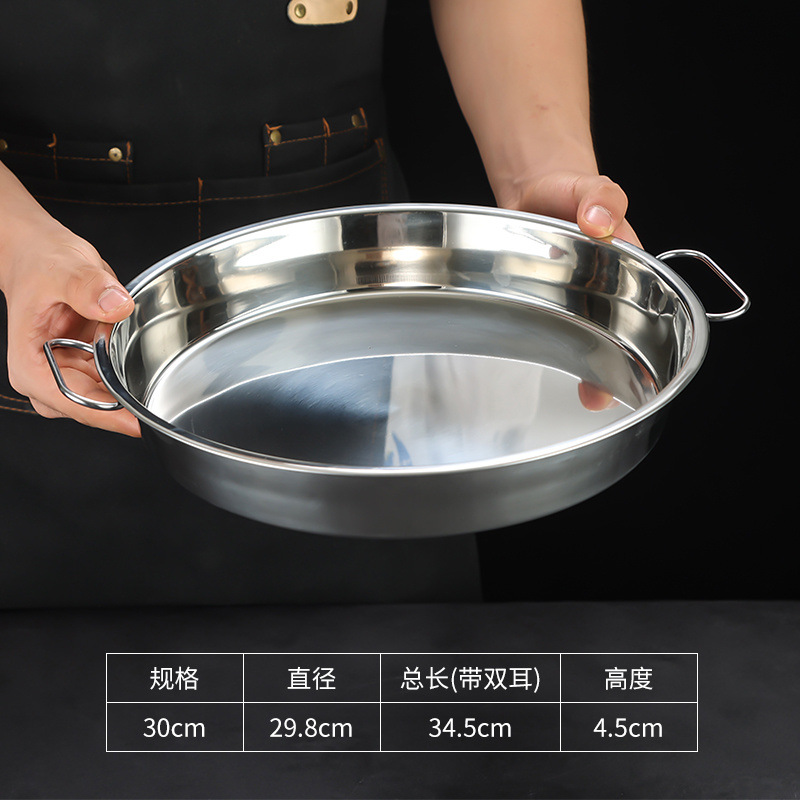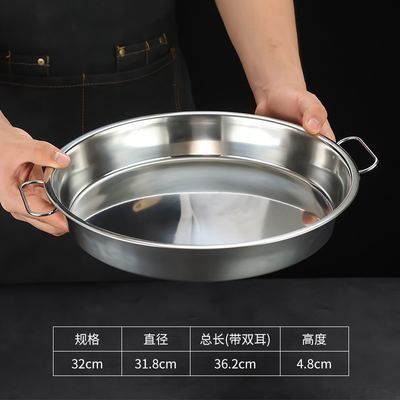 304 스테인레스 스틸 손잡이 원형 접시 냉간 고기 두 귀 케이크 접시 상업용 대형 트레이 플랫 트레이 찜 접시 생선 접시스토어 가기