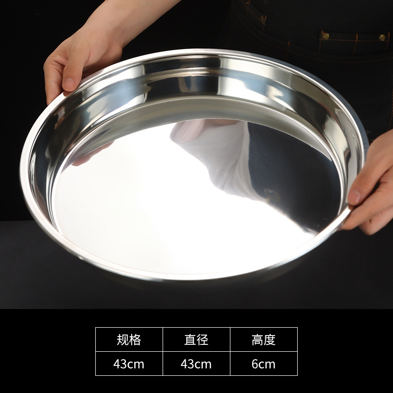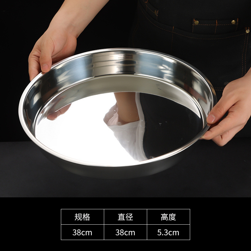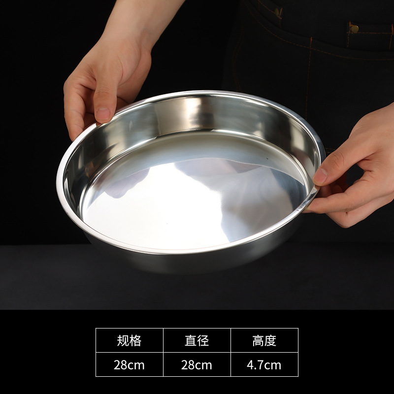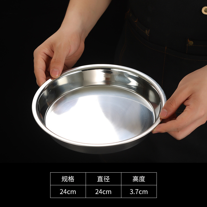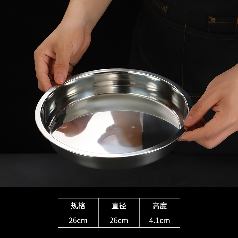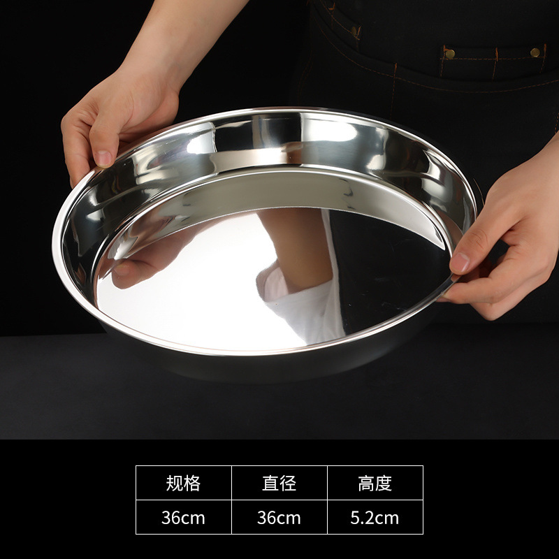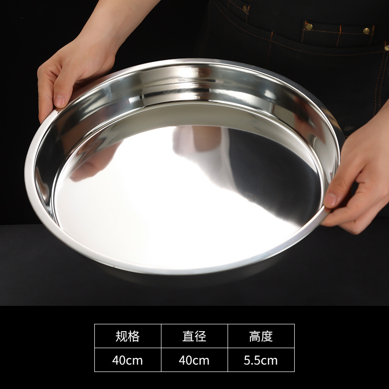 304 스테인레스 스틸 손잡이 원형 접시 냉간 고기 두 귀 케이크 접시 상업용 대형 트레이 플랫 트레이 찜 접시 생선 접시스토어 가기