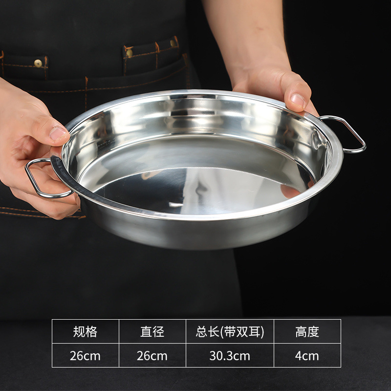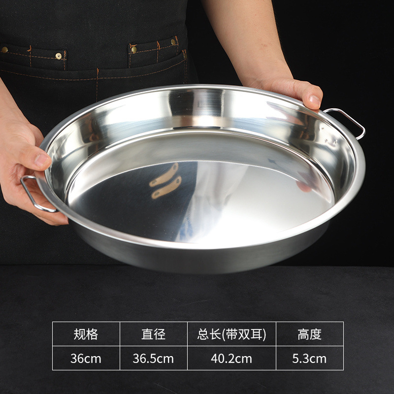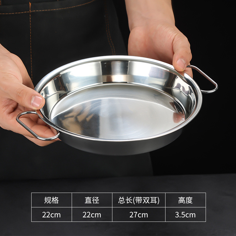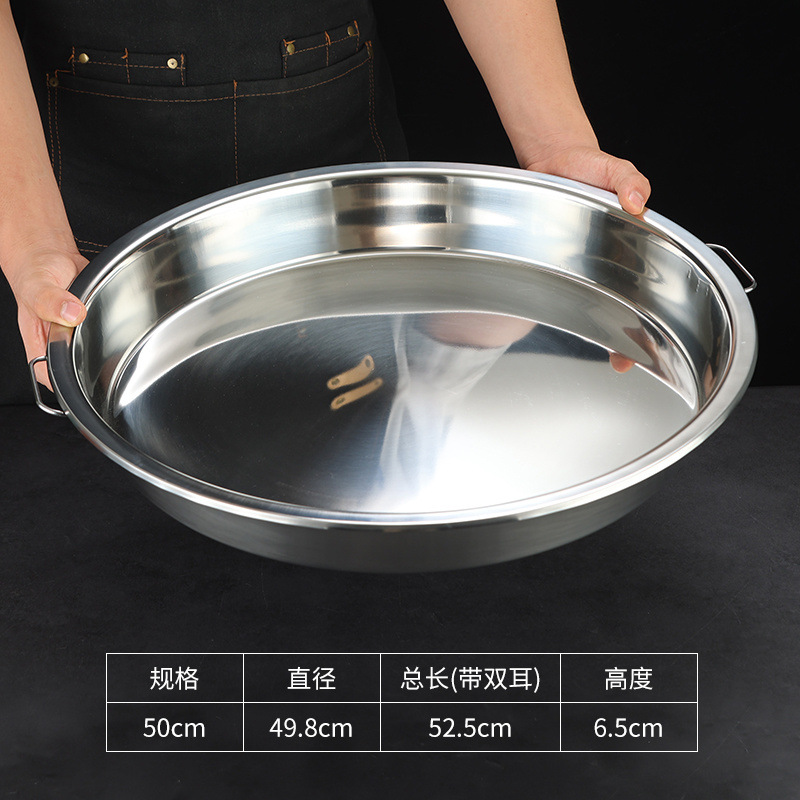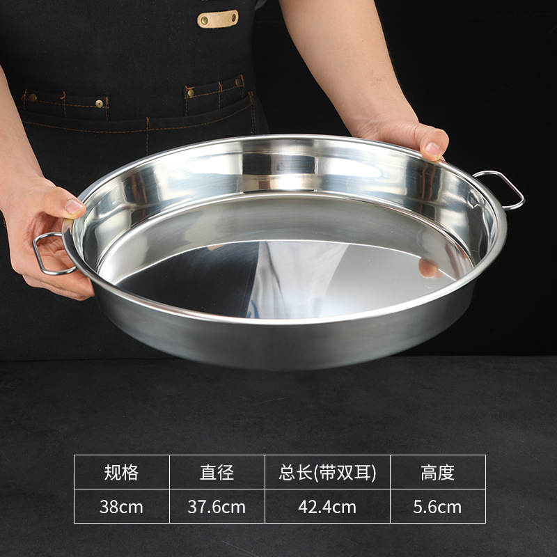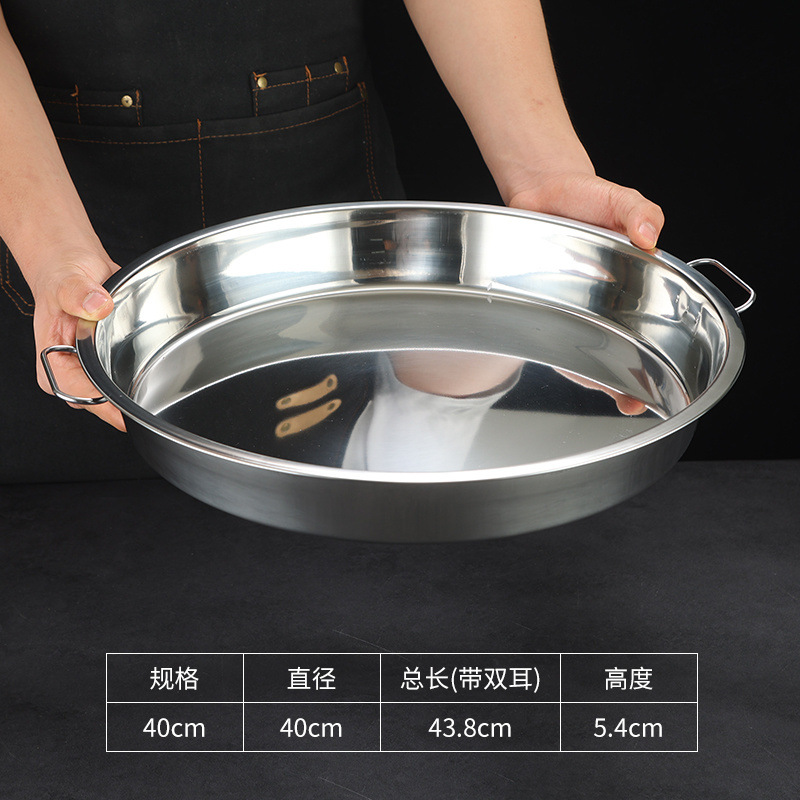 304 스테인레스 스틸 손잡이 원형 접시 냉간 고기 두 귀 케이크 접시 상업용 대형 트레이 플랫 트레이 찜 접시 생선 접시