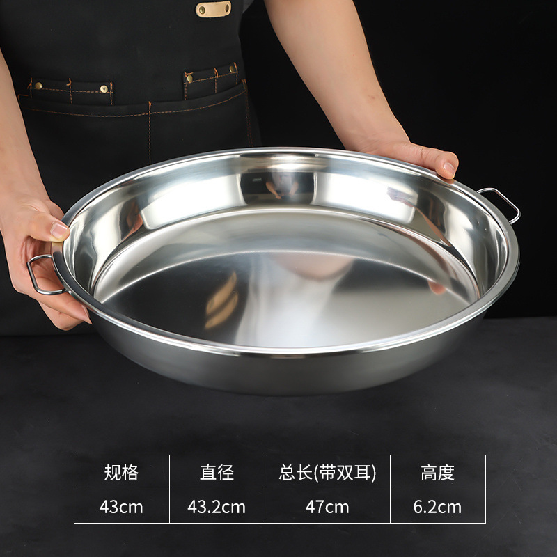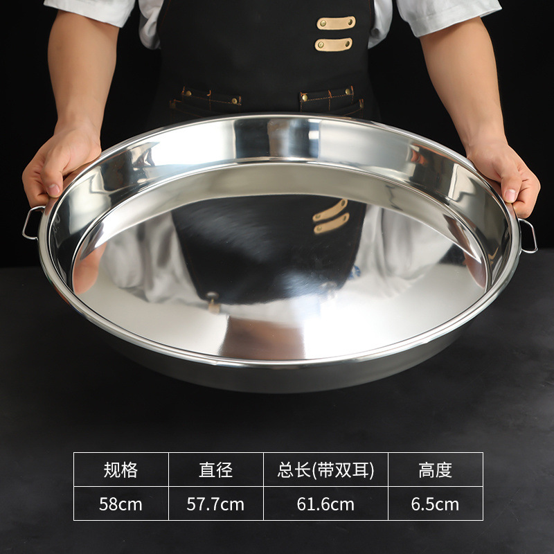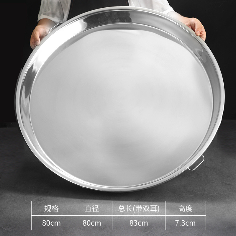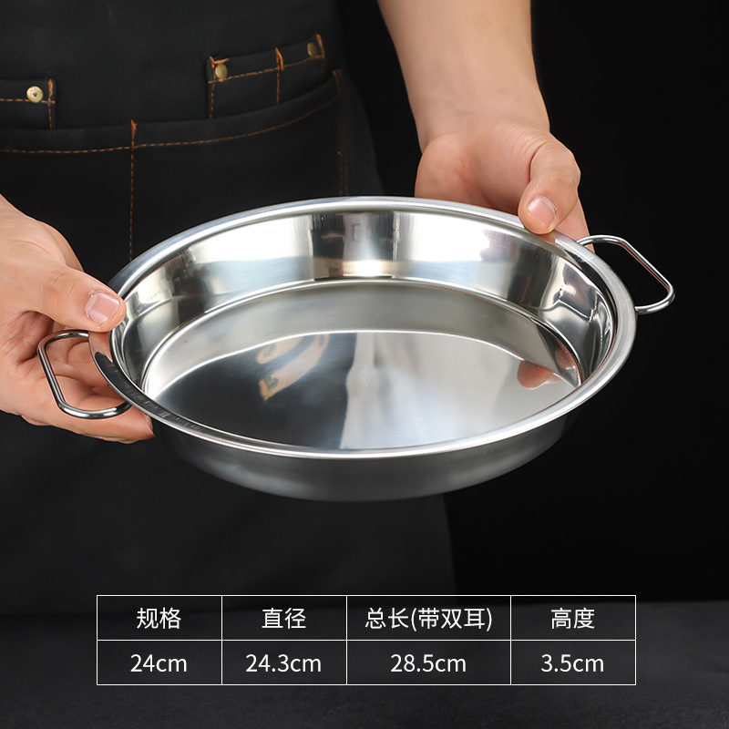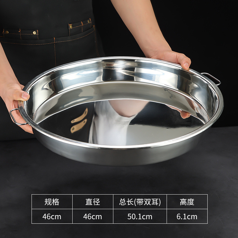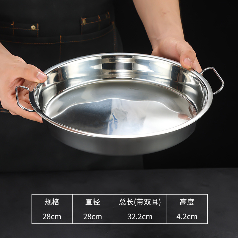 304 스테인레스 스틸 손잡이 원형 접시 냉간 고기 두 귀 케이크 접시 상업용 대형 트레이 플랫 트레이 찜 접시 생선 접시