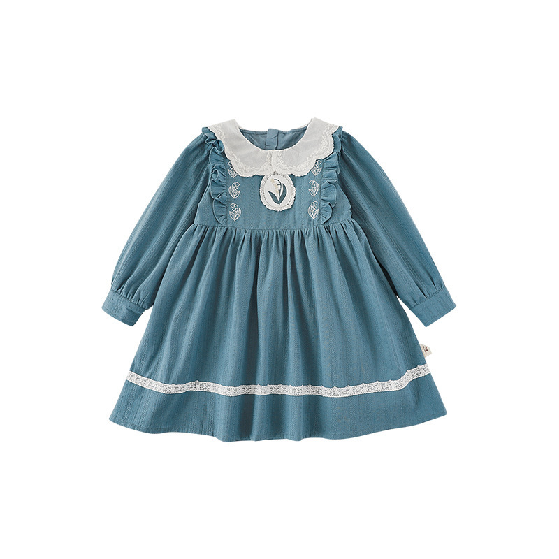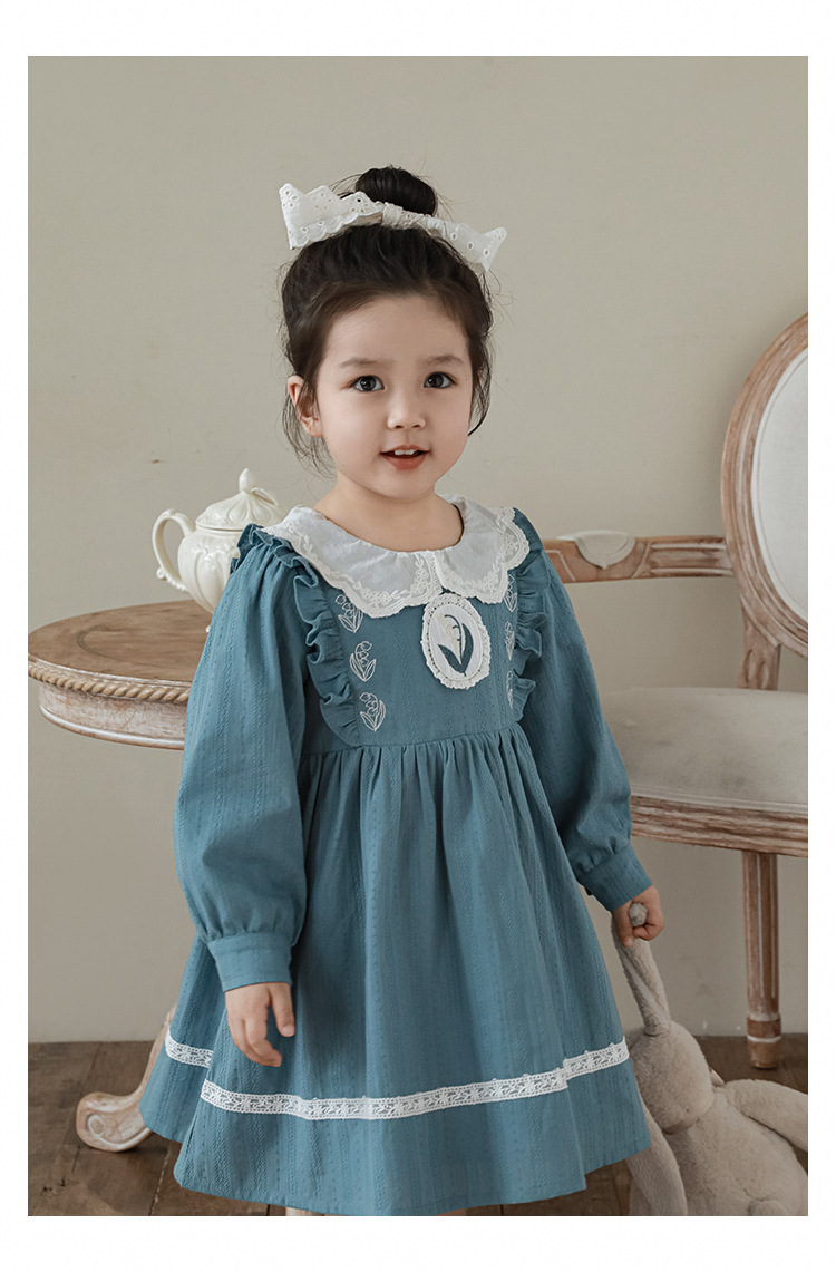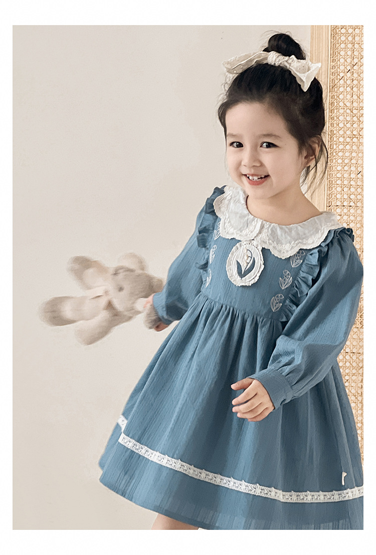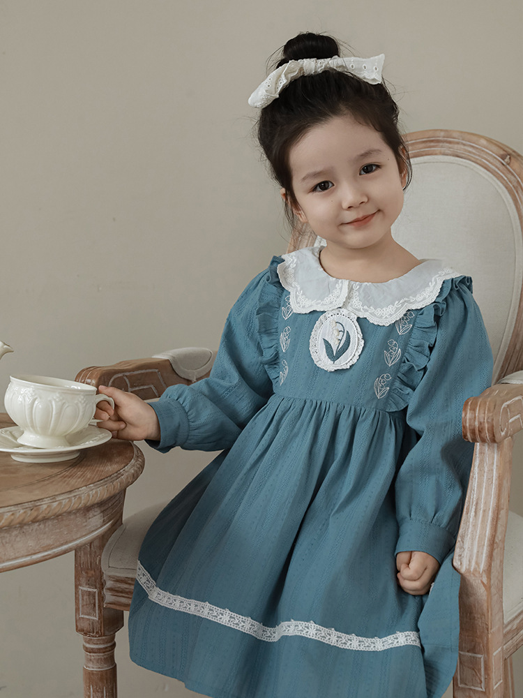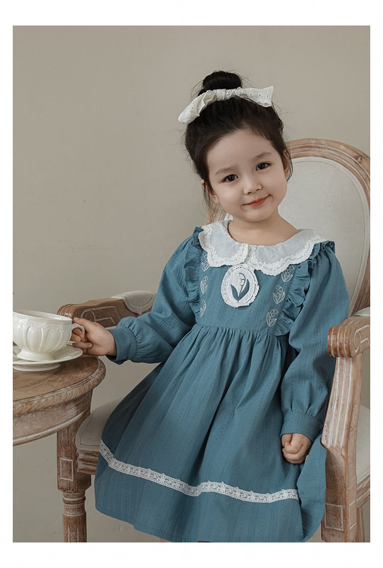 Wulibuyi 소녀 레이스 드레스 어린이 영국 복고풍 공주 드레스 2025 가을 새 드레스스토어 가기