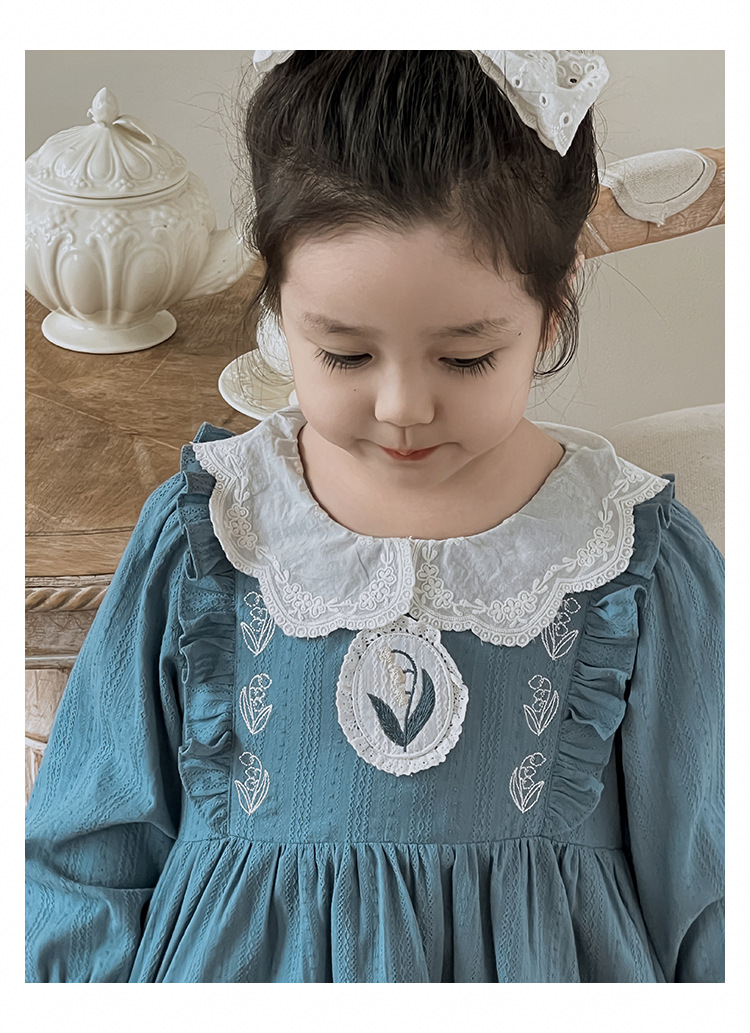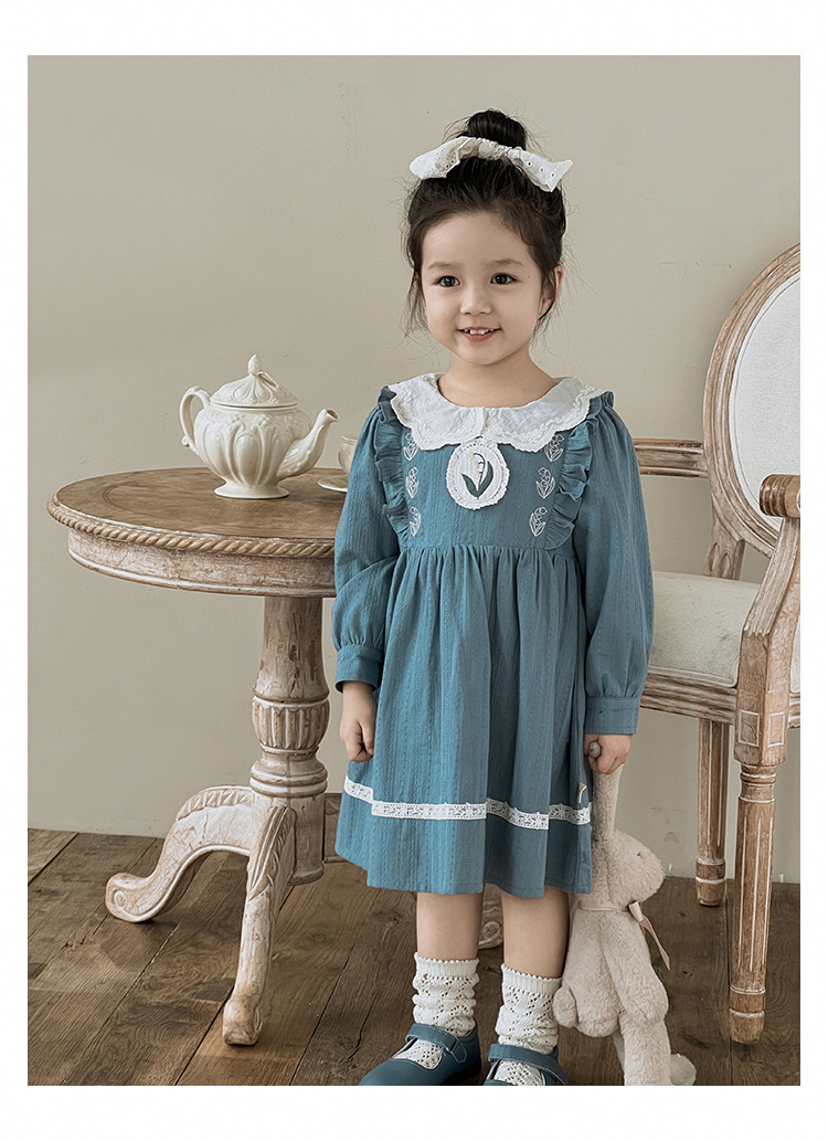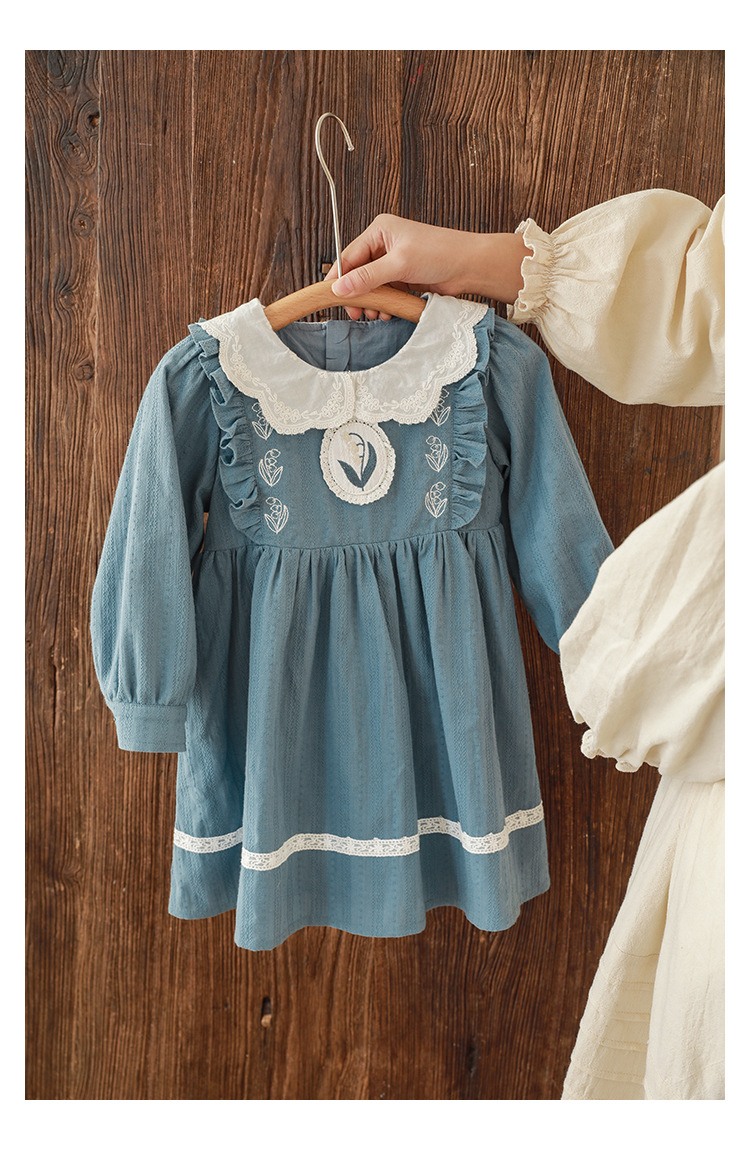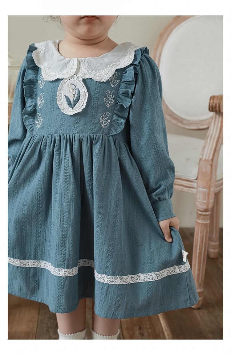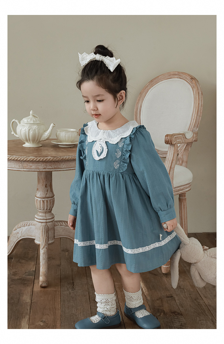Wulibuyi 소녀 레이스 드레스 어린이 영국 복고풍 공주 드레스 2025 가을 새 드레스스토어 가기
