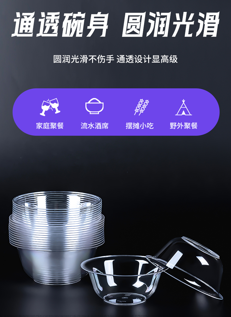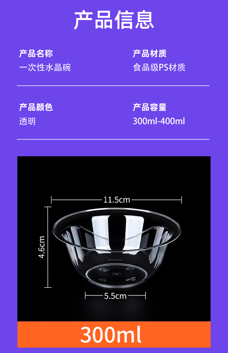 두꺼운 일회용 항공 크리스탈 그릇 가정용 단단한 투명 그릇 전골 식기 식품 등급 수프 그릇 디저트 그릇