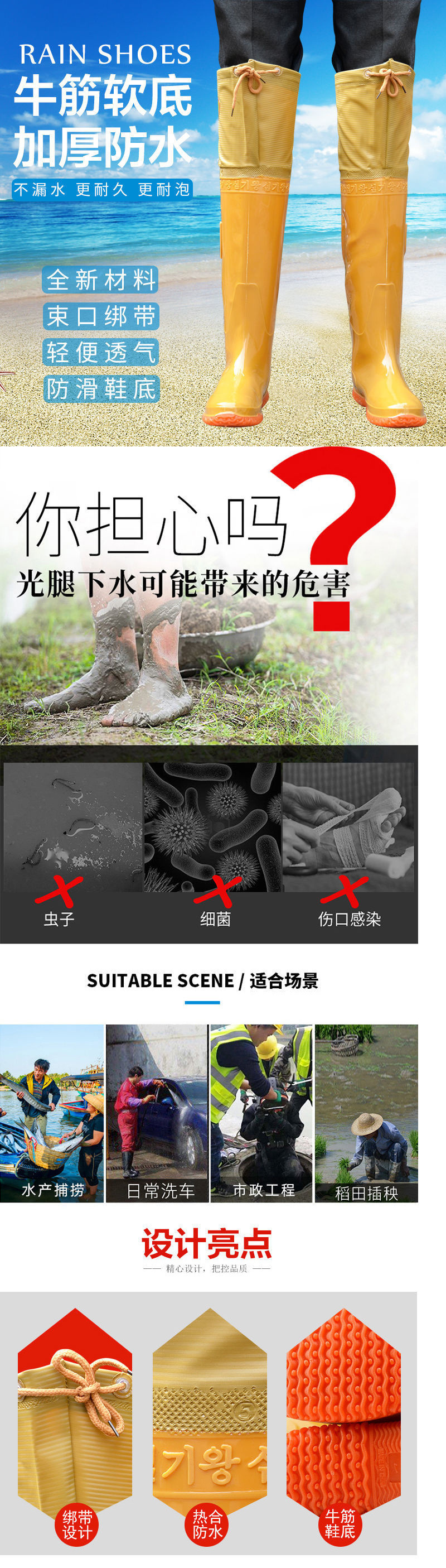 논에 들어가는 부츠, 부드러운 밑창 논신발, 논신발, 하이튜브 워터팬츠, 농지 미끄럼방지 부츠, 워터슈즈, 워터부츠, 방수 신제품
