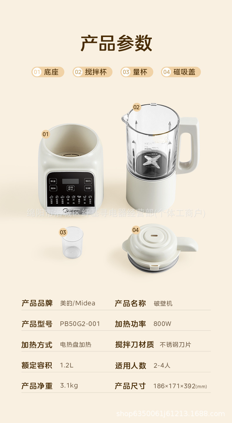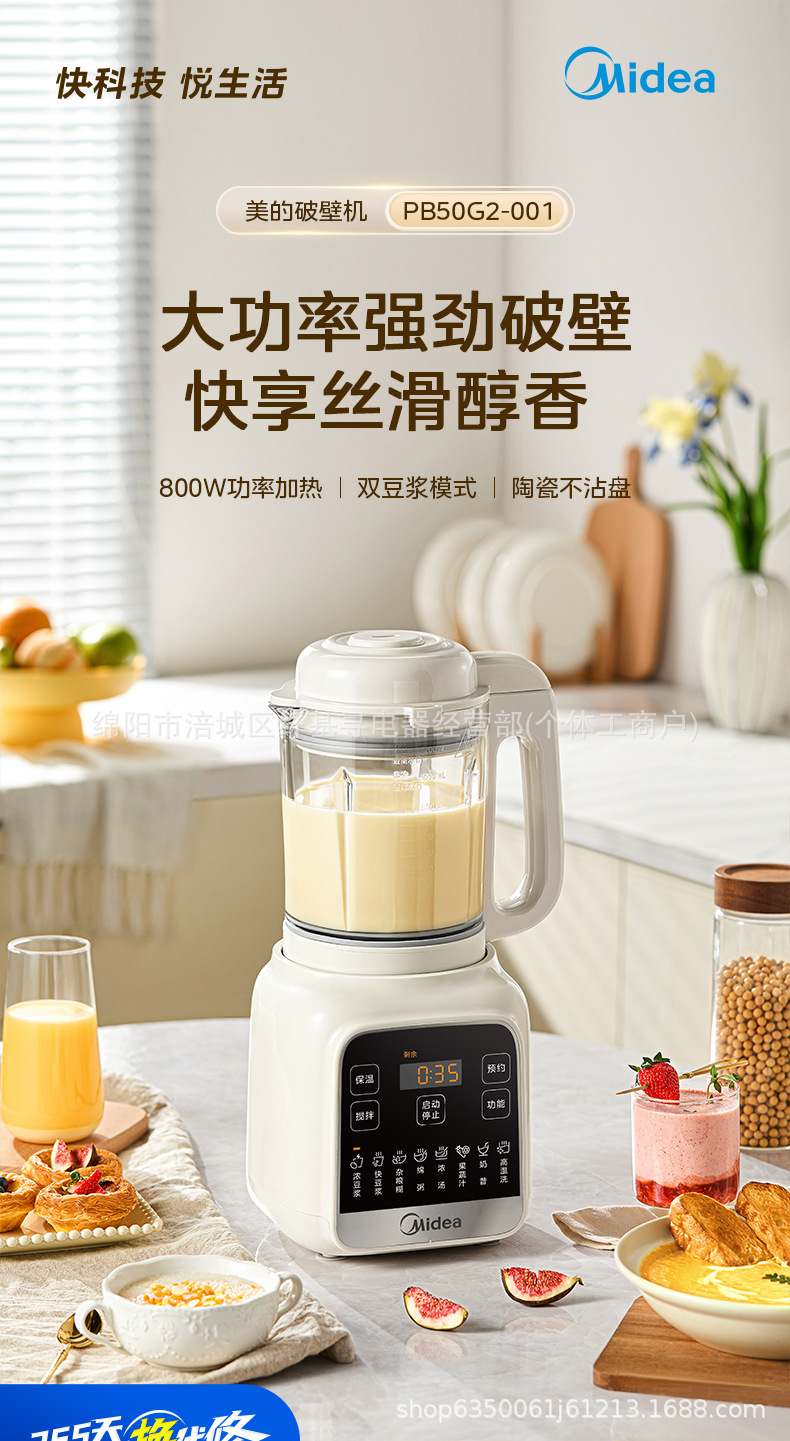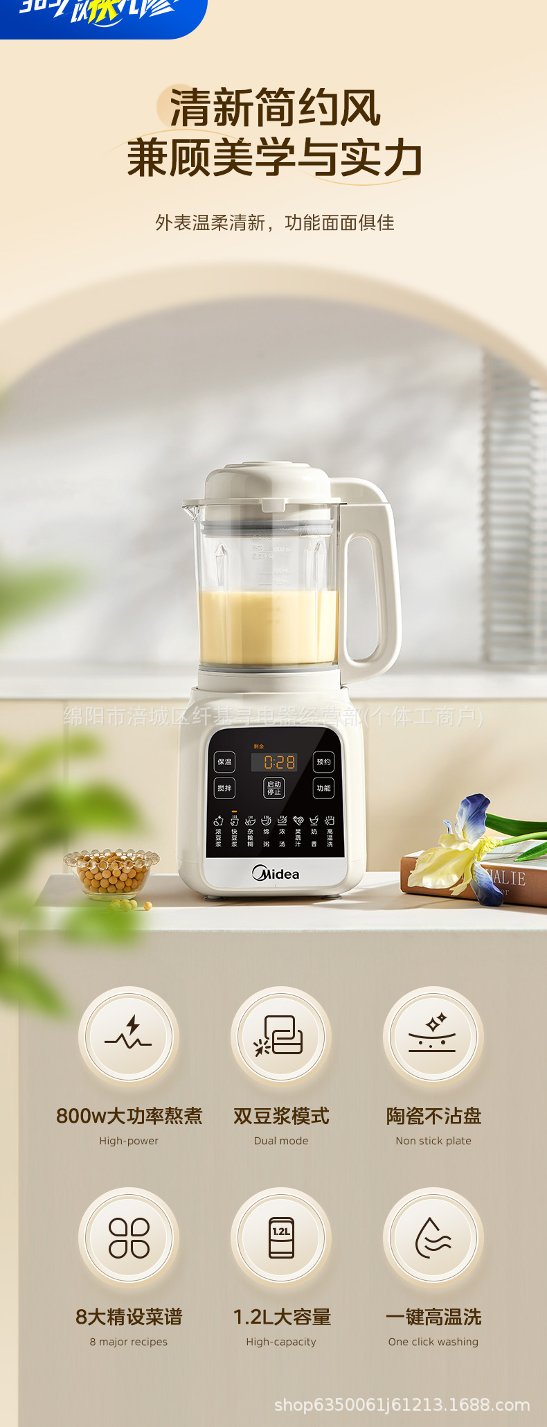 Midea 벽 파괴 기계 가정용 두유 기계 완전 자동 소형 주서기 조용한 저음 새로운 공식 플래그십 스토어 정품스토어 가기