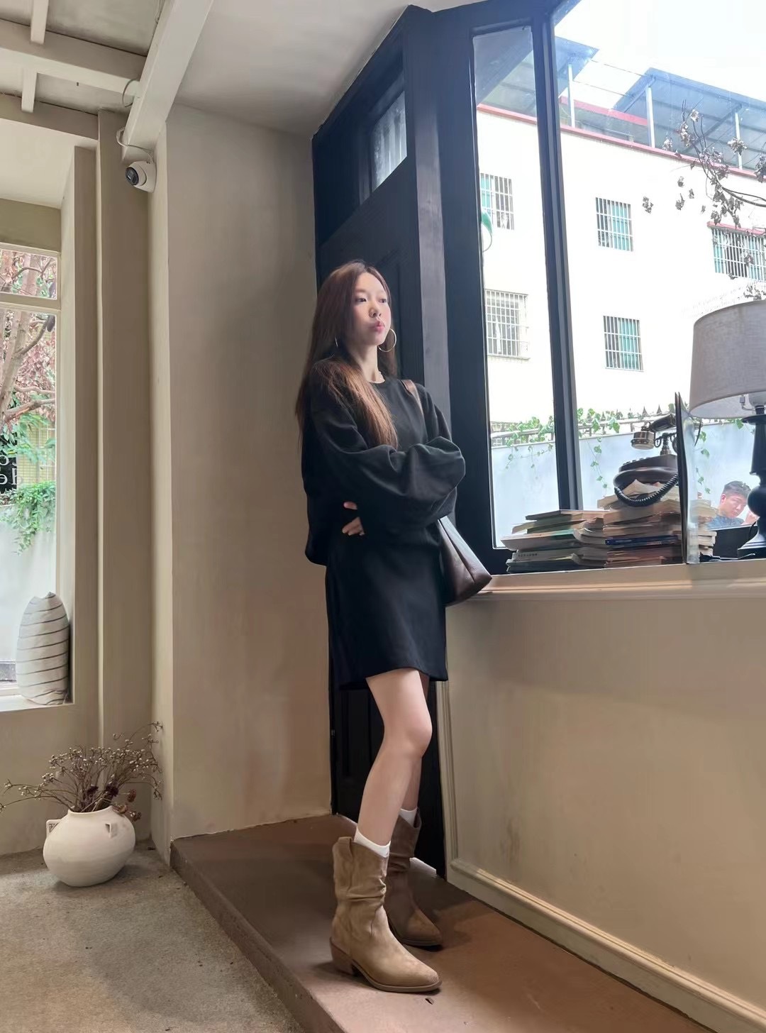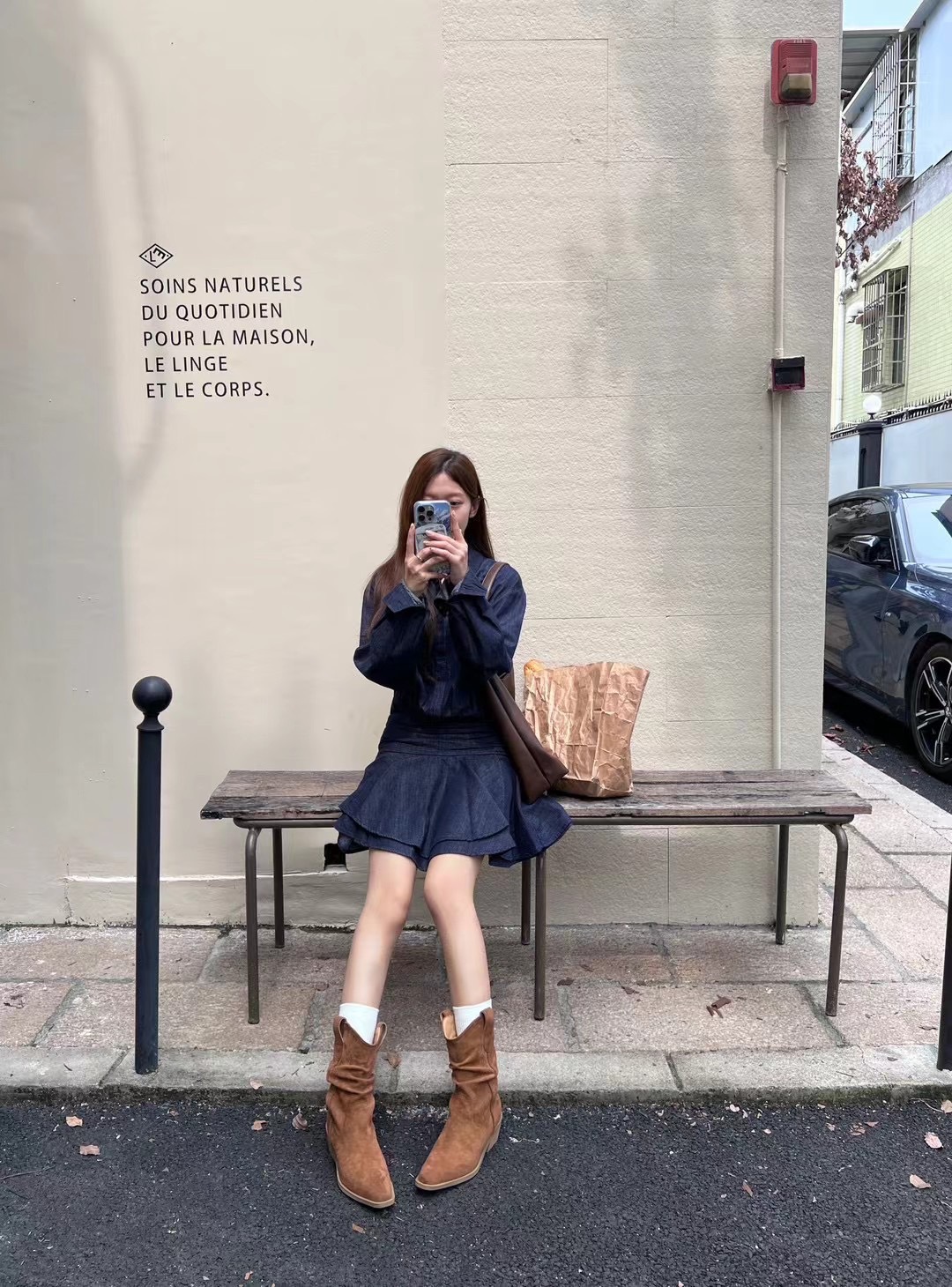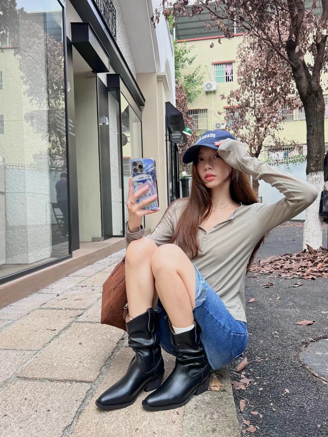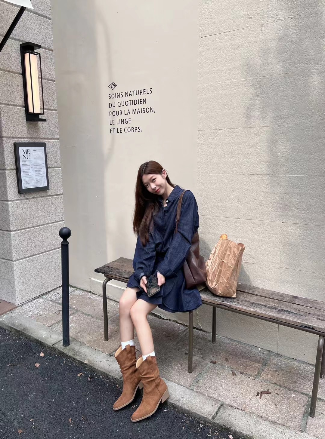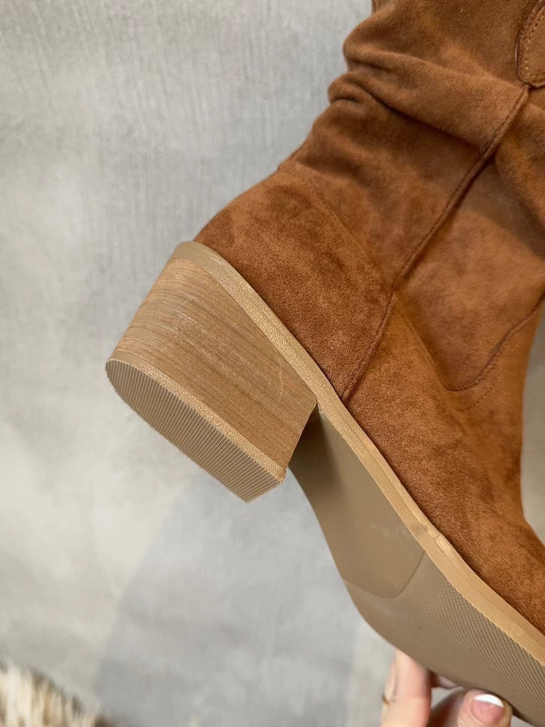 두꺼운 굽의 뾰족한 발가락 미드 부츠 주름진 힙 부츠 여성 2025 가을 겨울 새로운 스타일 복고풍 다용도 짧은 부츠 여성 마틴 부츠스토어 가기