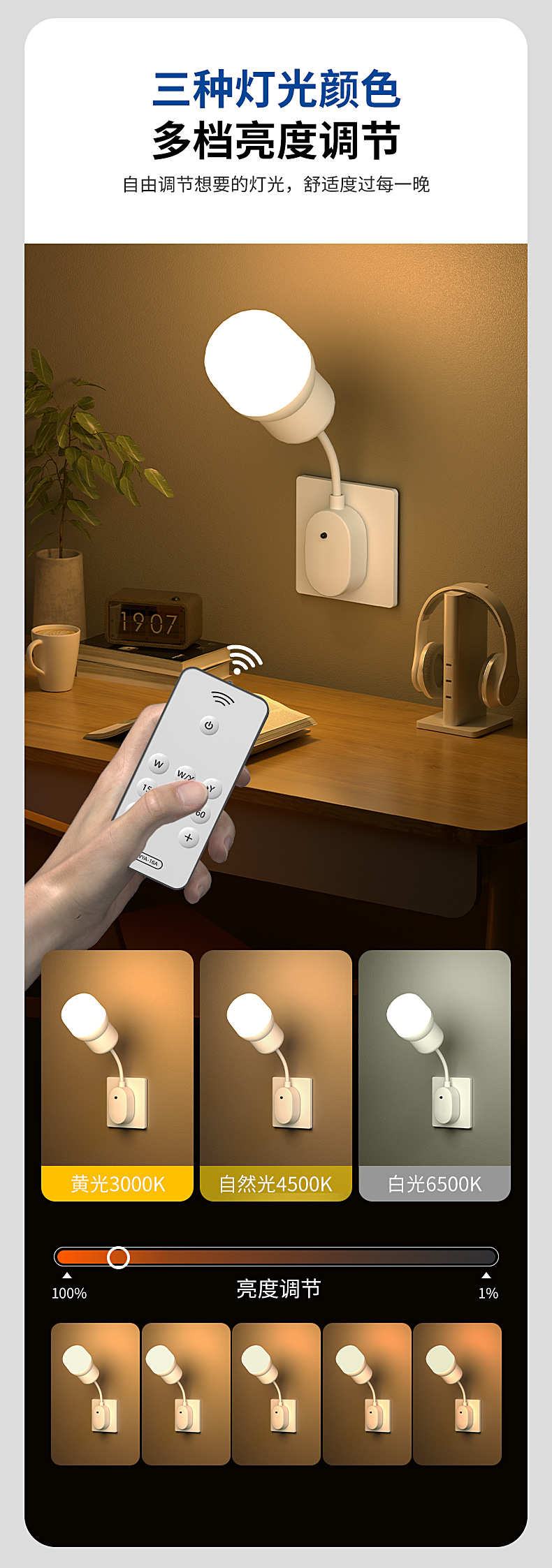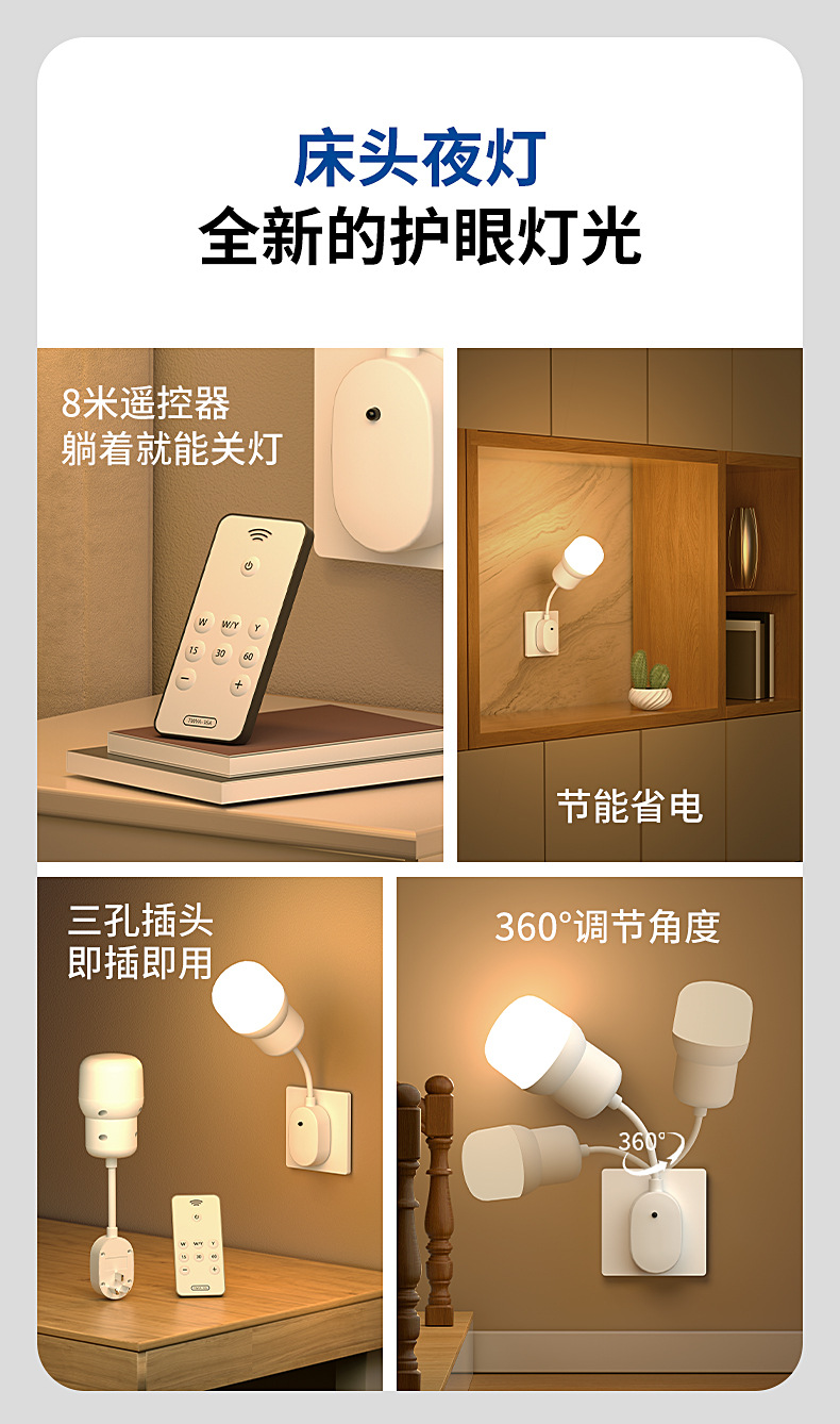 원격 제어 램프, 침대 옆 램프, 플러그인 센서 램프, 소켓 램프, 가정용 야간 조명, 침실 수면 램프, 노인 야간 조명