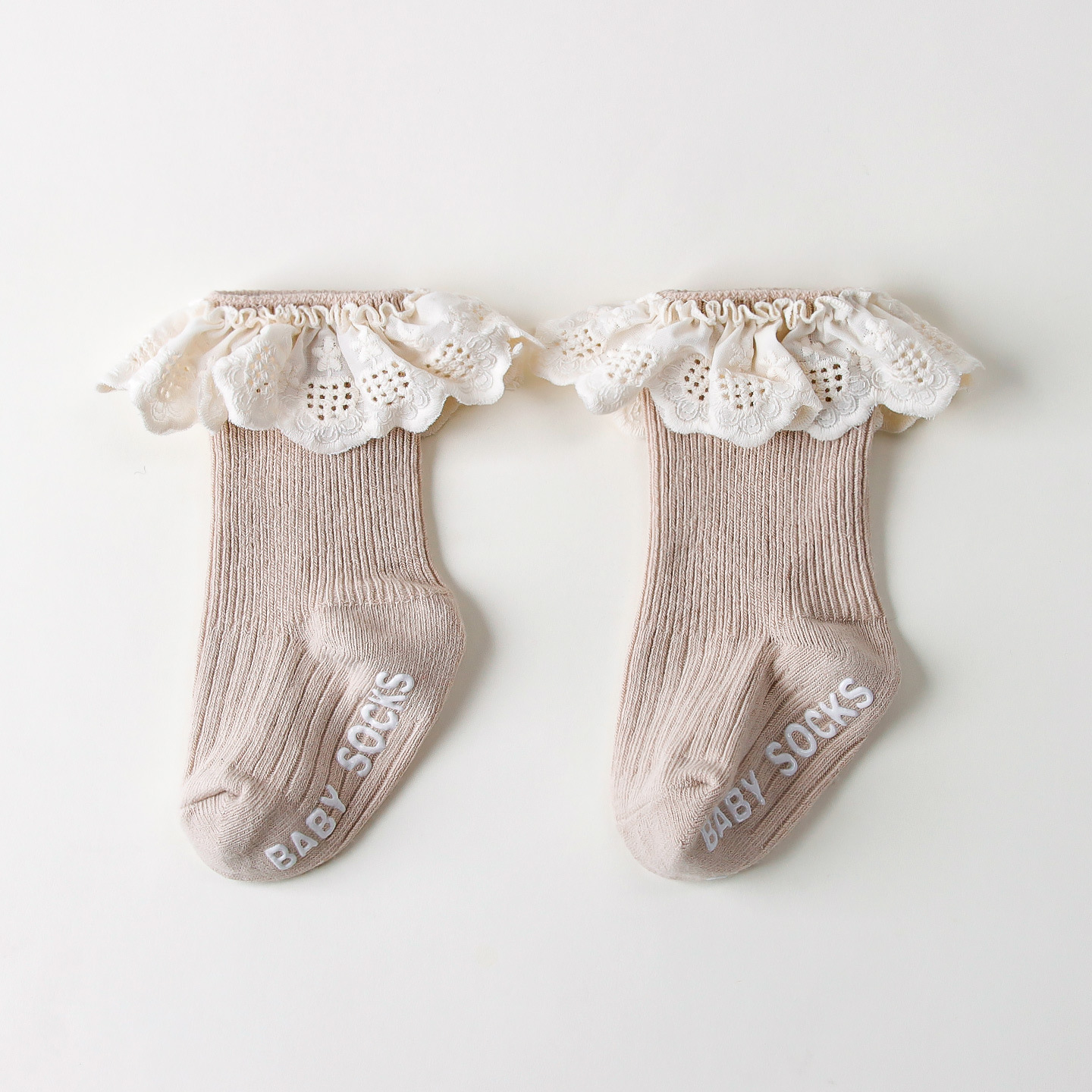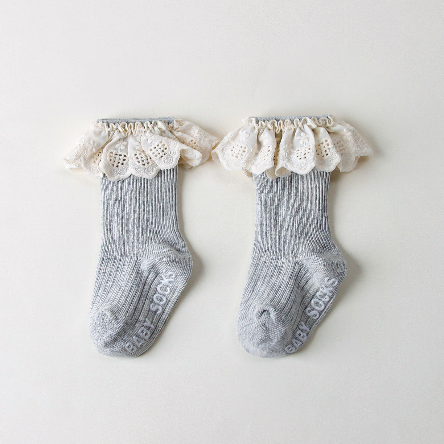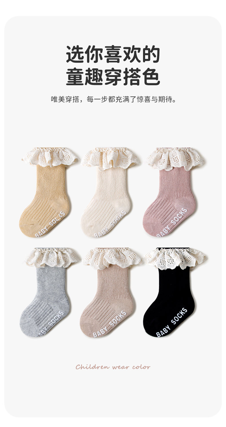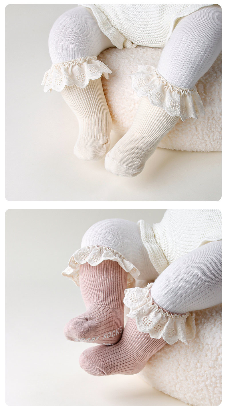어린이 종아리 양말 레이스 아기면 양말 봄과 가을 새로운 스타일 소녀 공주 양말 아기 유아 점선 미끄럼 방지 양말스토어 가기