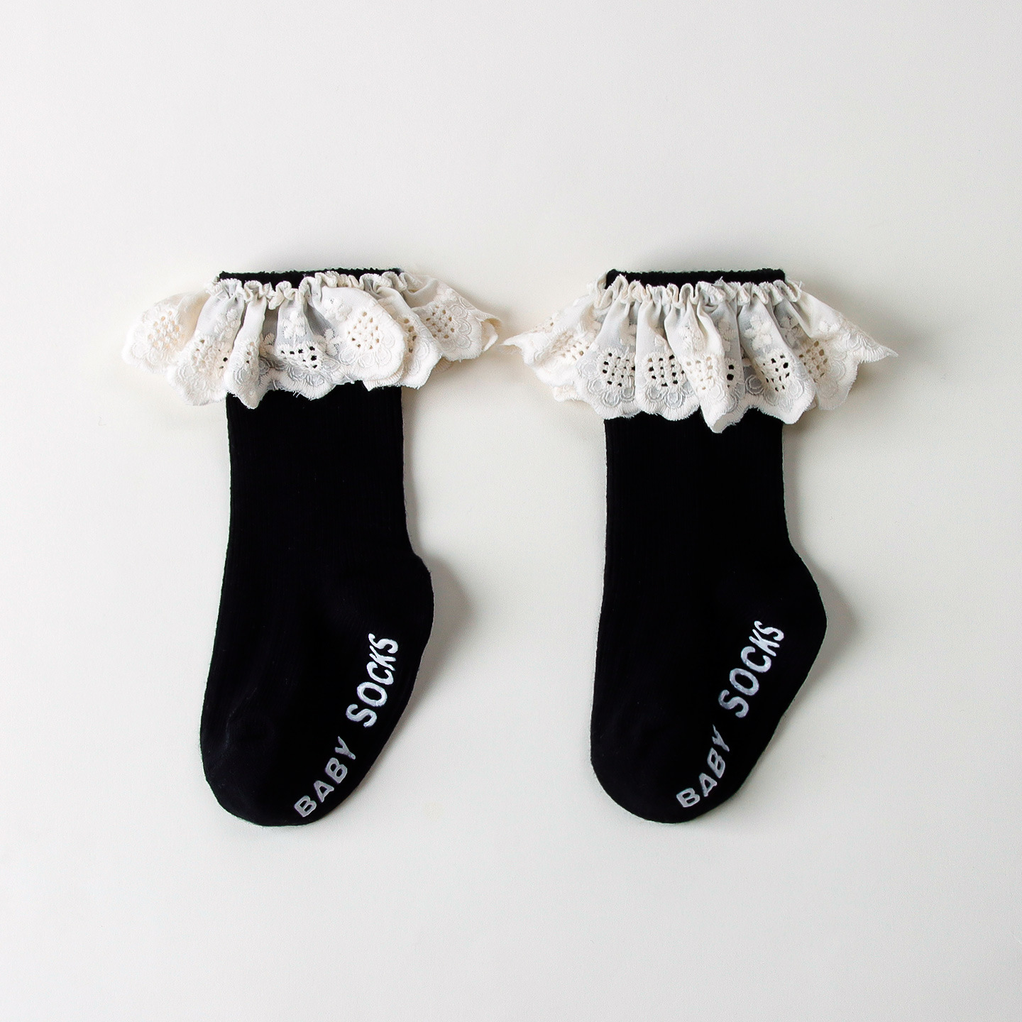 어린이 종아리 양말 레이스 아기면 양말 봄과 가을 새로운 스타일 소녀 공주 양말 아기 유아 점선 미끄럼 방지 양말