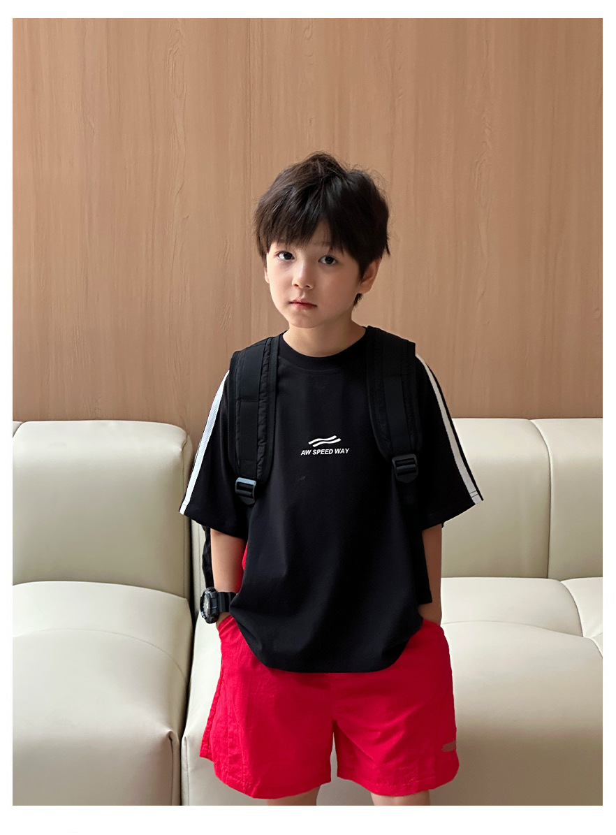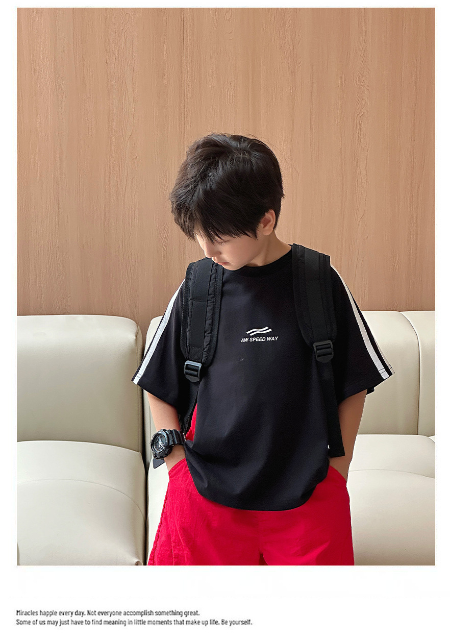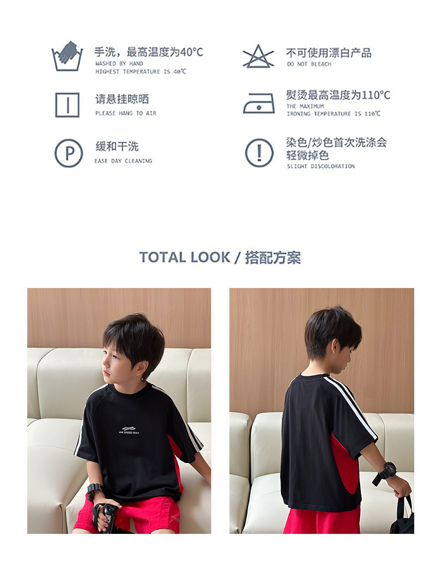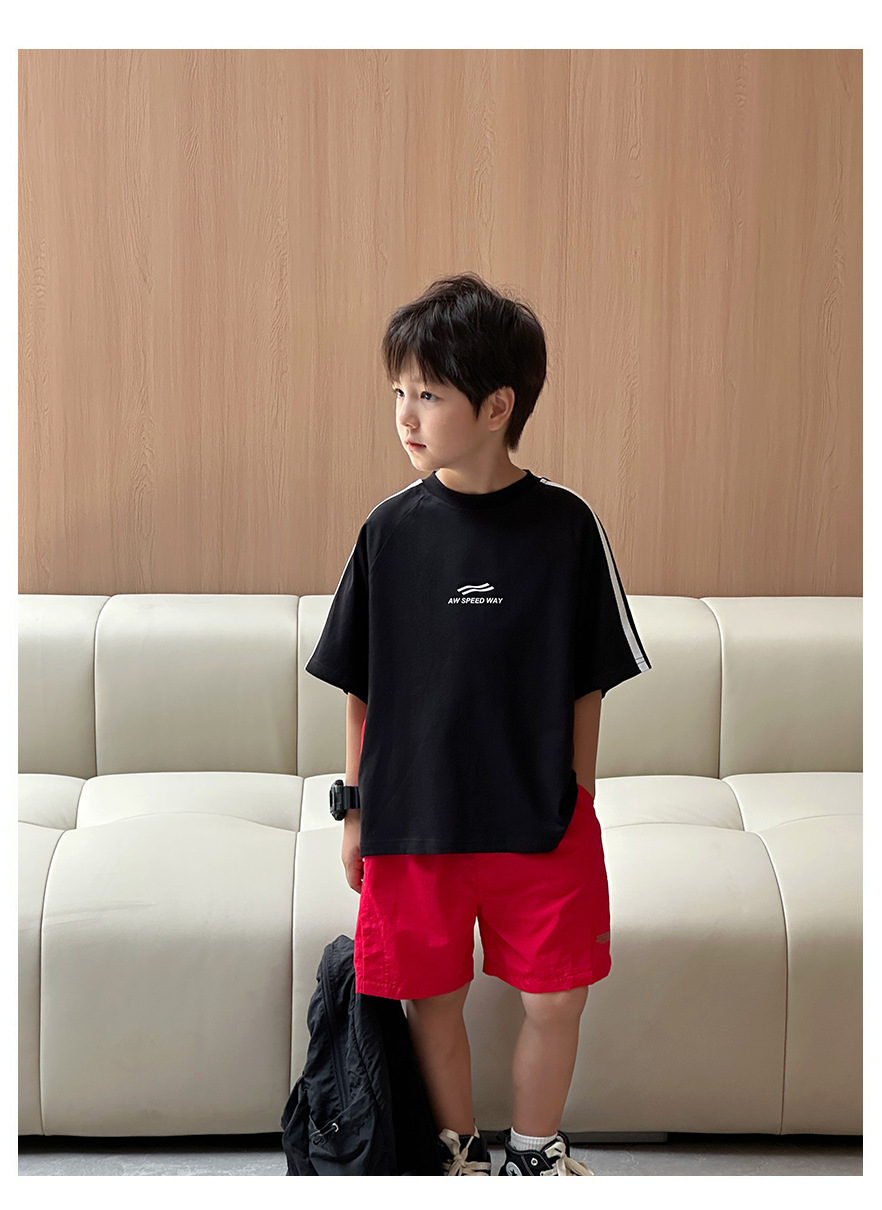 아메리칸 스트리트 디자인 대비 색상 소년 반팔 티셔츠 아동 여름 느슨한 레이싱 슈트 캐주얼 라운드 넥 탑 트렌디스토어 가기