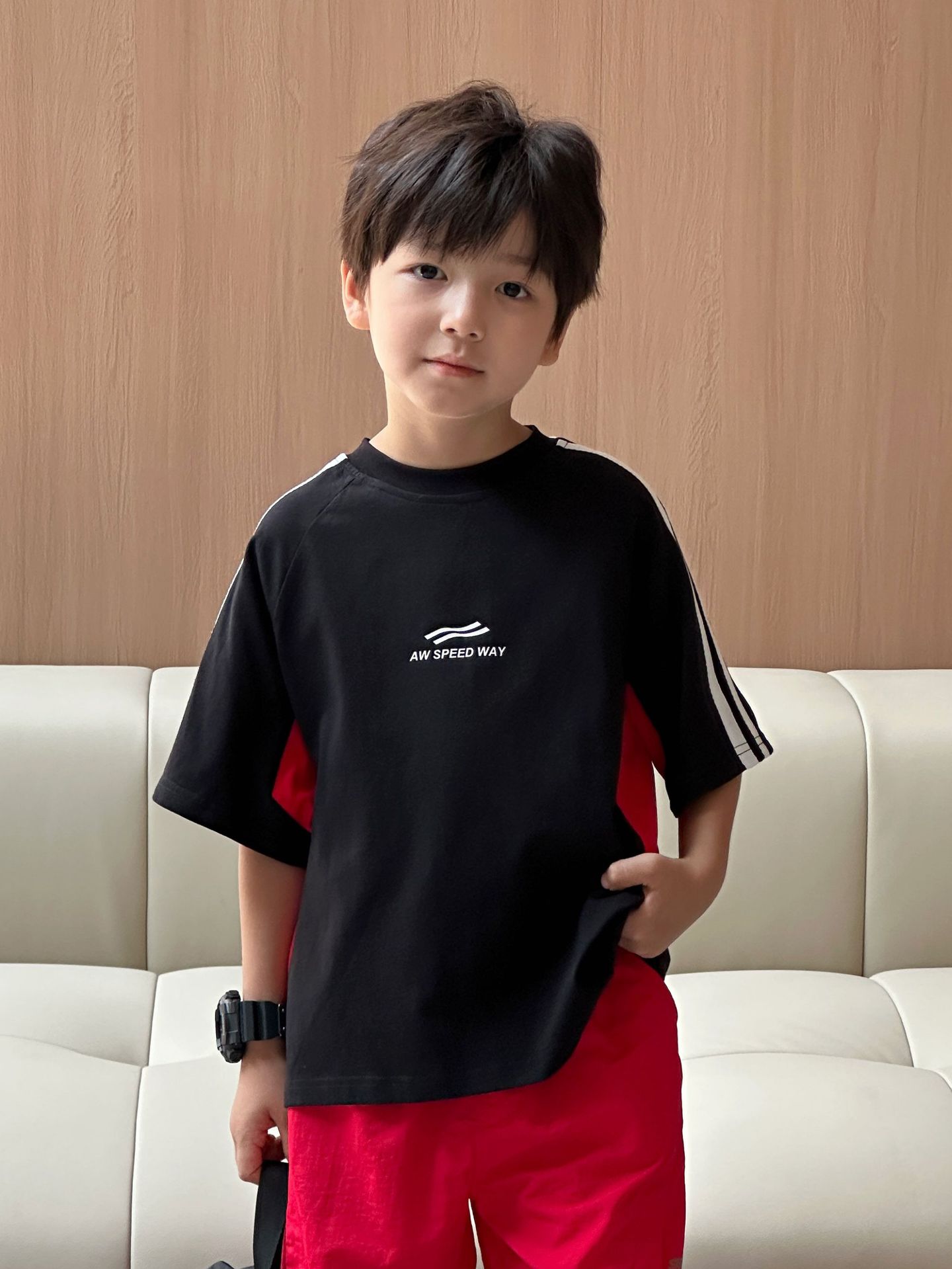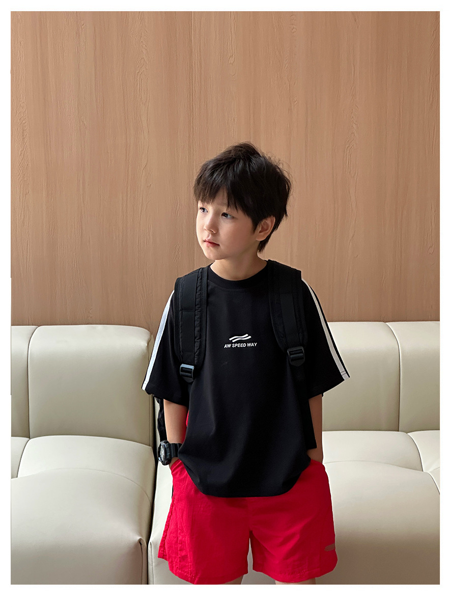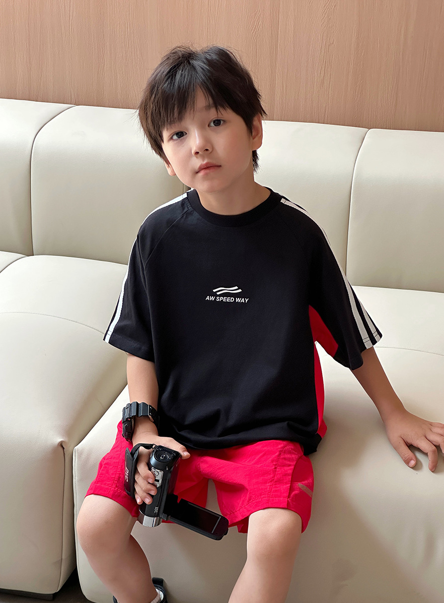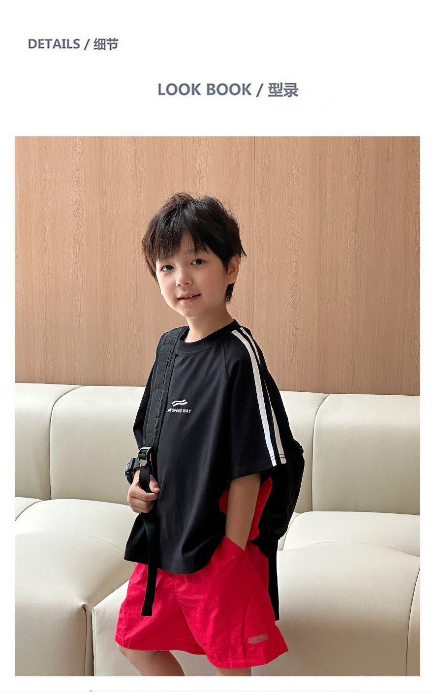 아메리칸 스트리트 디자인 대비 색상 소년 반팔 티셔츠 아동 여름 느슨한 레이싱 슈트 캐주얼 라운드 넥 탑 트렌디