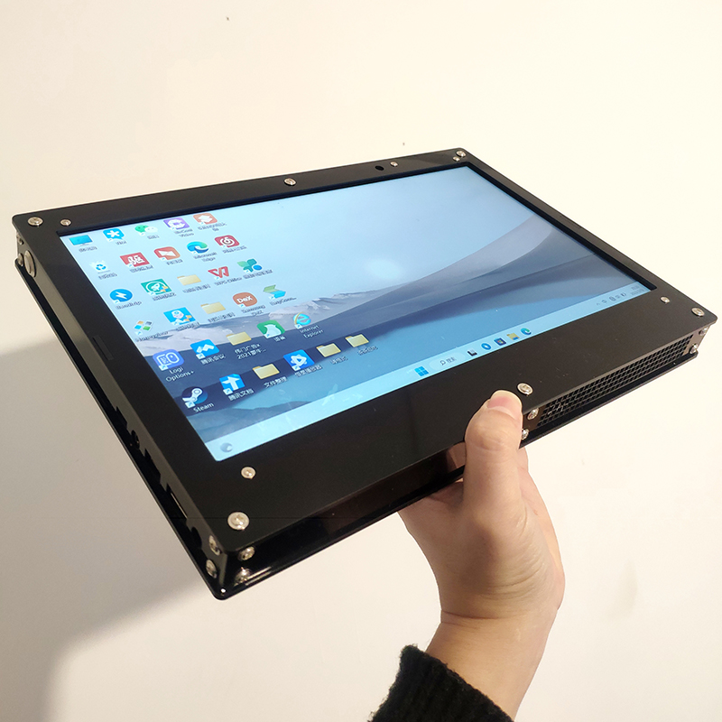 터치 스크린이 포함된 노트북을 올인원으로 개조하고 아크릴 섀시를 투명/검정색 컴퓨터 메인 섀시로 개조하여 DIY 조립