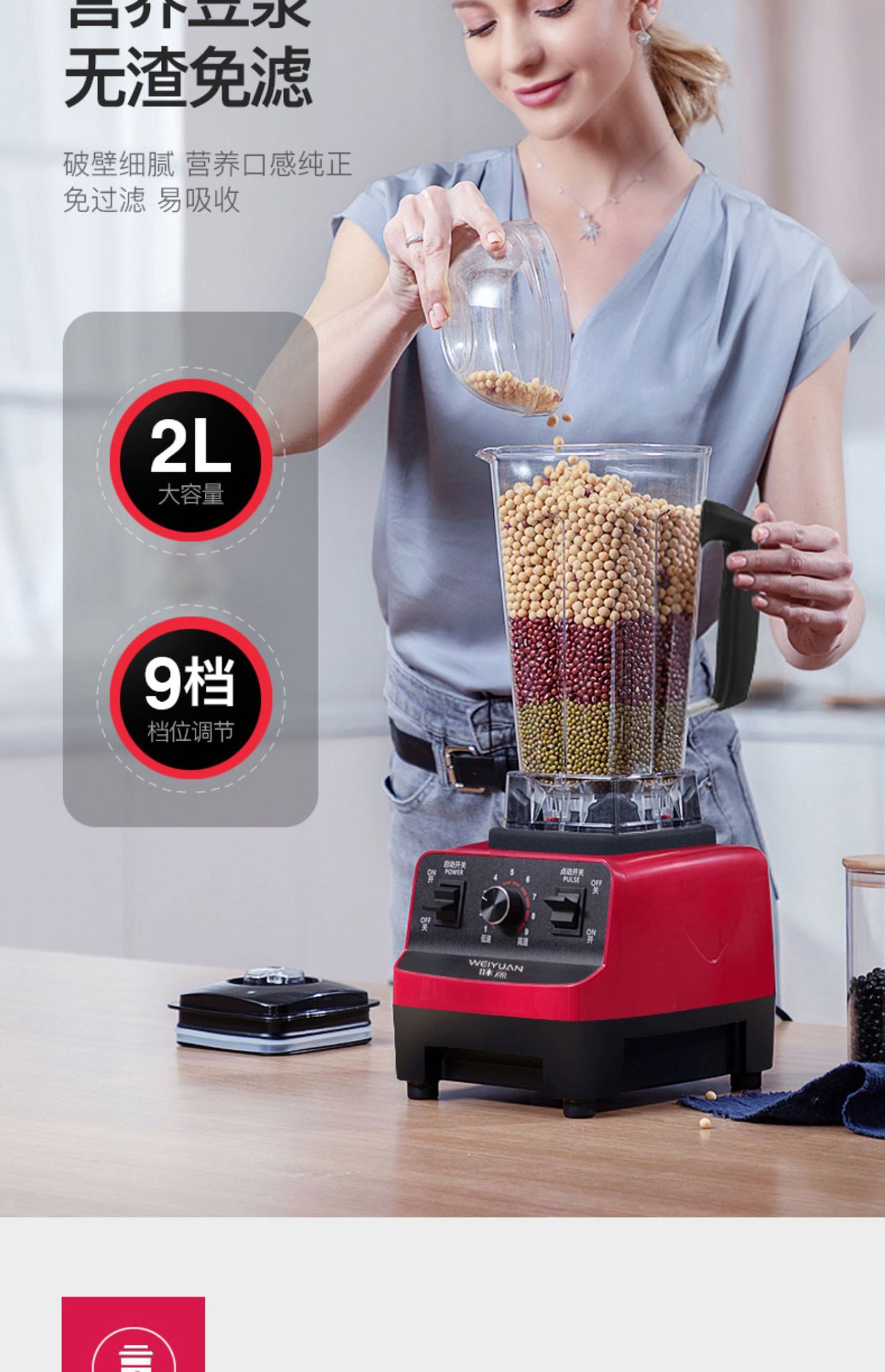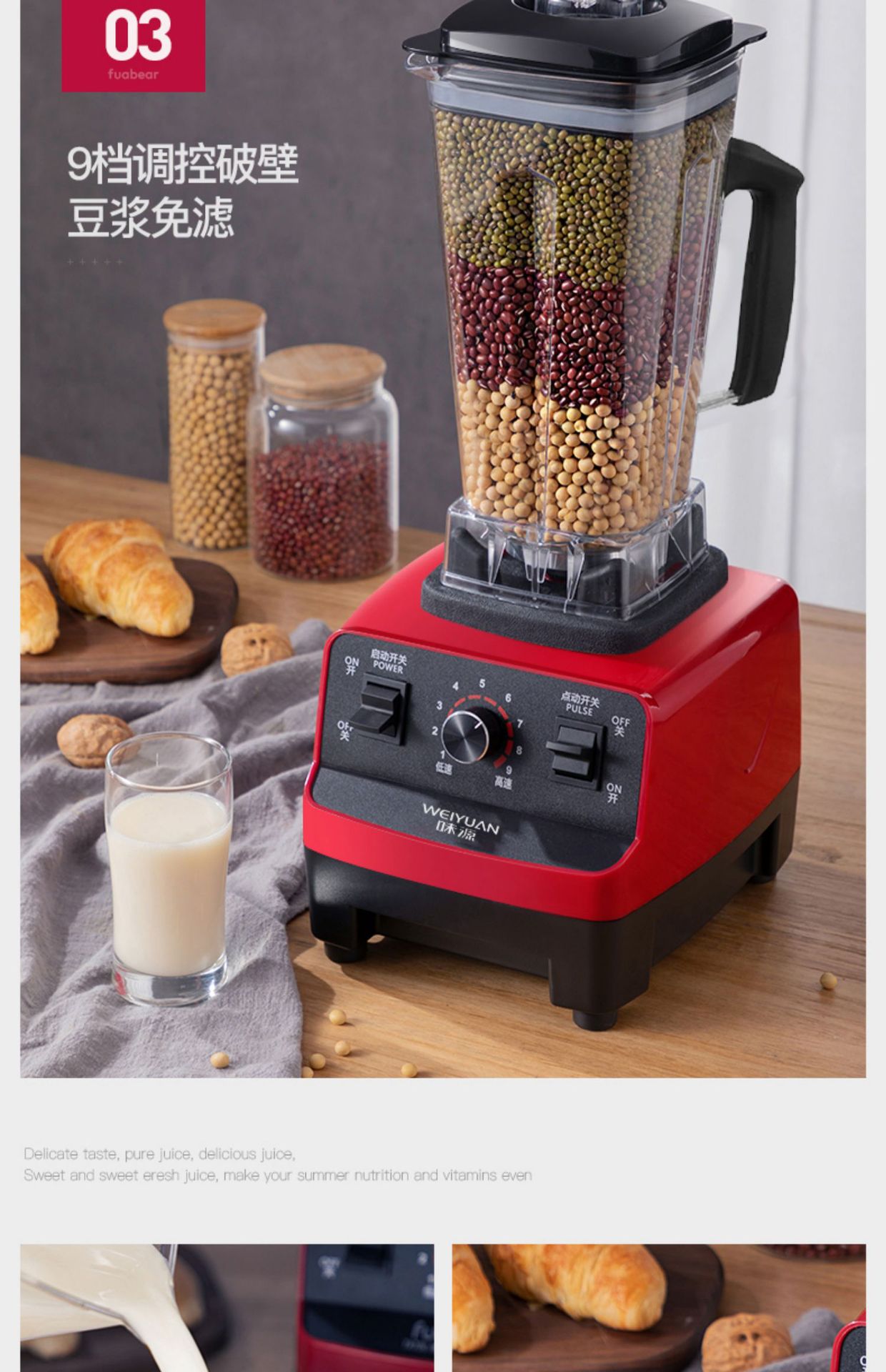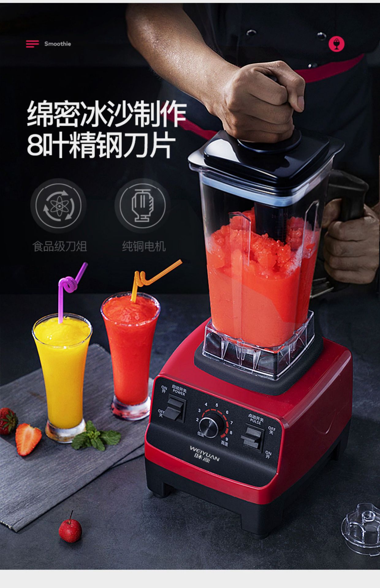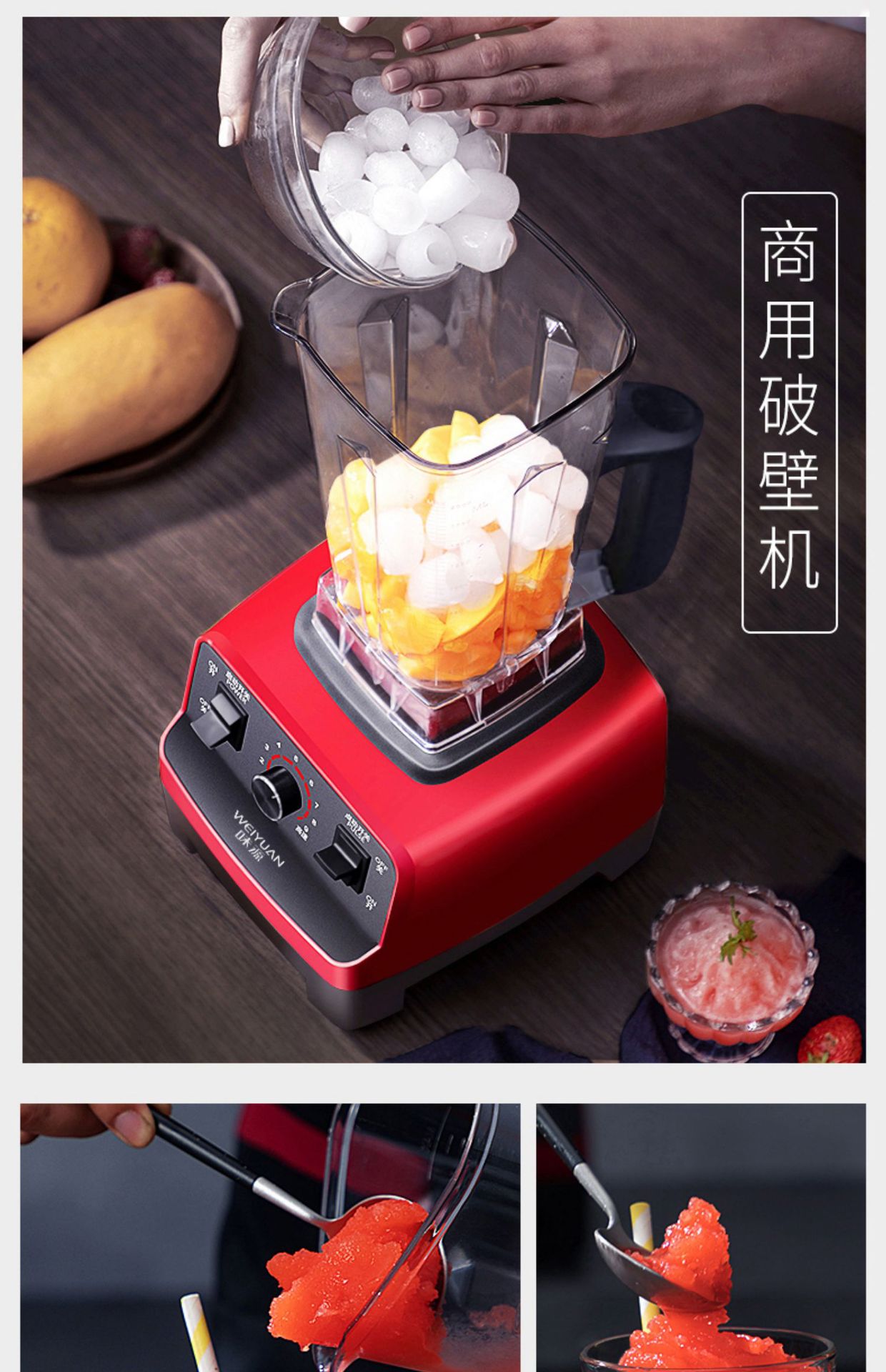 독일 Weiyuan 상업용 벽 파괴 기계 밀크 티 샵 고출력 스무디 가정용 주스 아침 식사 가게 두유 스무디 기계
