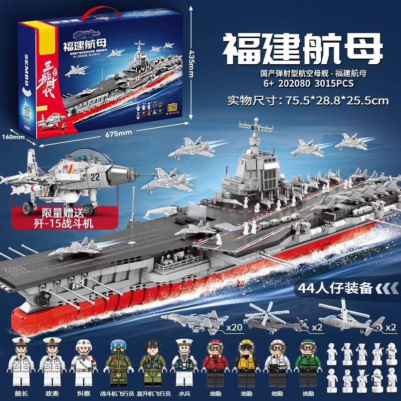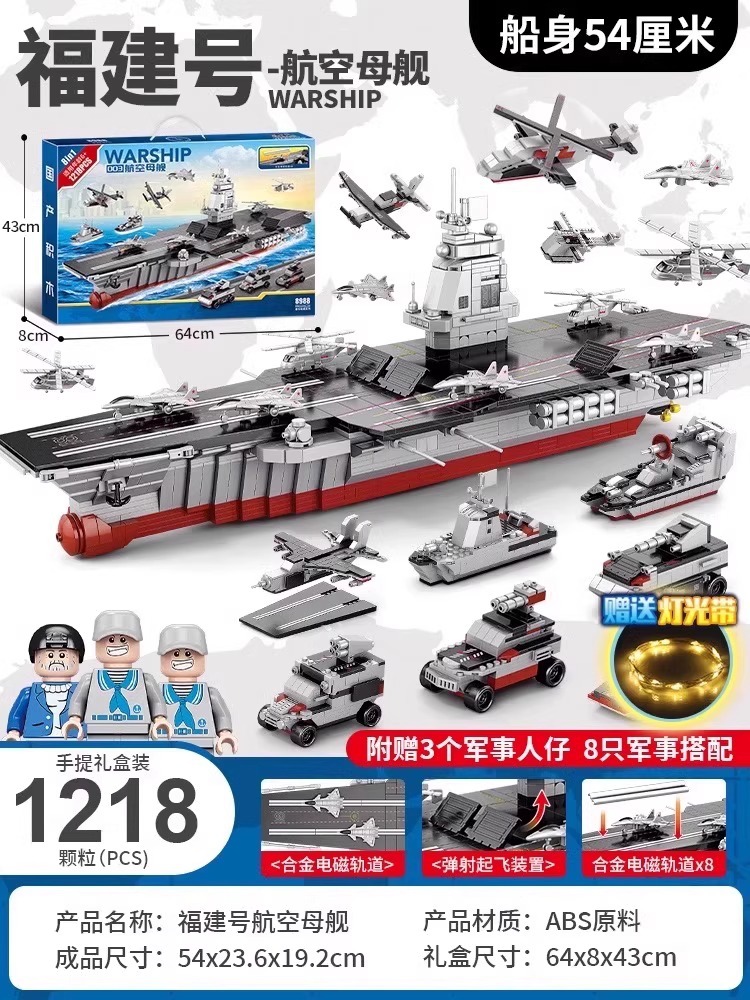 • [선물 상자] 96cm 고급 대형 복건 항공모함 + 미니피겨 10개 + 다양한 전투기 장비 + 조명