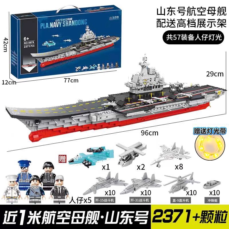 • [선물 상자] 93cm 대형 산둥 항공모함 + 미니피겨 5개 + 다양한 전투기 장비 + 조명