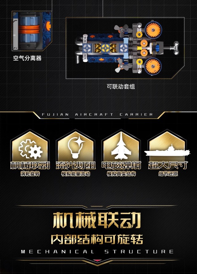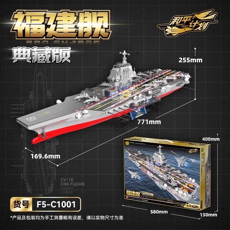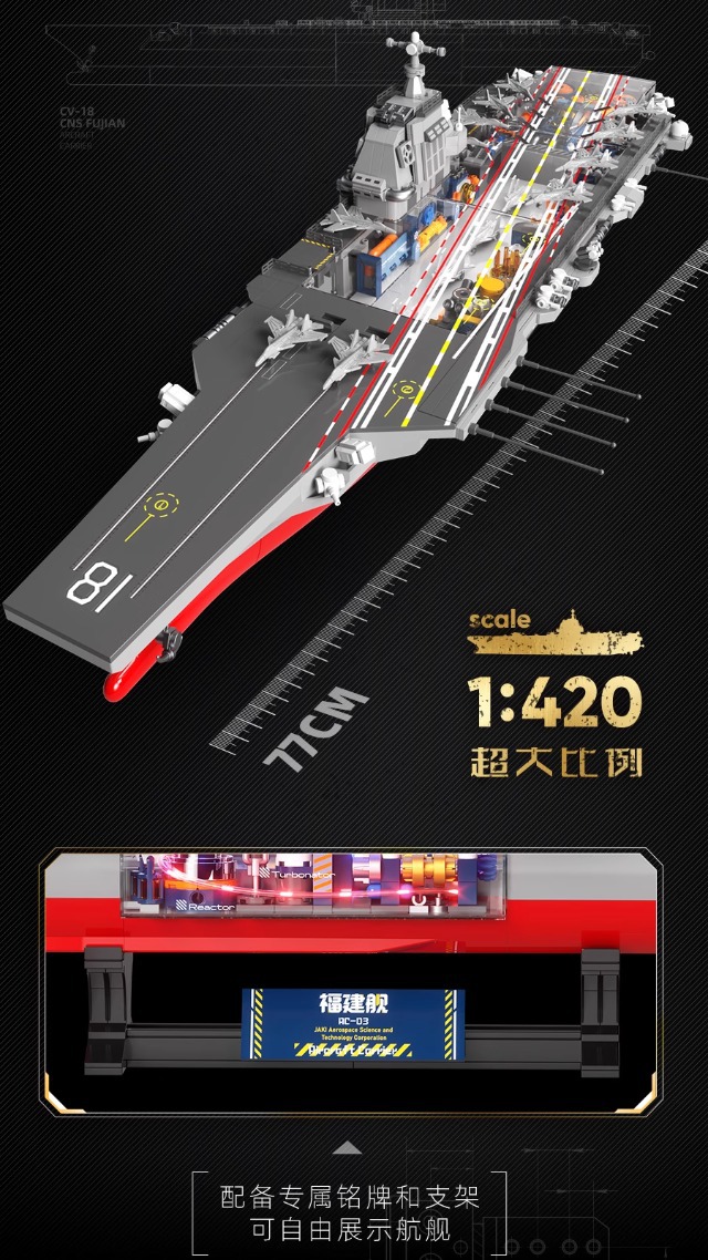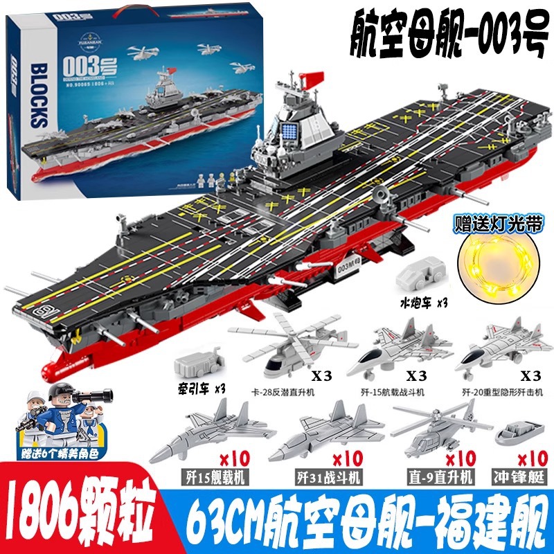 • [선물 상자] 75cm 대형 복건 항공모함 + 방출 이륙 장치 + 합금 전자기 트랙 + 미니피겨 3개 + 전투기 + 조명