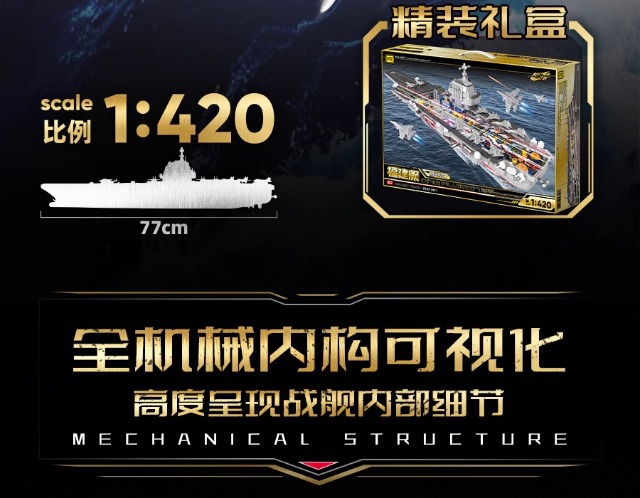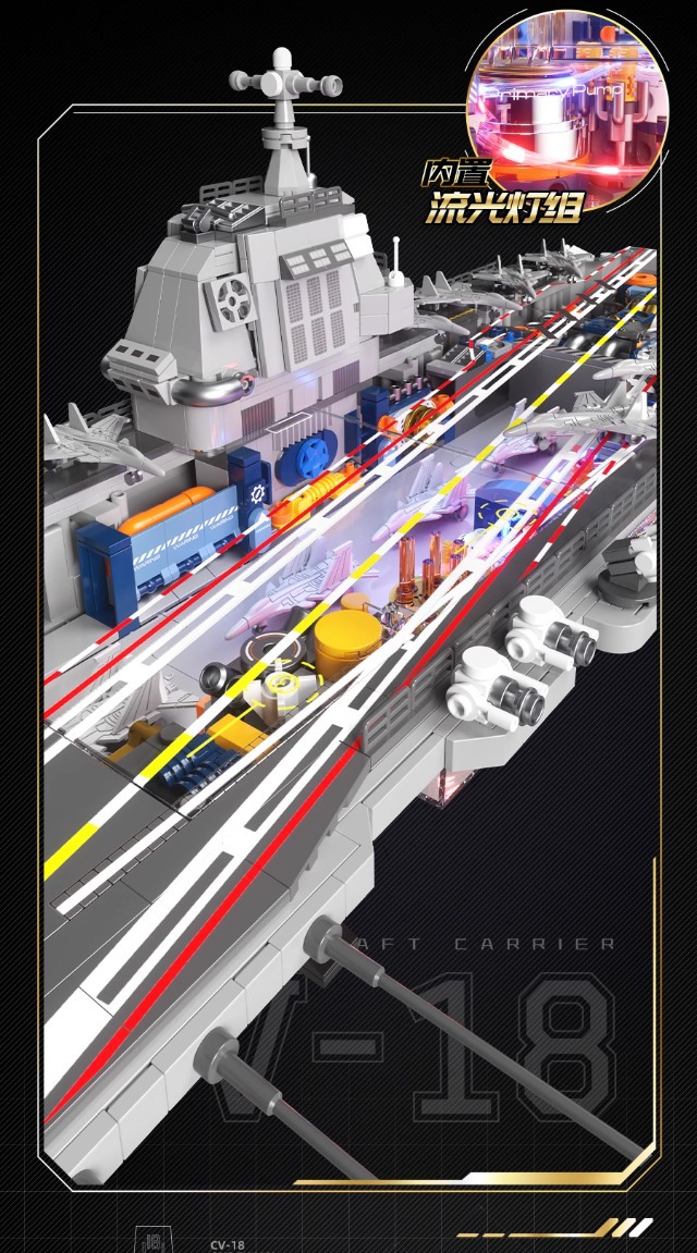 • [선물 상자] 92cm 럭셔리 대형 산동 항공모함 + 슈퍼 미니피겨 장비 + 파일럿 북 + 조명