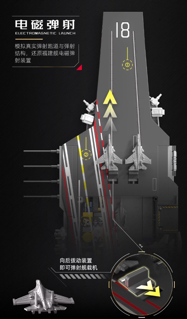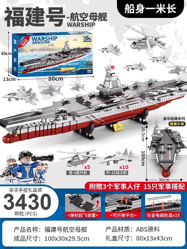 • [선물 상자] 100cm 대형 복건 항공모함 + 이젝션 이륙 장치 + 합금 전자기 트랙 + 리프팅 플랫폼 + 미니피겨 3개 + 전투기 + 조명