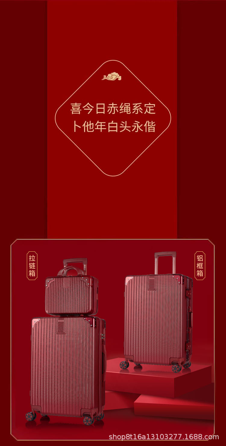 공장 직접 판매 SF Express 수하물 결혼식 축하 기념품 배송 와인 레드 여행 가방 다기능 결혼 선물