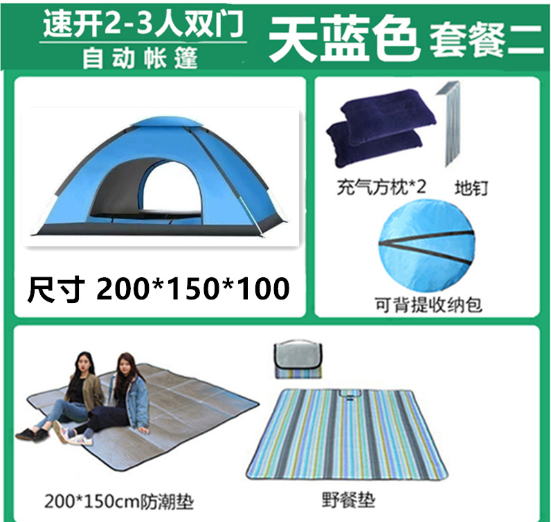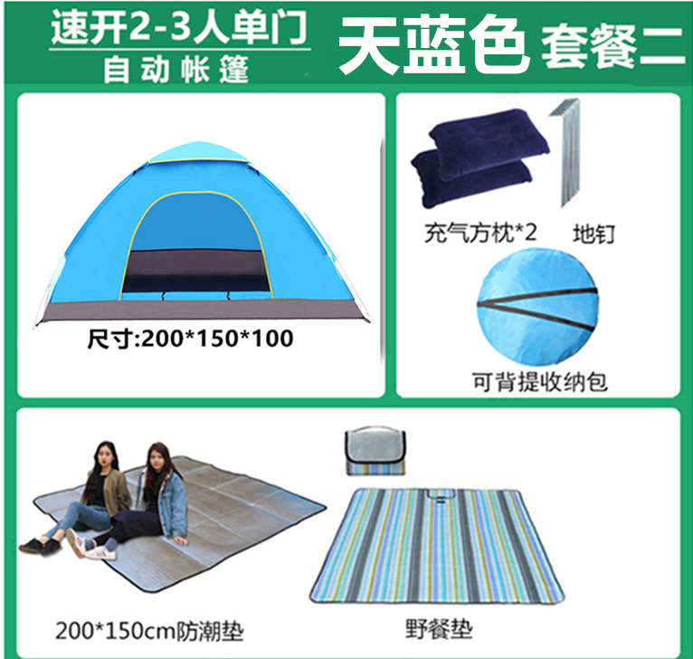 3~4인용 야외 텐트, 완전 자동 캠핑, 2인용, 2인용, 야외용 두꺼운 방수 속성 텐트스토어 가기