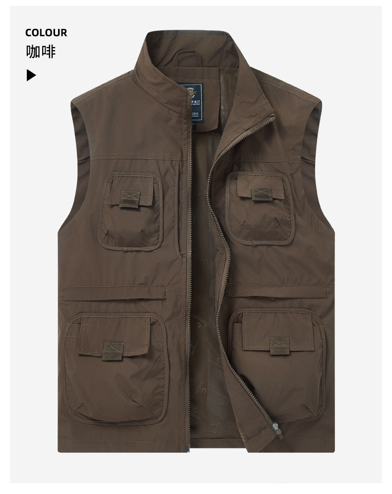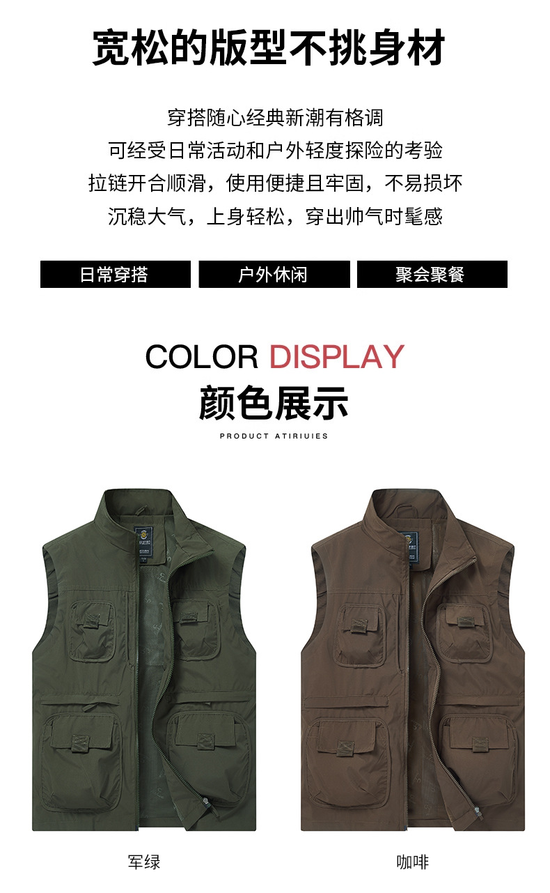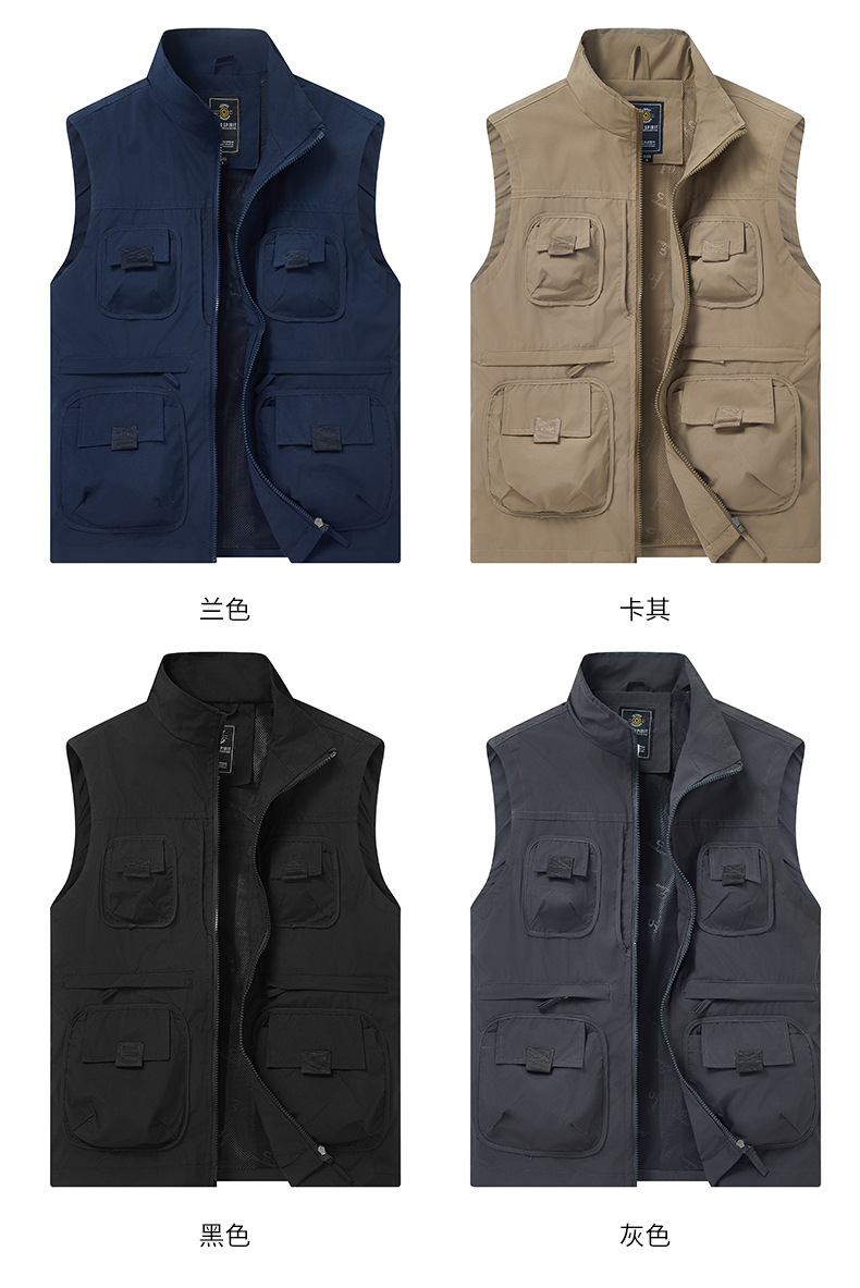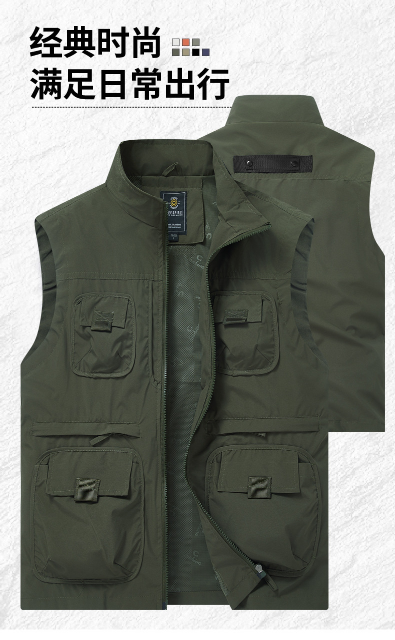 2025 새로운 가을 야외 멀티 포켓 사진 낚시 레저 등산 스탠드 칼라 조끼 대형 재킷 국경 간 특별스토어 가기