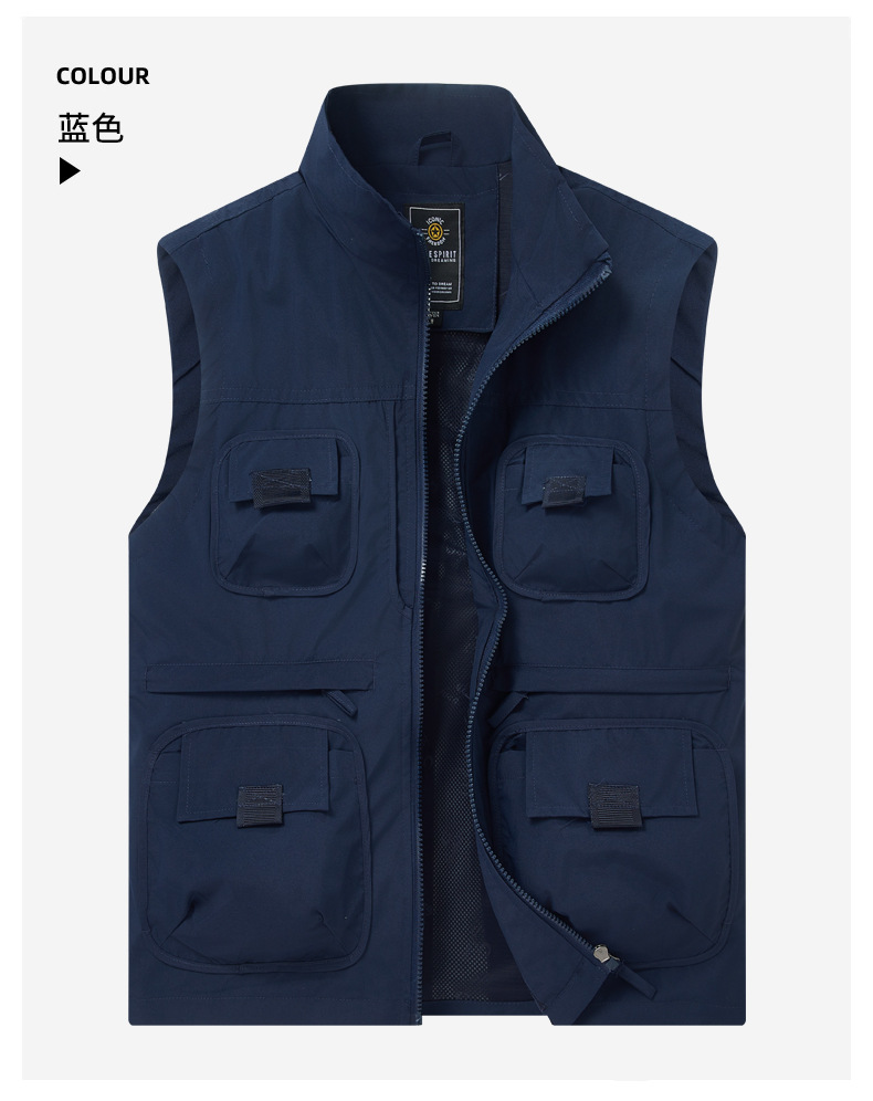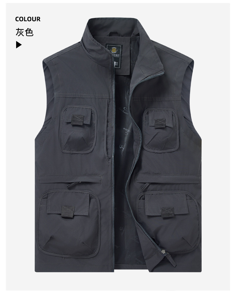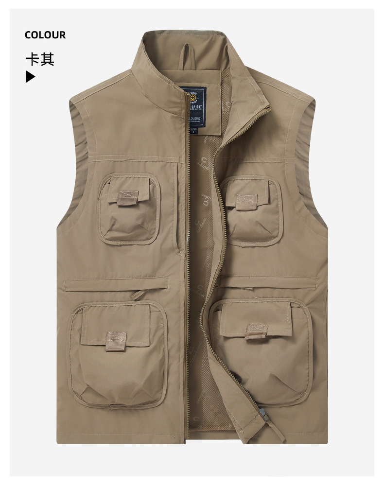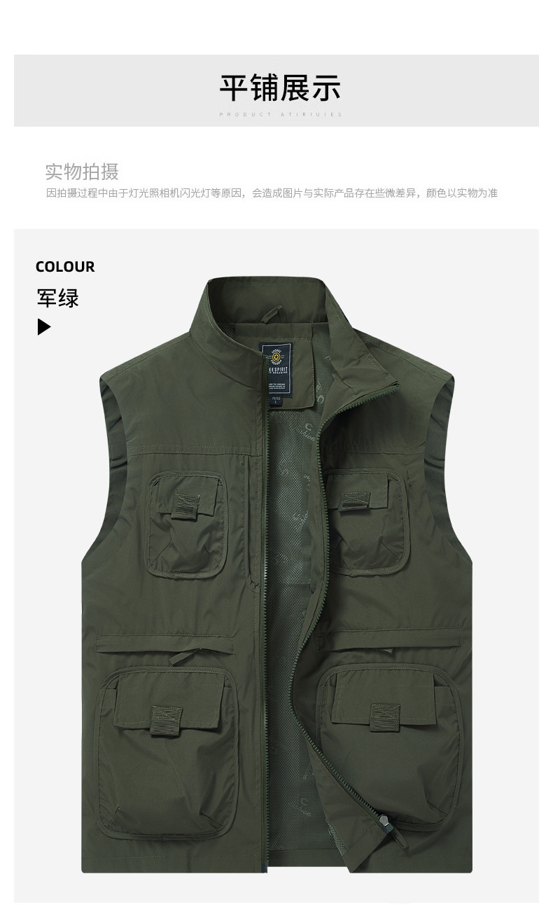 2025 새로운 가을 야외 멀티 포켓 사진 낚시 레저 등산 스탠드 칼라 조끼 대형 재킷 국경 간 특별스토어 가기