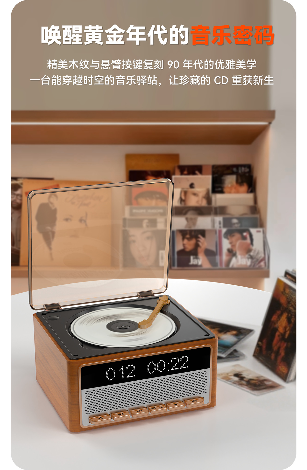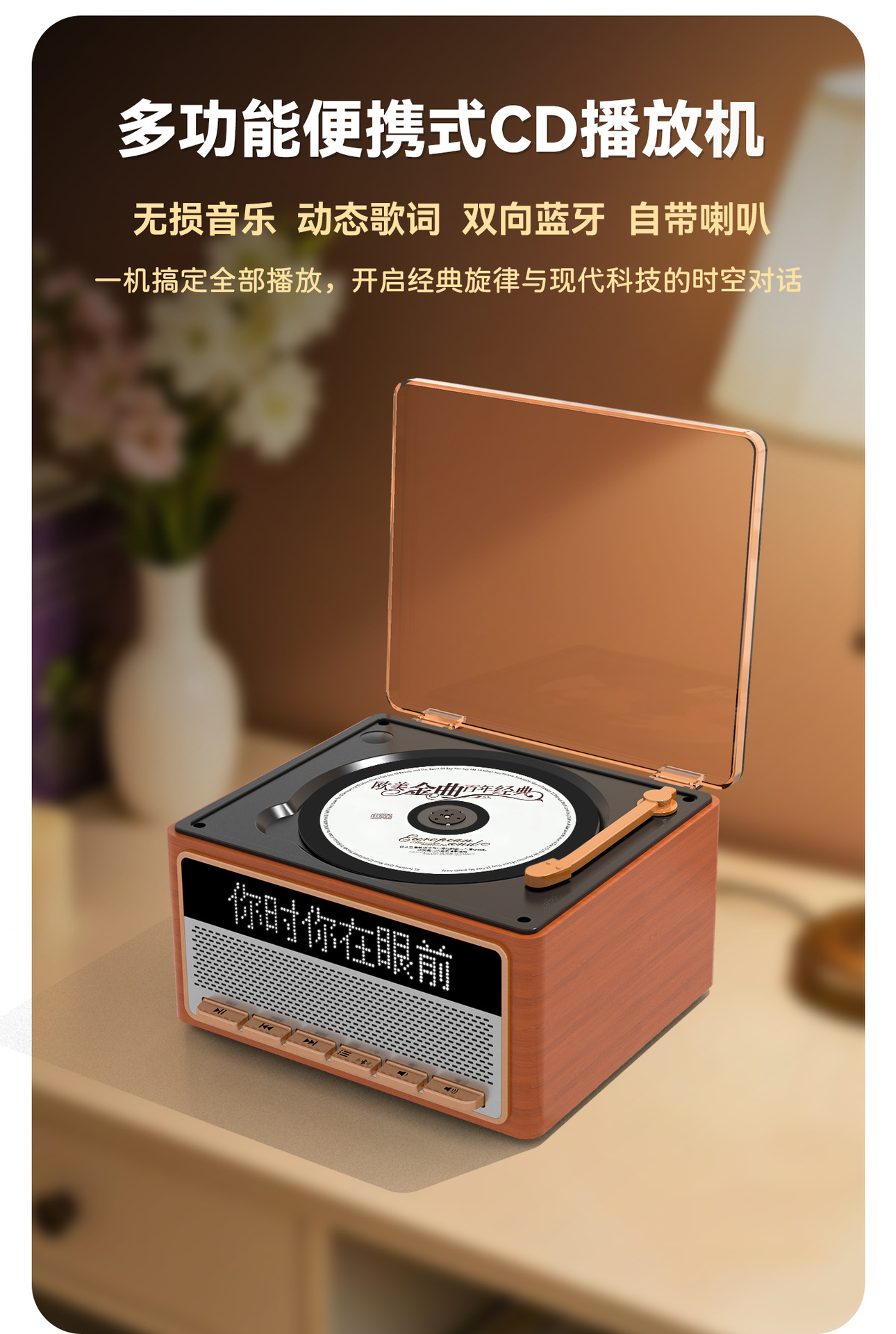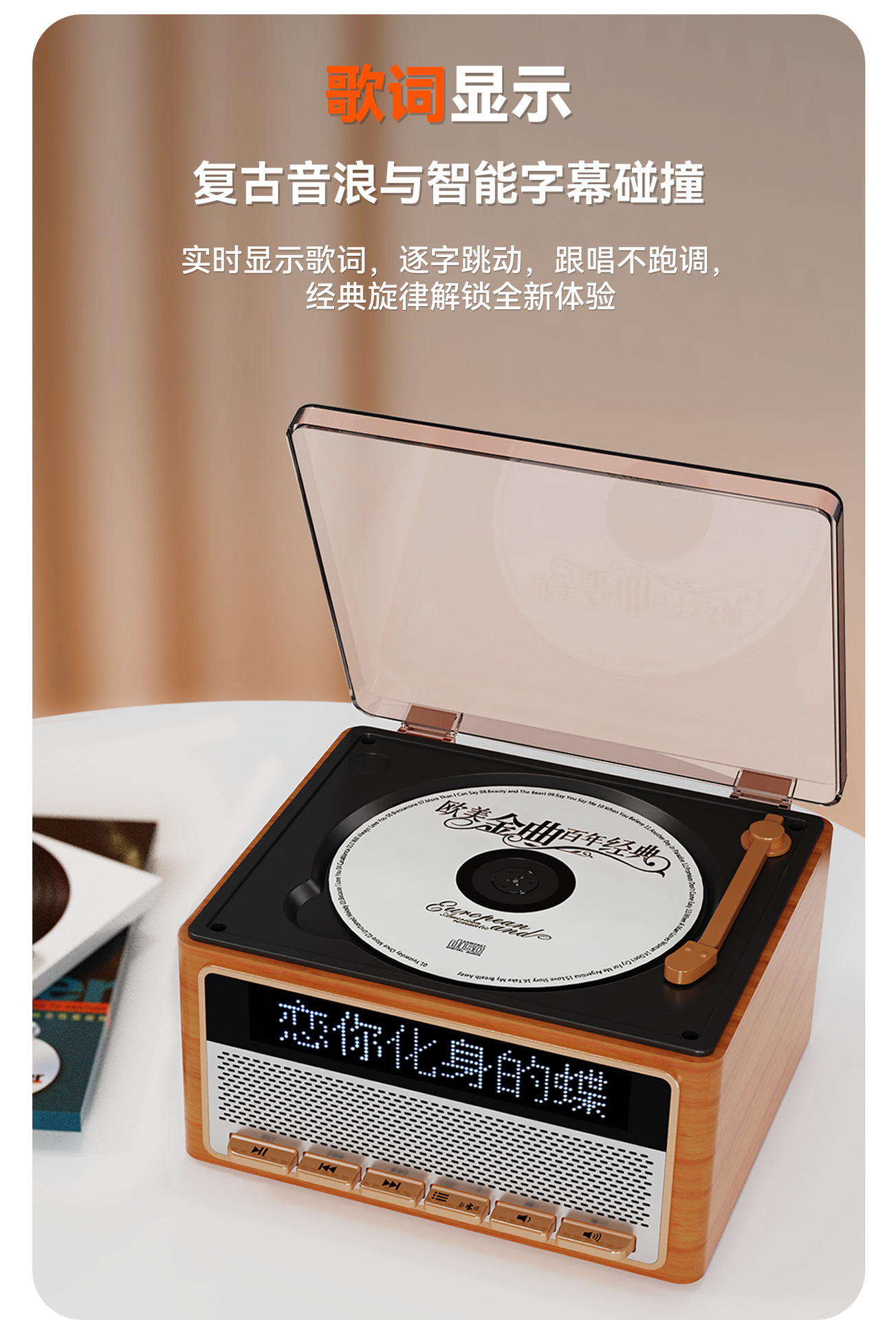 SBOLLO CD 플레이어 음악 오디오 플레이어 레트로 고음질 휴대용 충전식 가사 표시스토어 가기