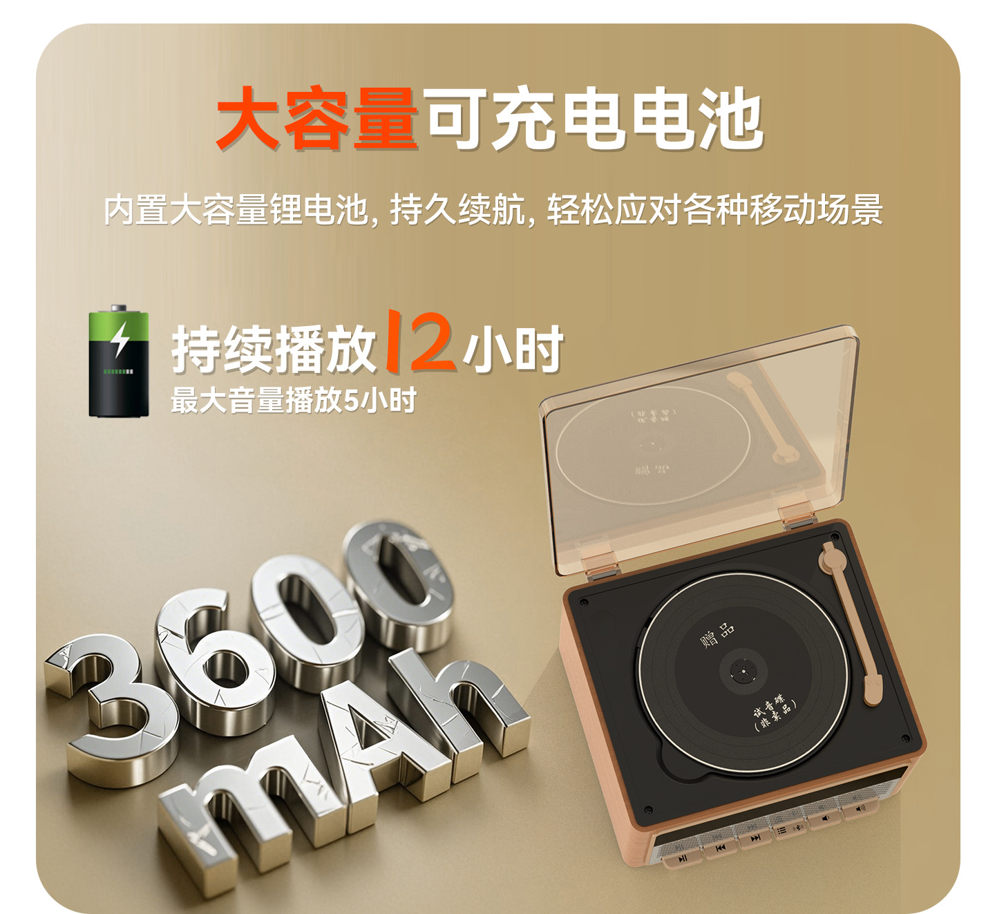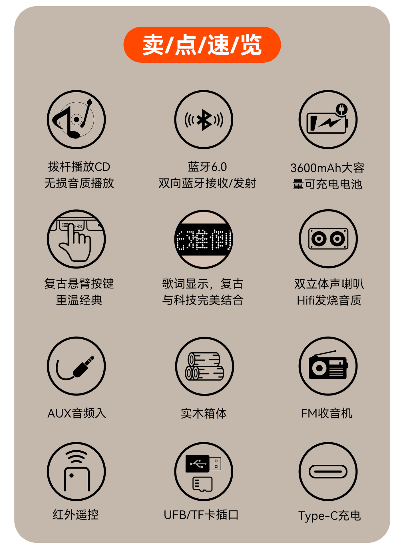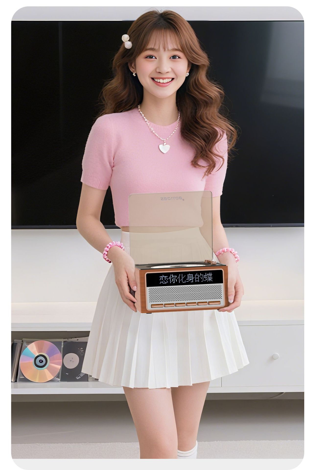 SBOLLO CD 플레이어 음악 오디오 플레이어 레트로 고음질 휴대용 충전식 가사 표시스토어 가기