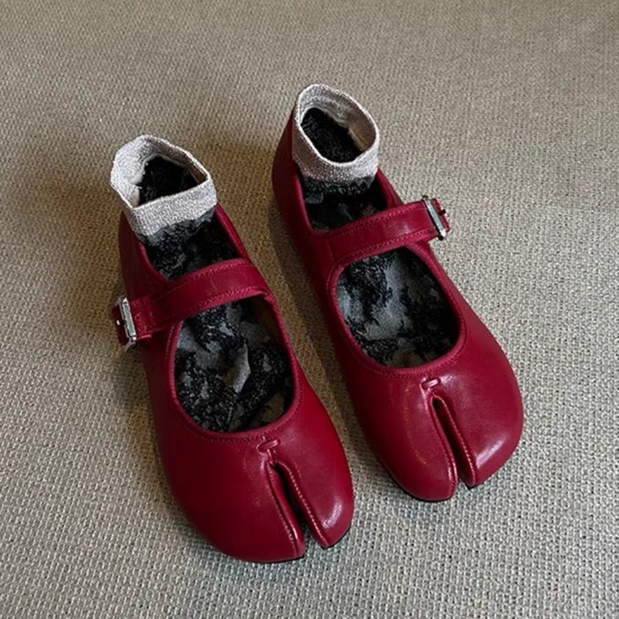양가죽 버전 ~ 2025 신형 정품 가죽 레드 니치 한국식 돼지발가락 메리제인 할머니 여성 플랫슈즈스토어 가기