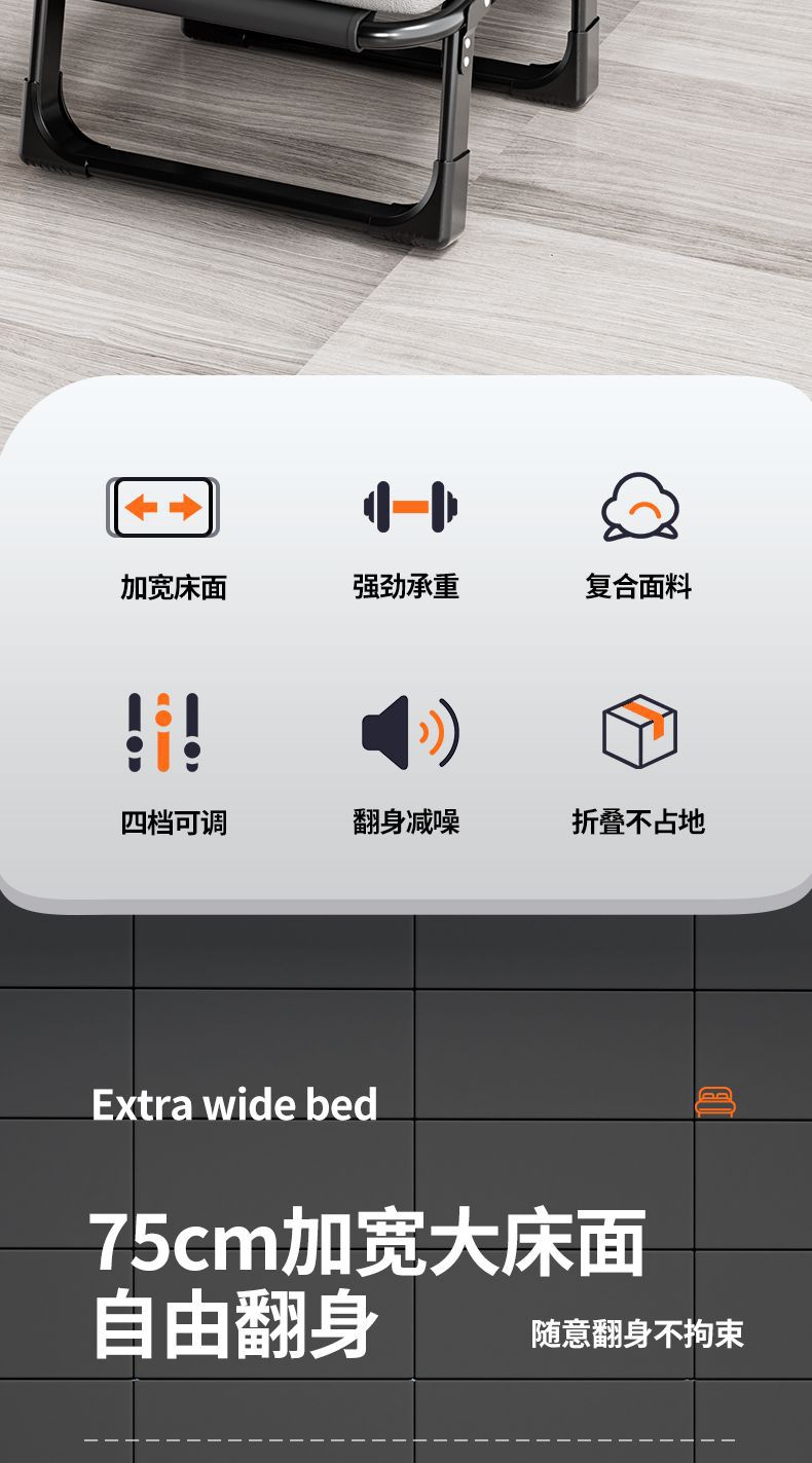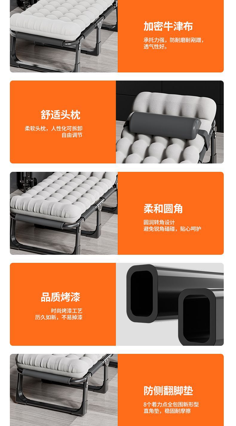가벼운 접이식 침대, 싱글 침대, 가정용 성인 점심 시간 안락 의자, 사무실 침대, 캠프 침대, 휴대용 및 컴팩트