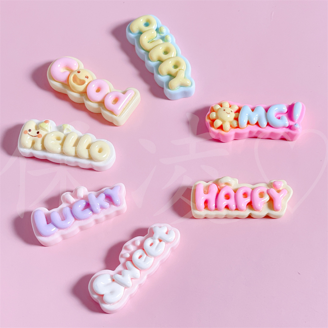 귀여운 만화 "안녕하세요" 영어 알파벳 레진 액세서리 크림 접착제 diy 수제 보석 재료스토어 가기