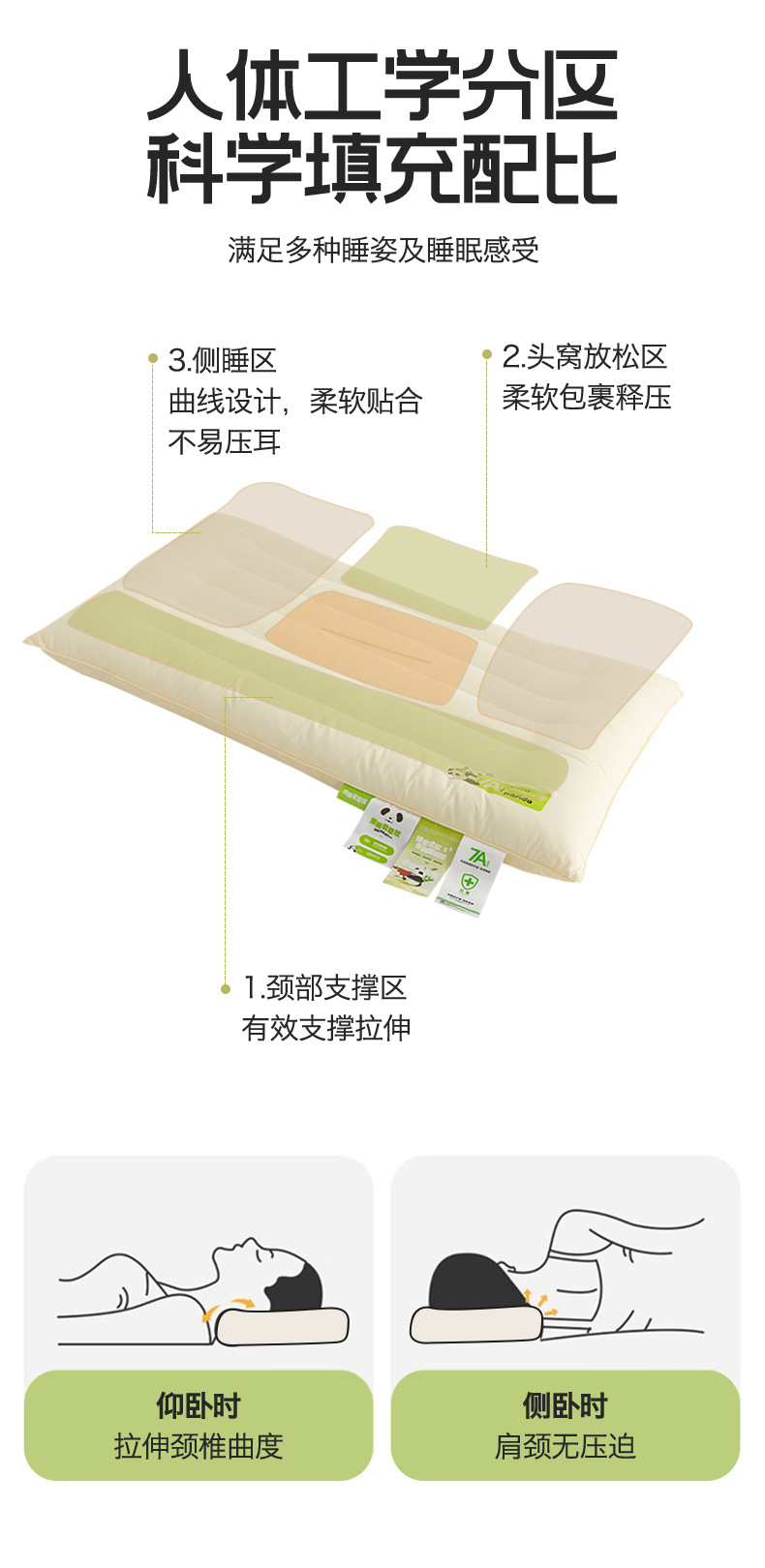 7A 팬더 부모-자식 베개 베개 코어 부모-자식 베개 경추 베개 쉐이핑 목 베개 깃털 베개 도매