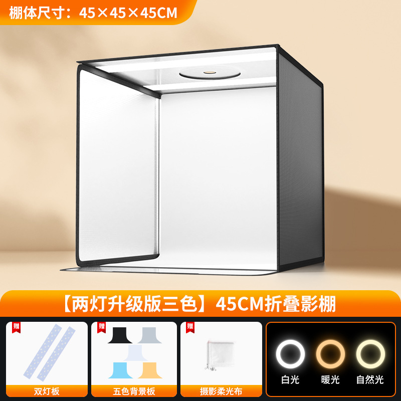 • 45CM 하이라이트 버전 [이중 조명 및 3가지 색상] 일체형 접이식 스튜디오