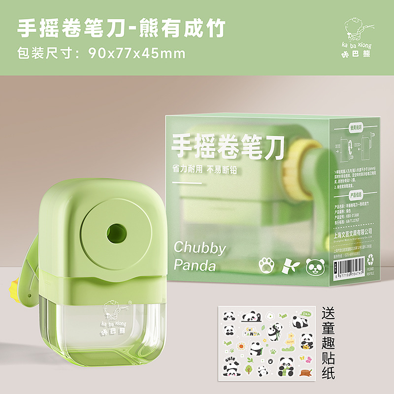 • 손으로 돌리는 연필깎이 - 곰이 대나무를 가지고 있습니다.